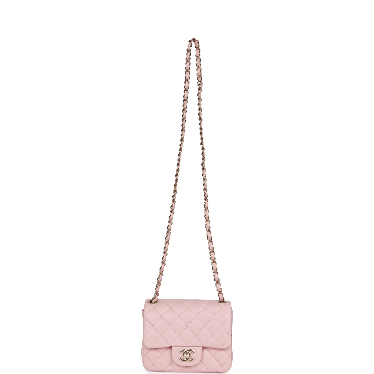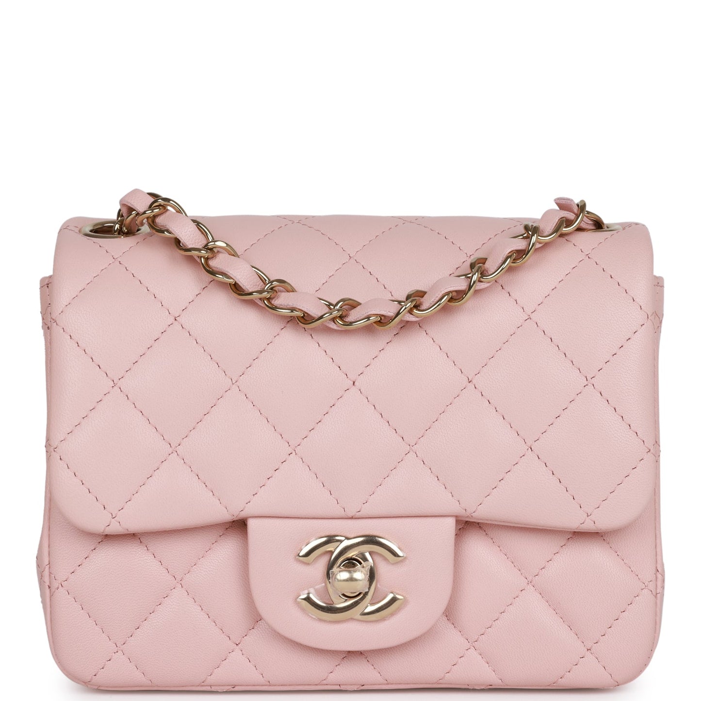 Chanel Mini Square Flap Pink Calfskin Light Gold Hardware