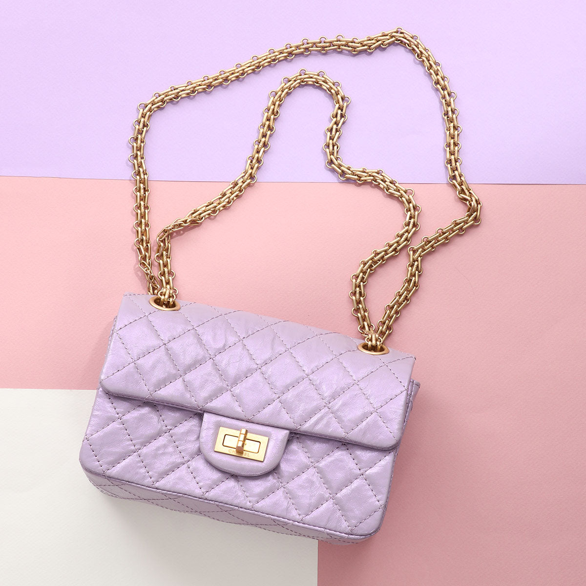 Chanel Mini Glittered Lilac Quilted Aged Calfskin Reissue