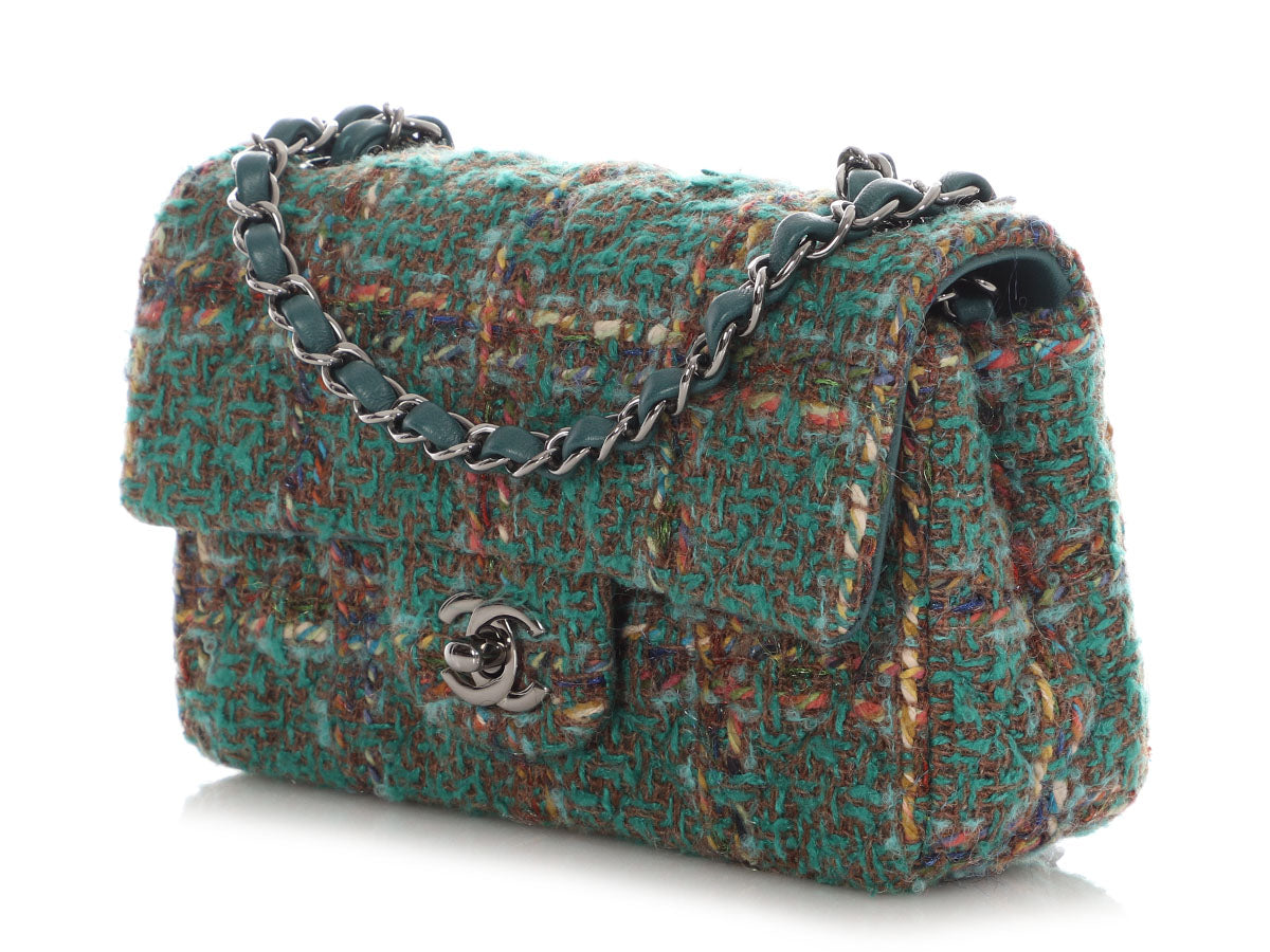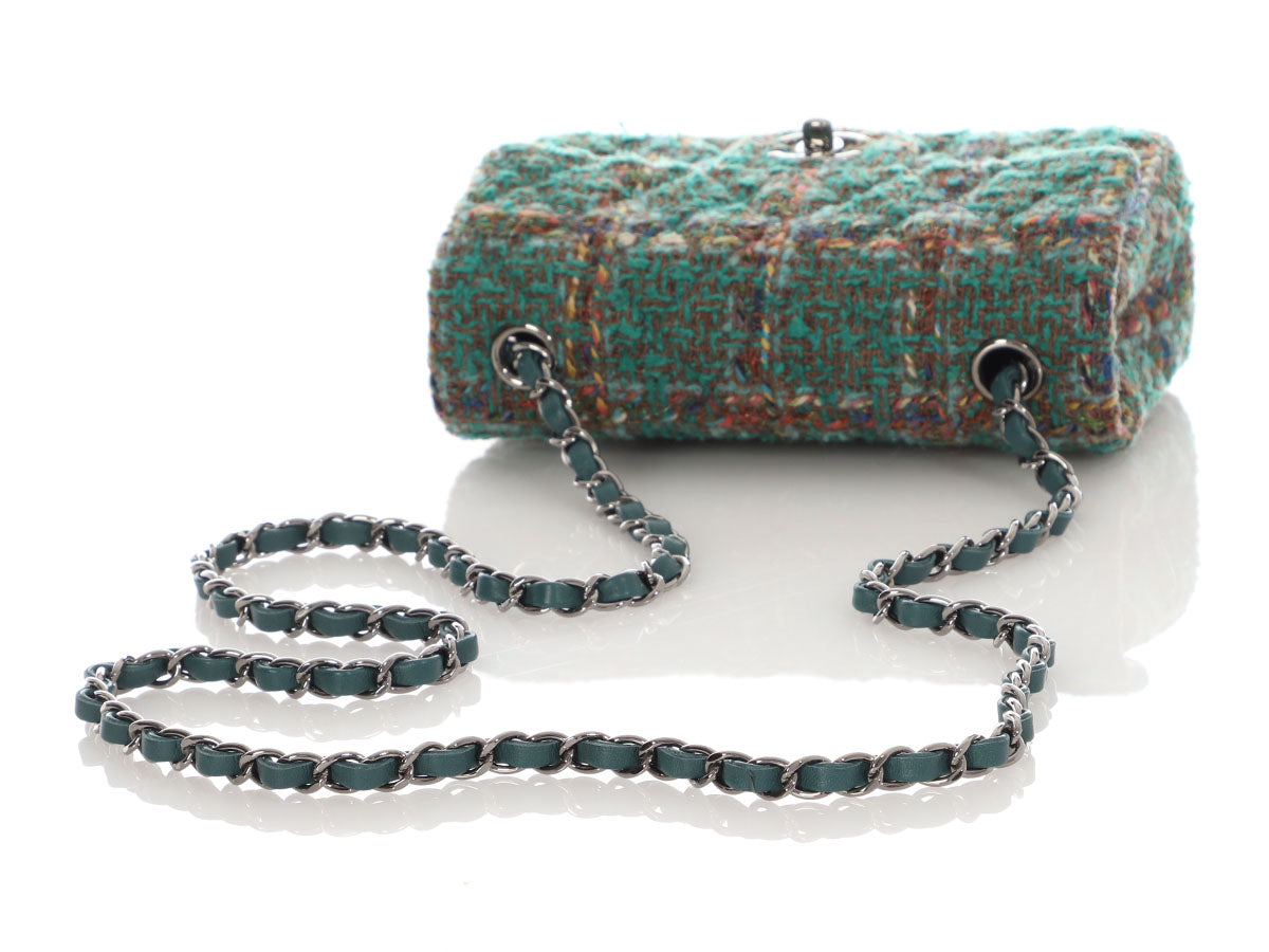 Chanel Mini Green Tweed Classic