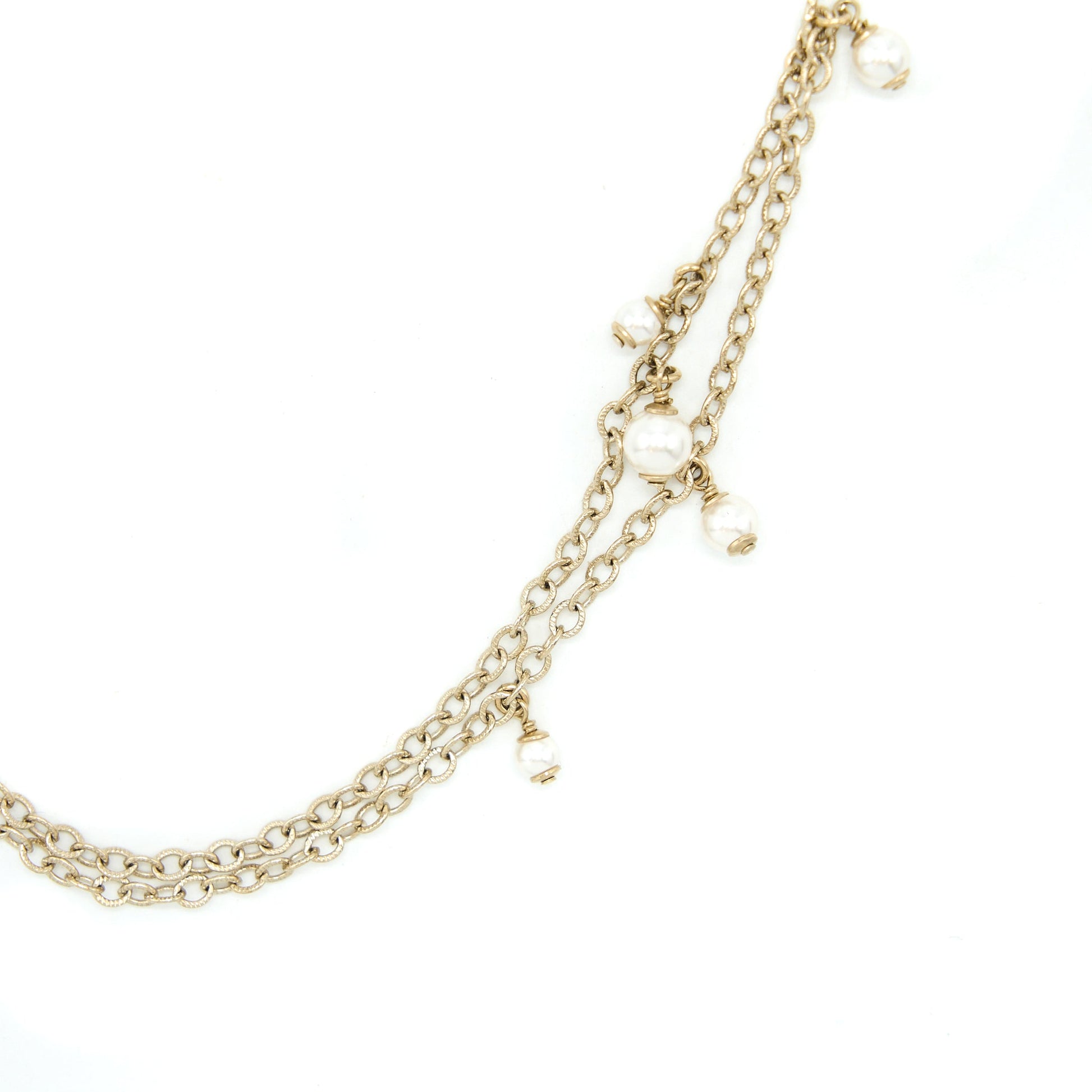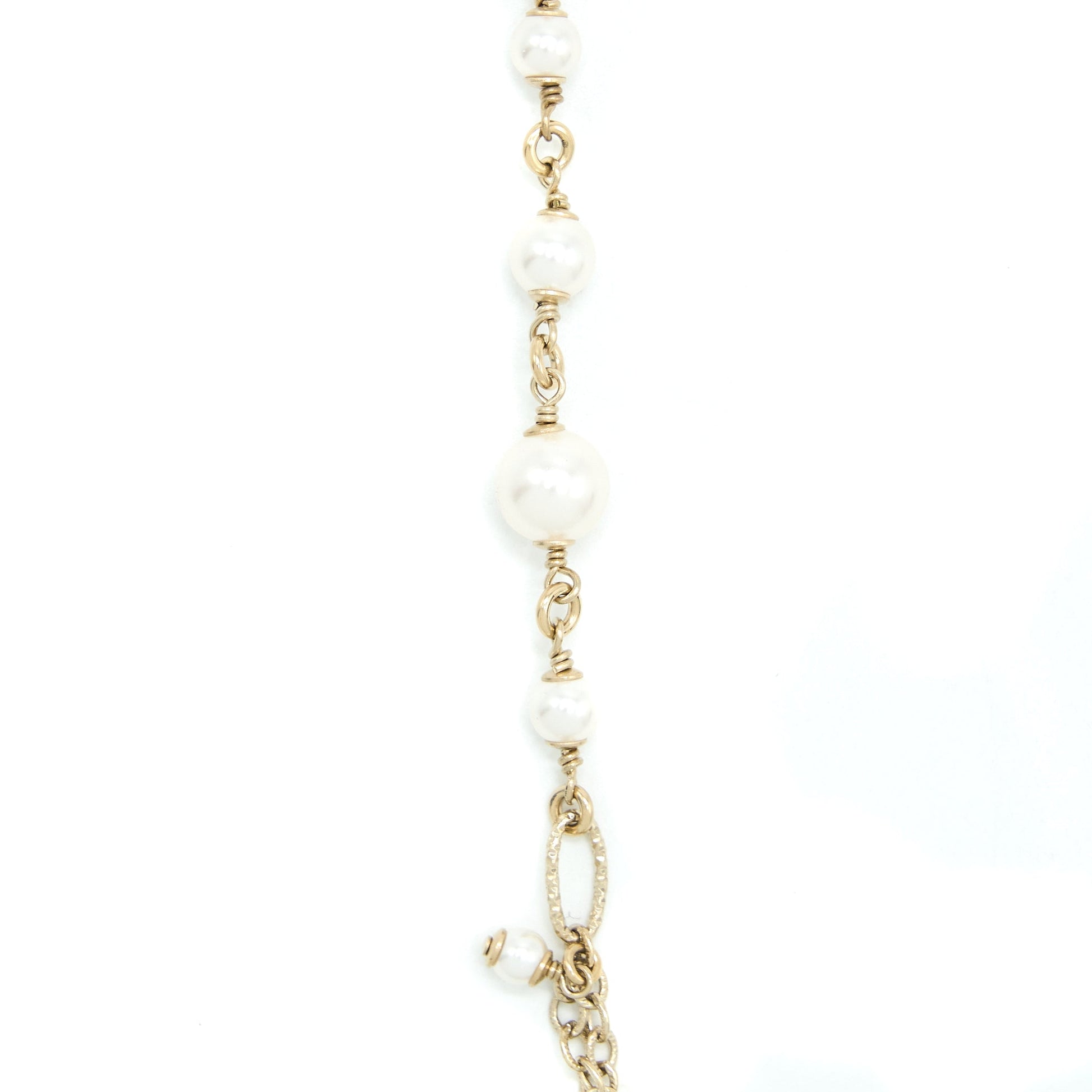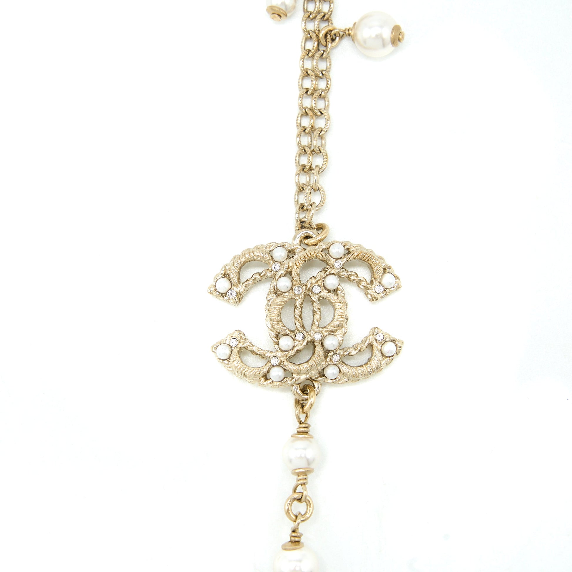 Chanel Mini Pearl CC Logo Long Necklace Light Gold Tone