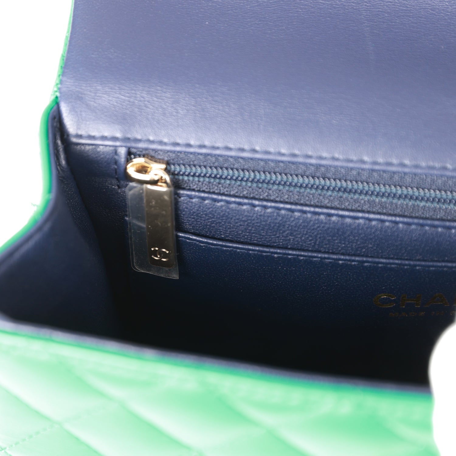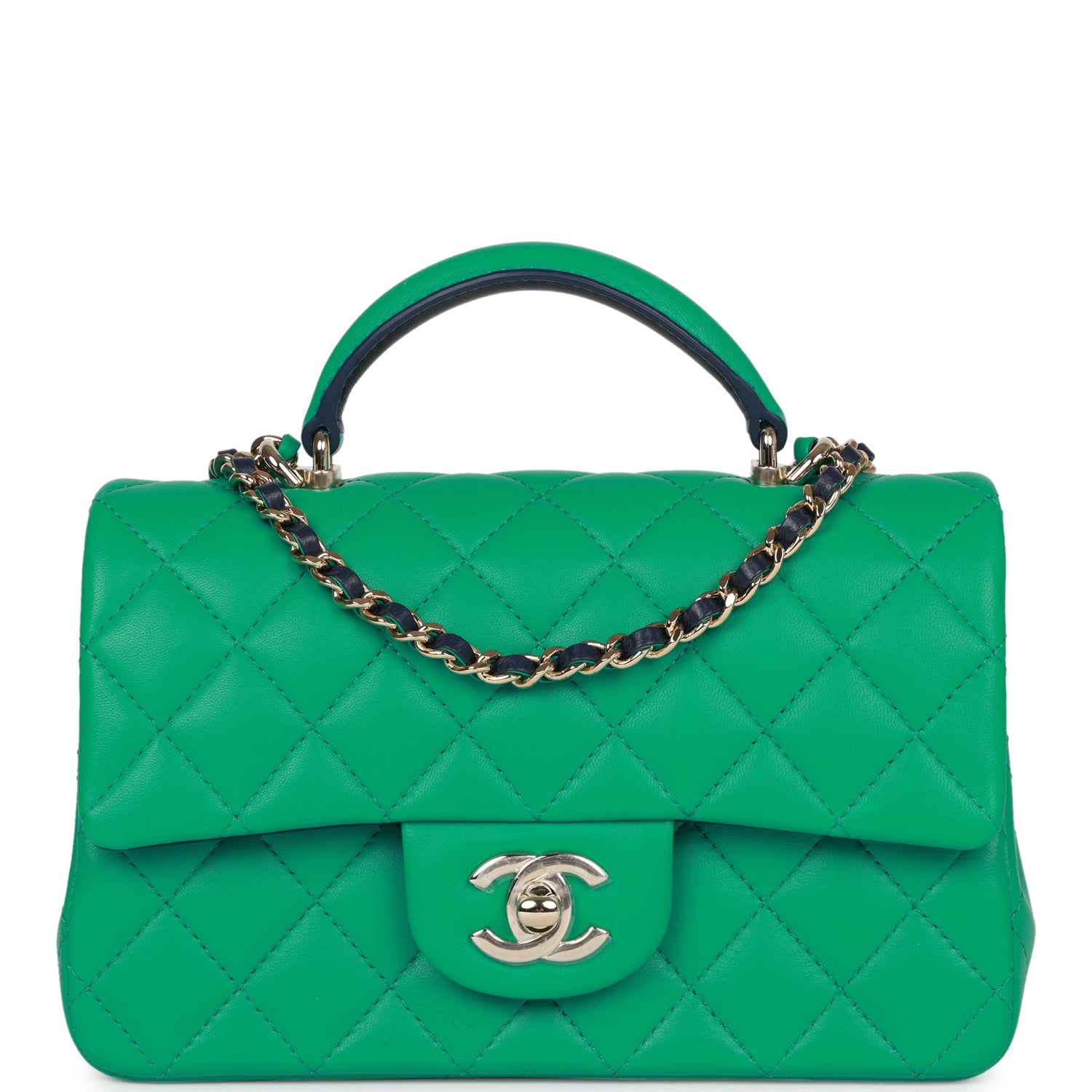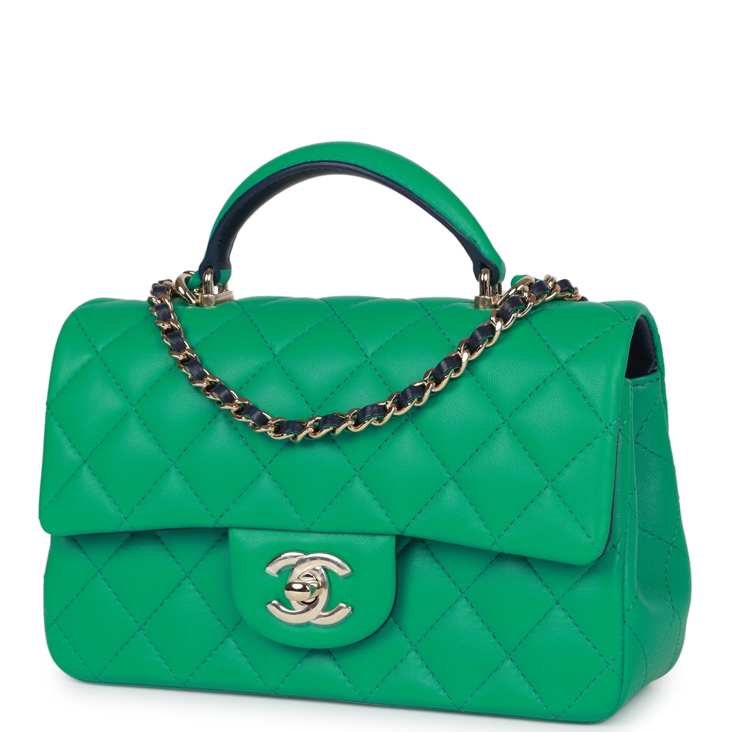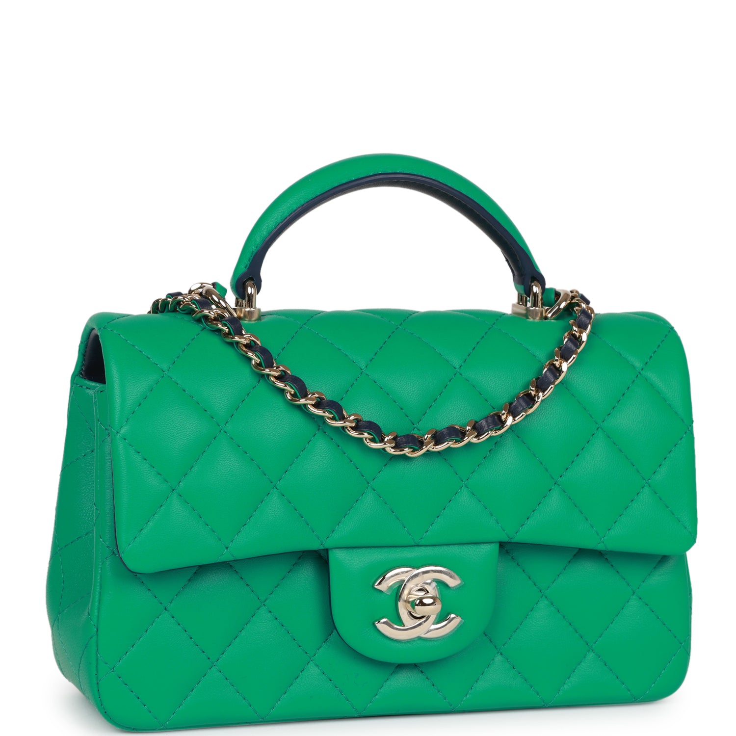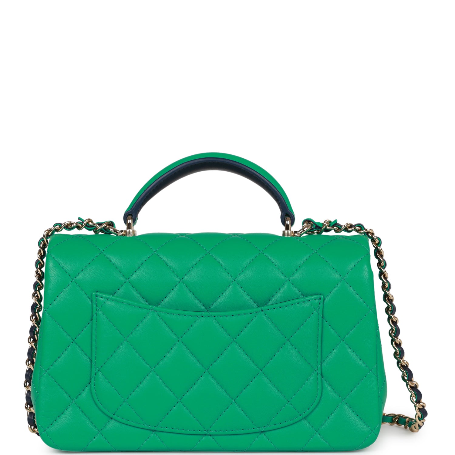 Chanel Mini Rectangular Flap with Top Handle Green and Navy Blue Lambskin Light Gold Hardware