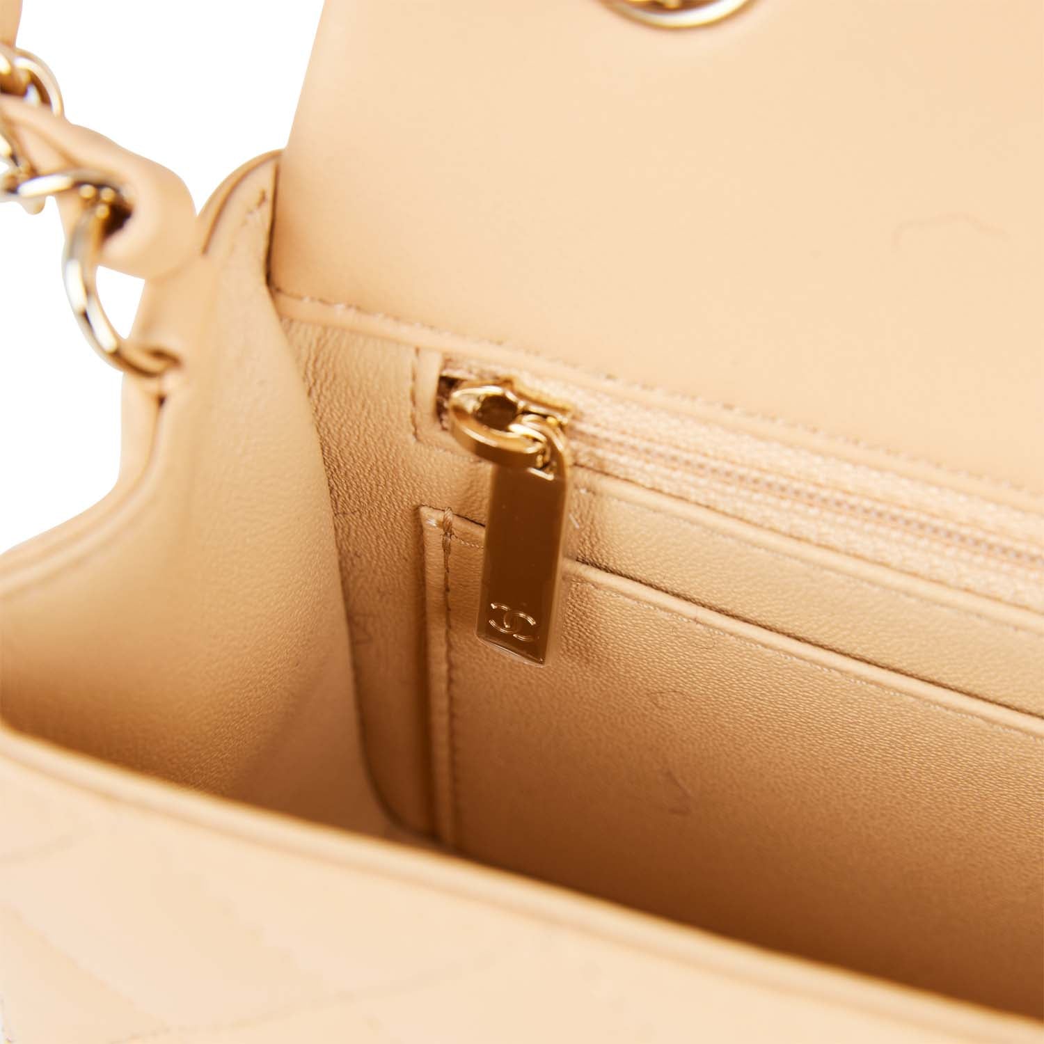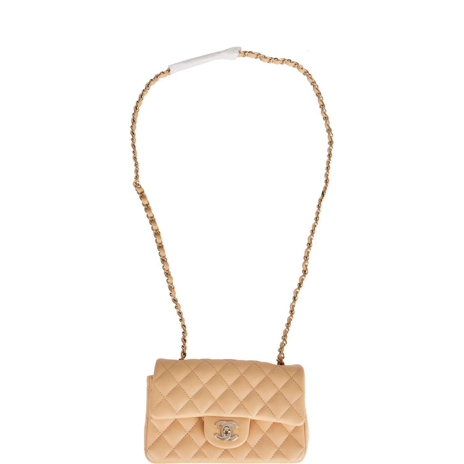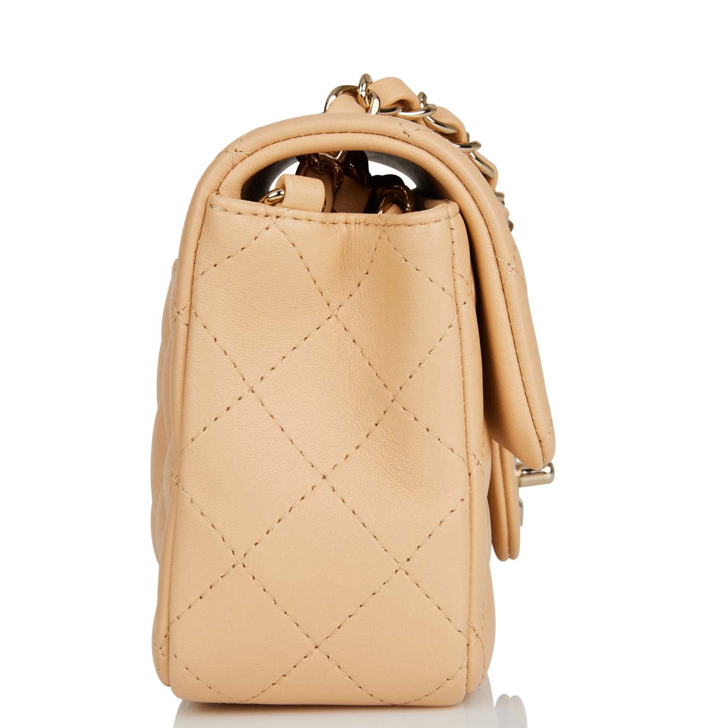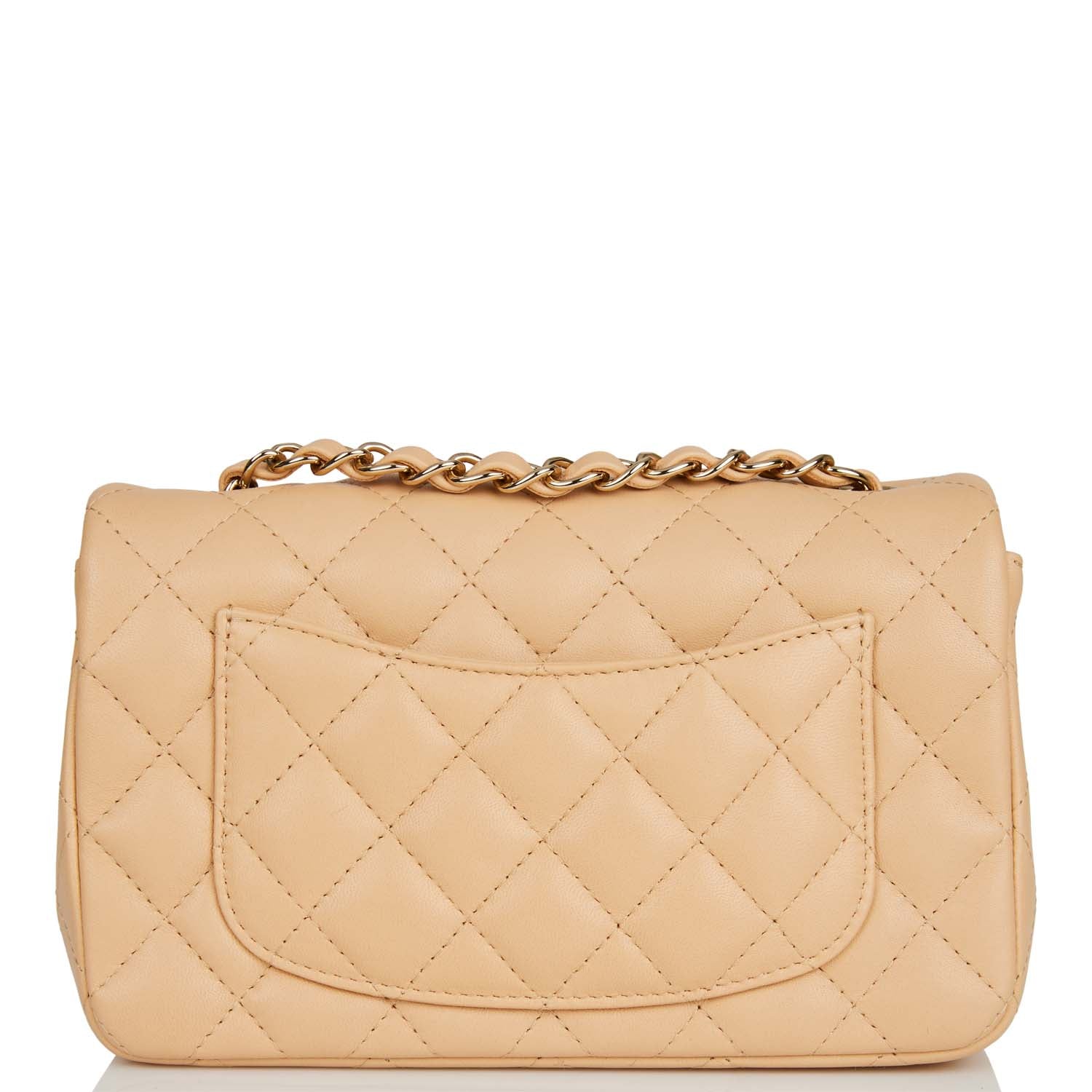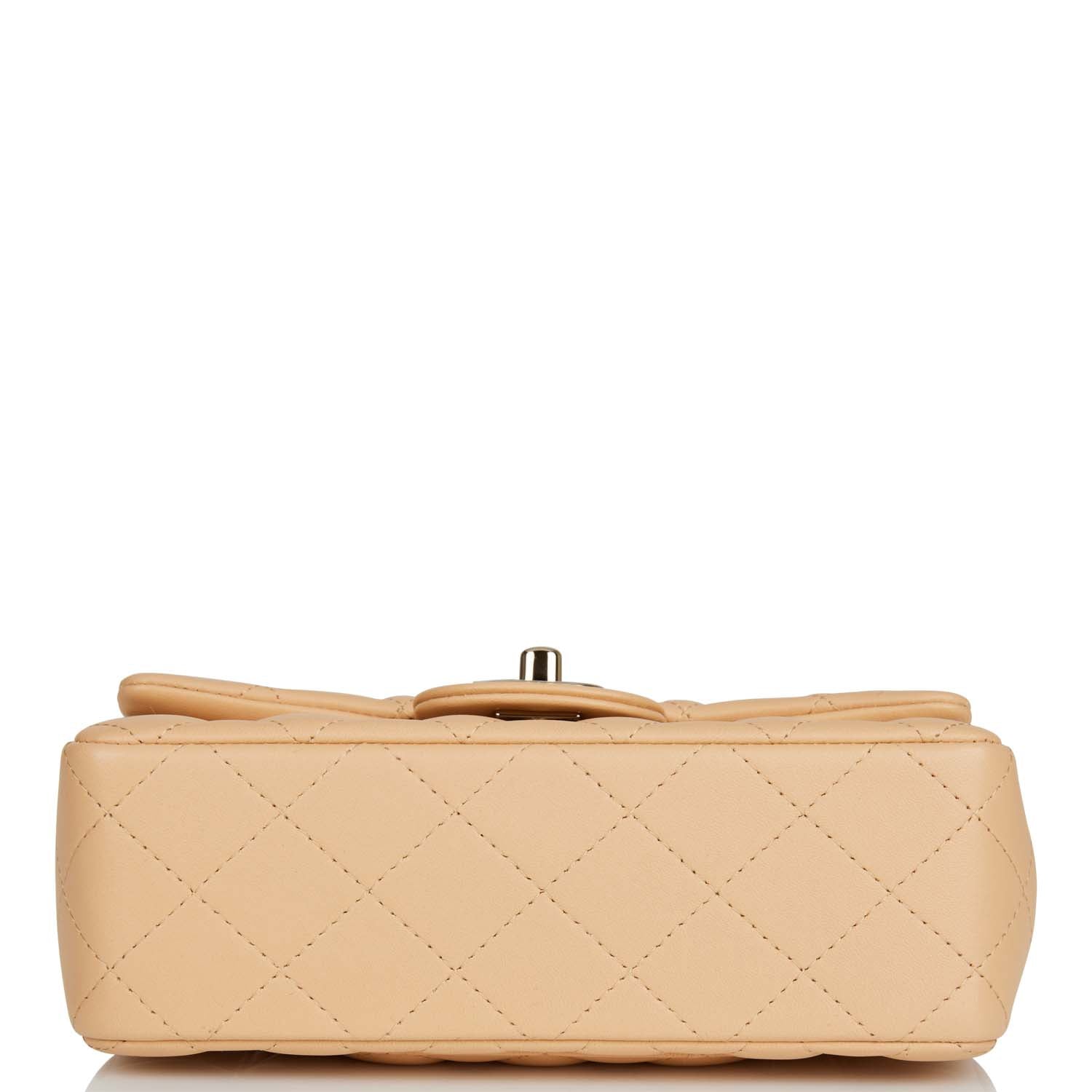 Chanel Mini Rectangular Flap Bag Beige Lambskin Light Gold Hardware