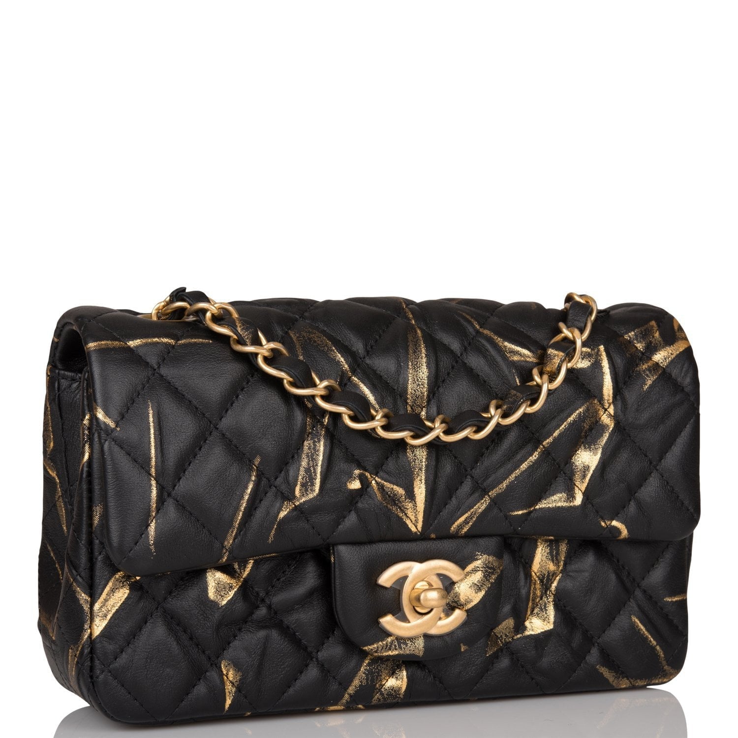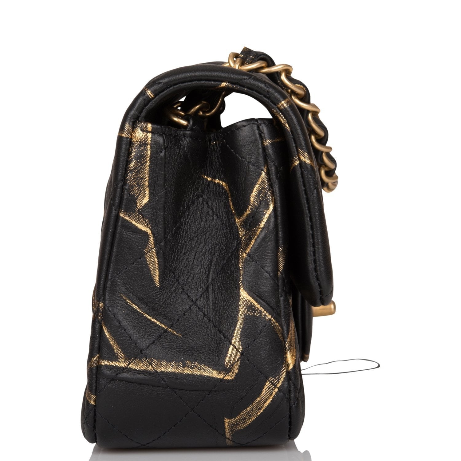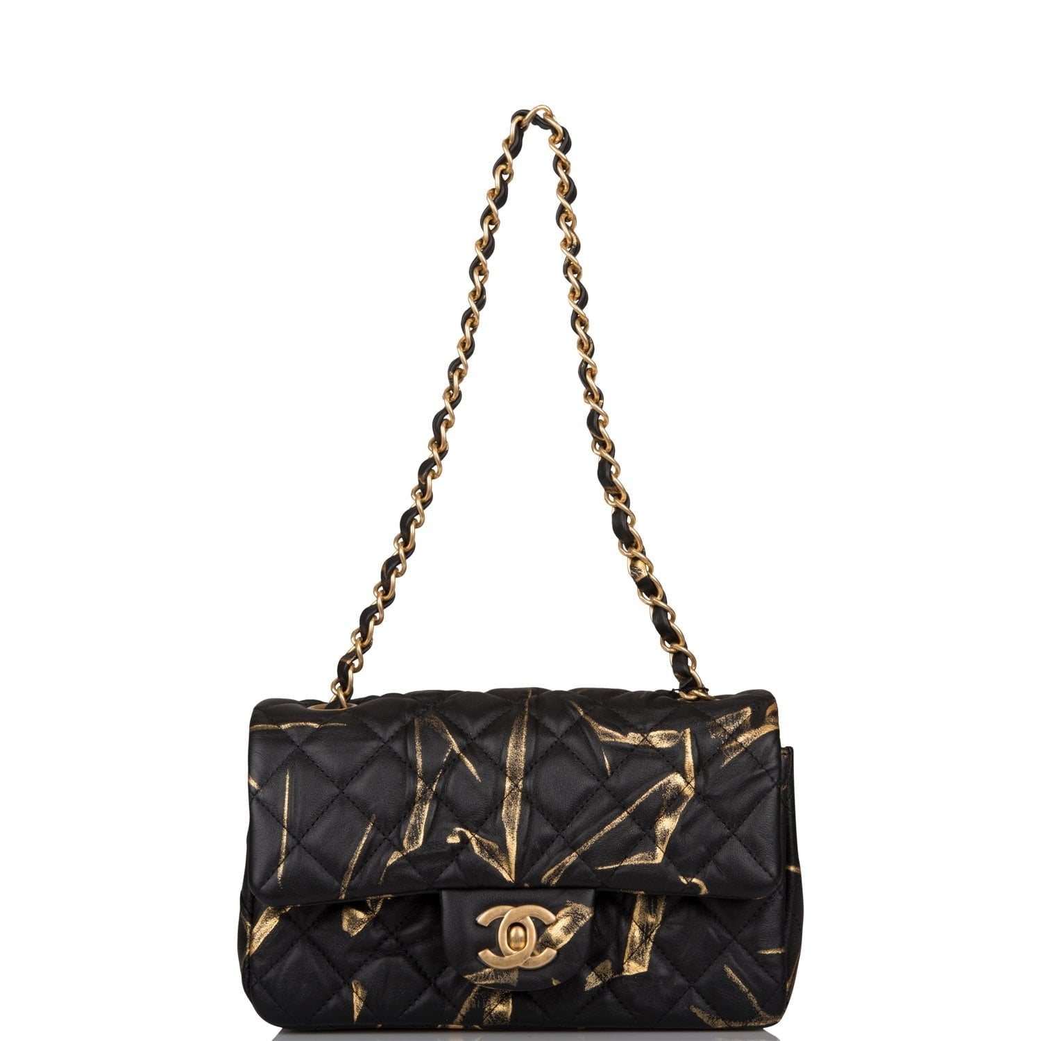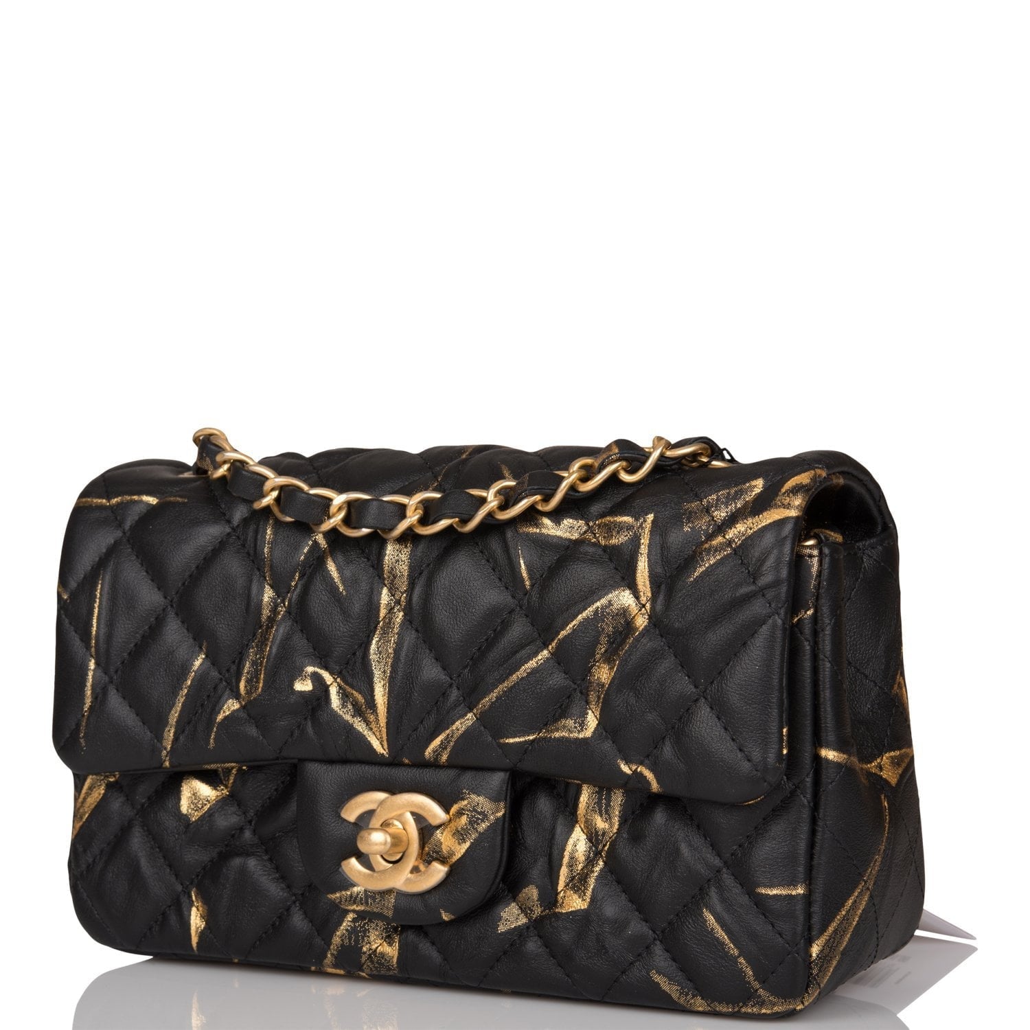 Chanel Mini Rectangular Flap Bag Black and Gold Aged Calfskin Antique Gold Hardware