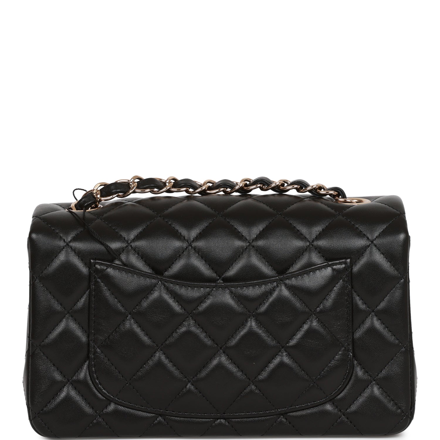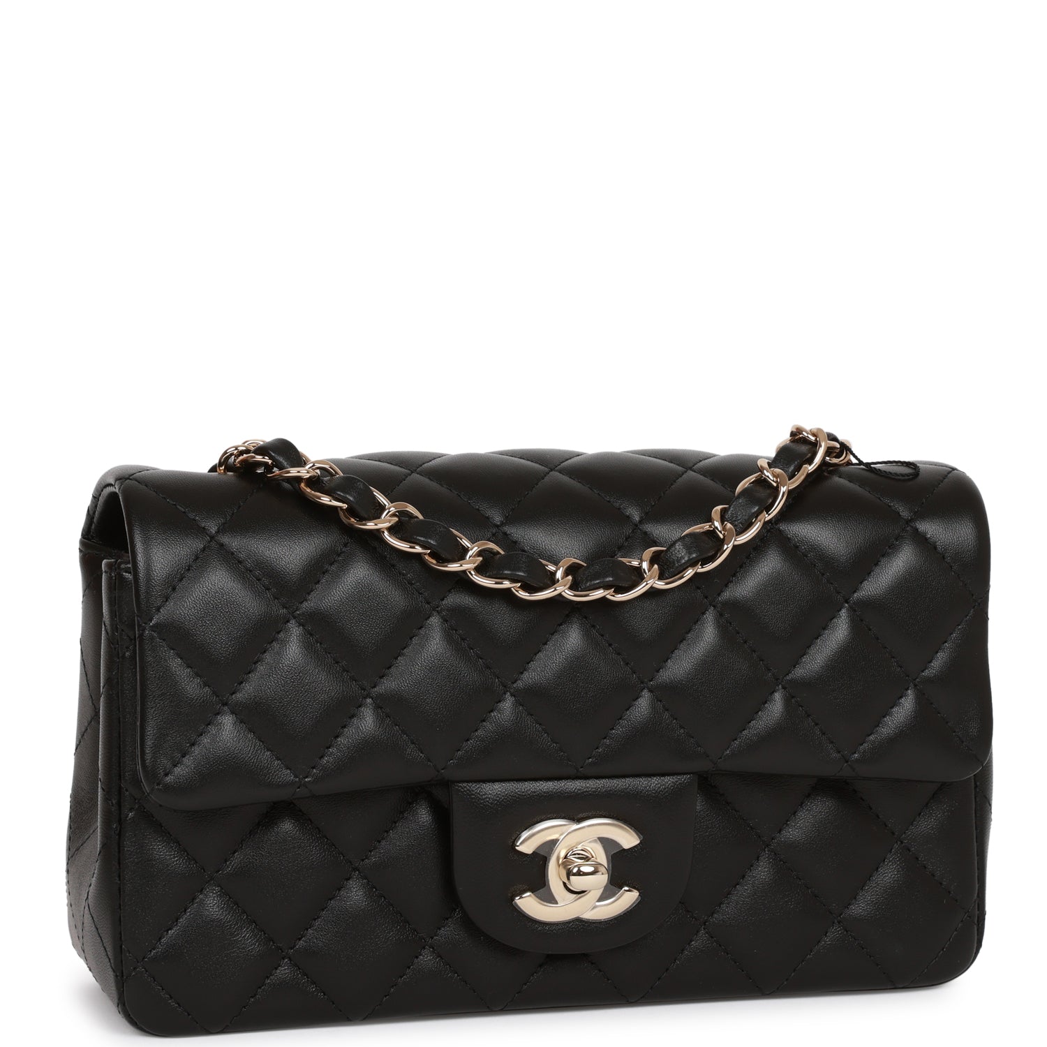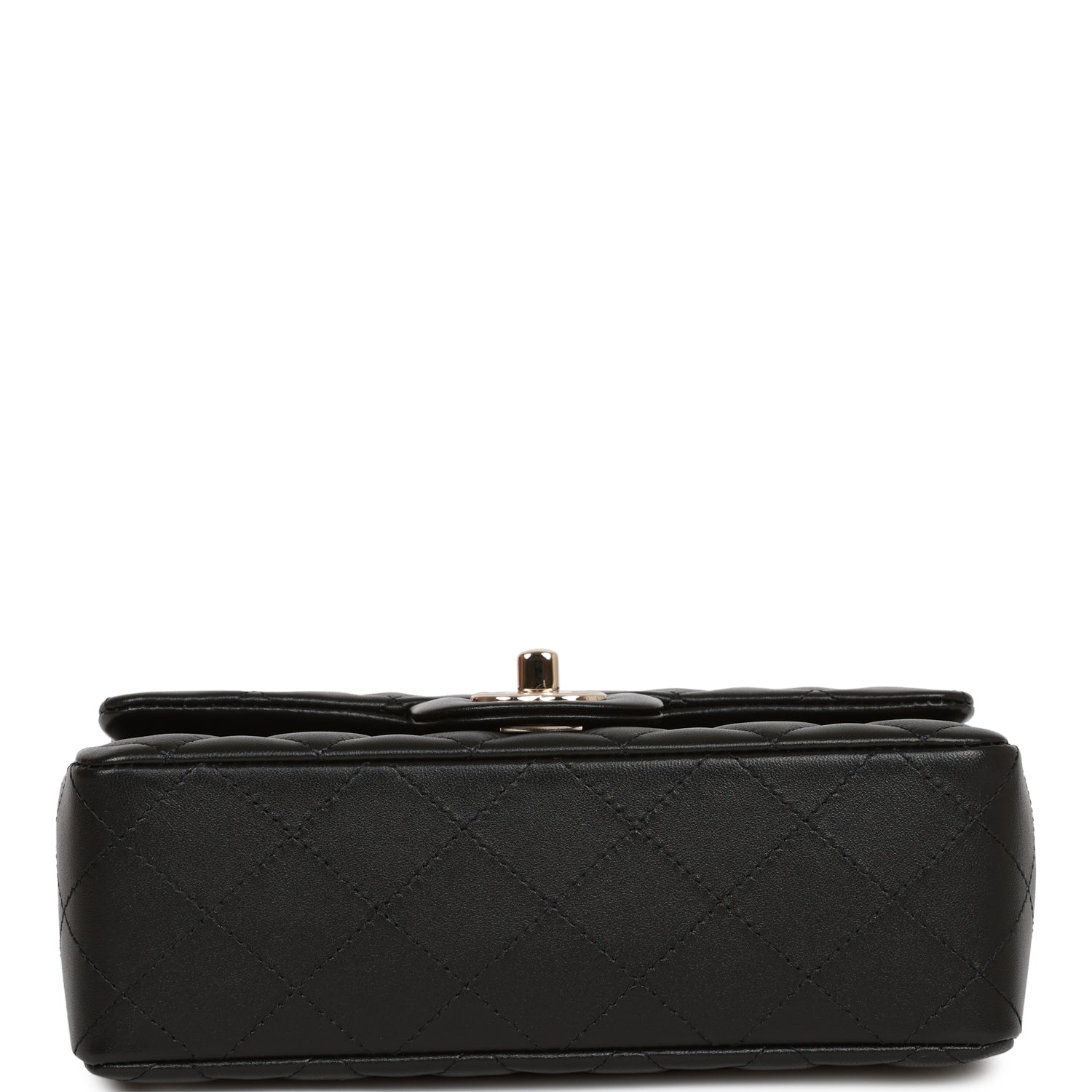 Chanel Mini Rectangular Flap Bag Black Lambskin Light Gold Hardware