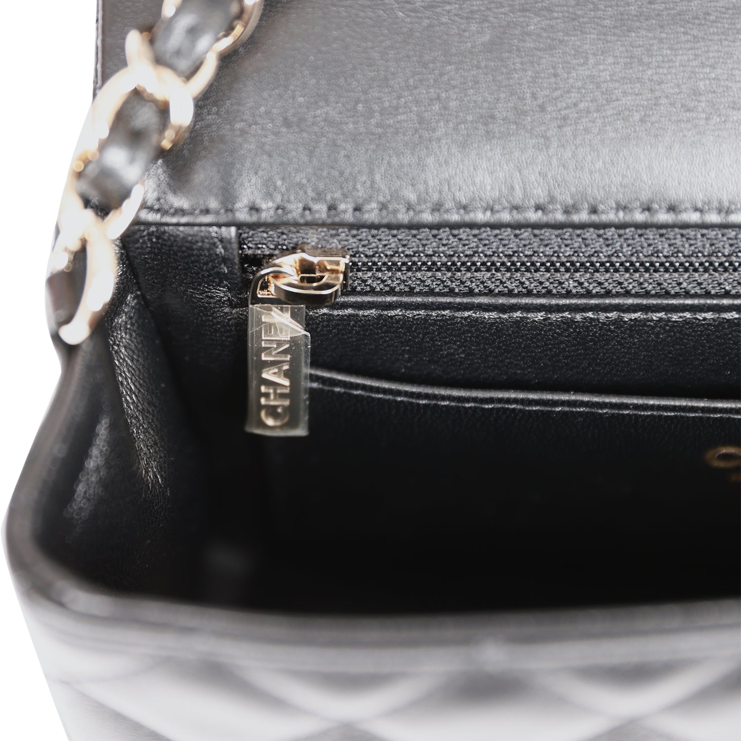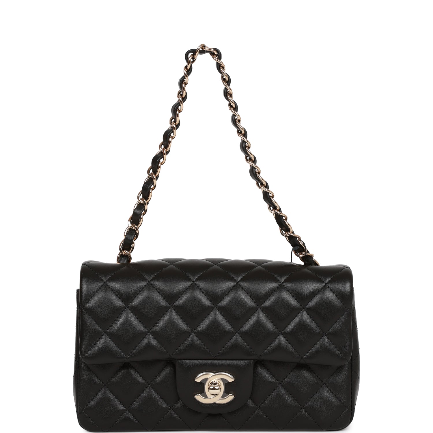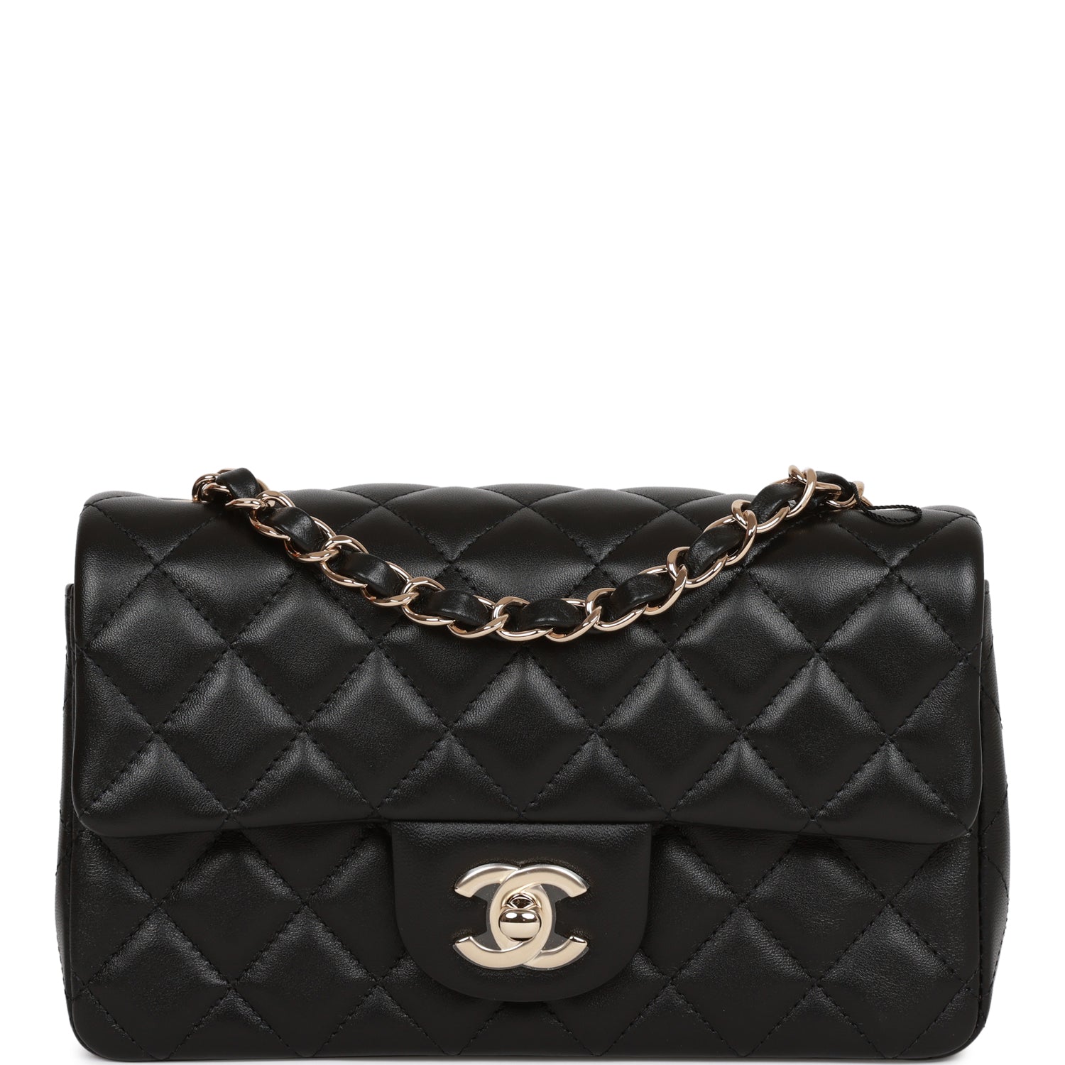 Chanel Mini Rectangular Flap Bag Black Lambskin Light Gold Hardware