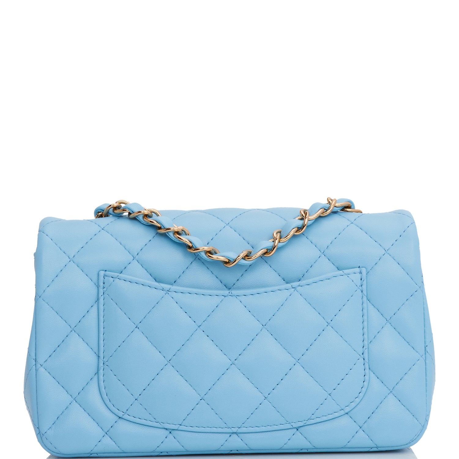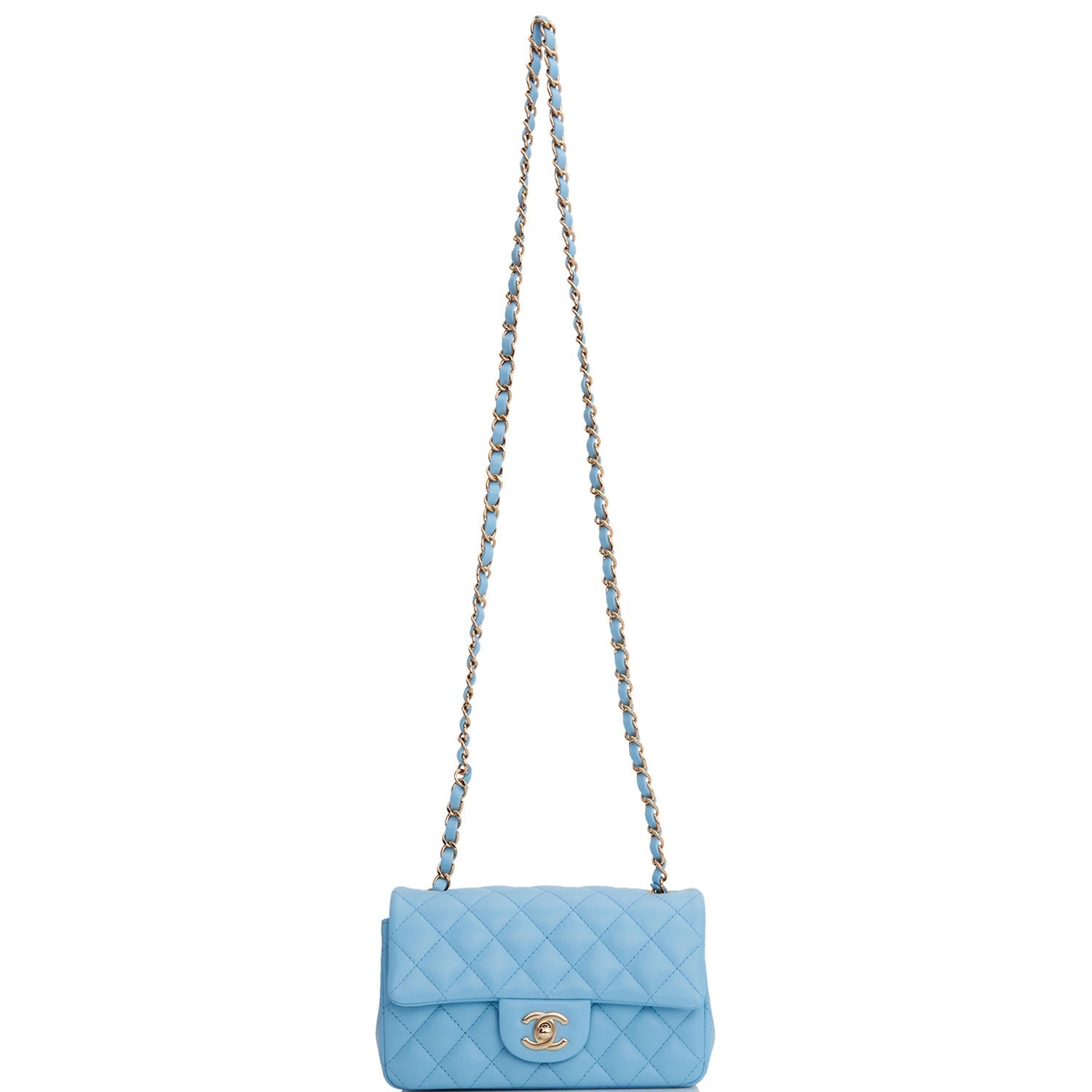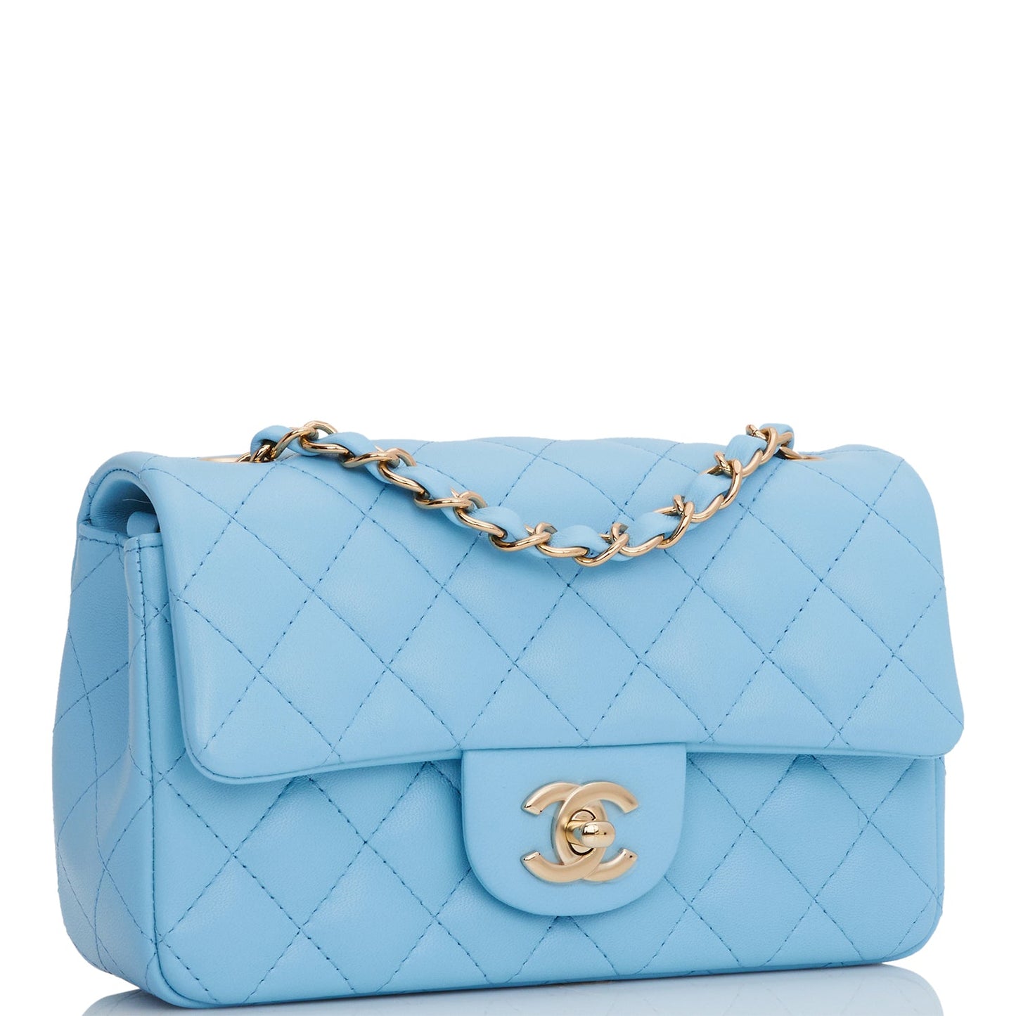 Chanel Mini Rectangular Flap Bag Blue Lambskin Light Gold Hardware