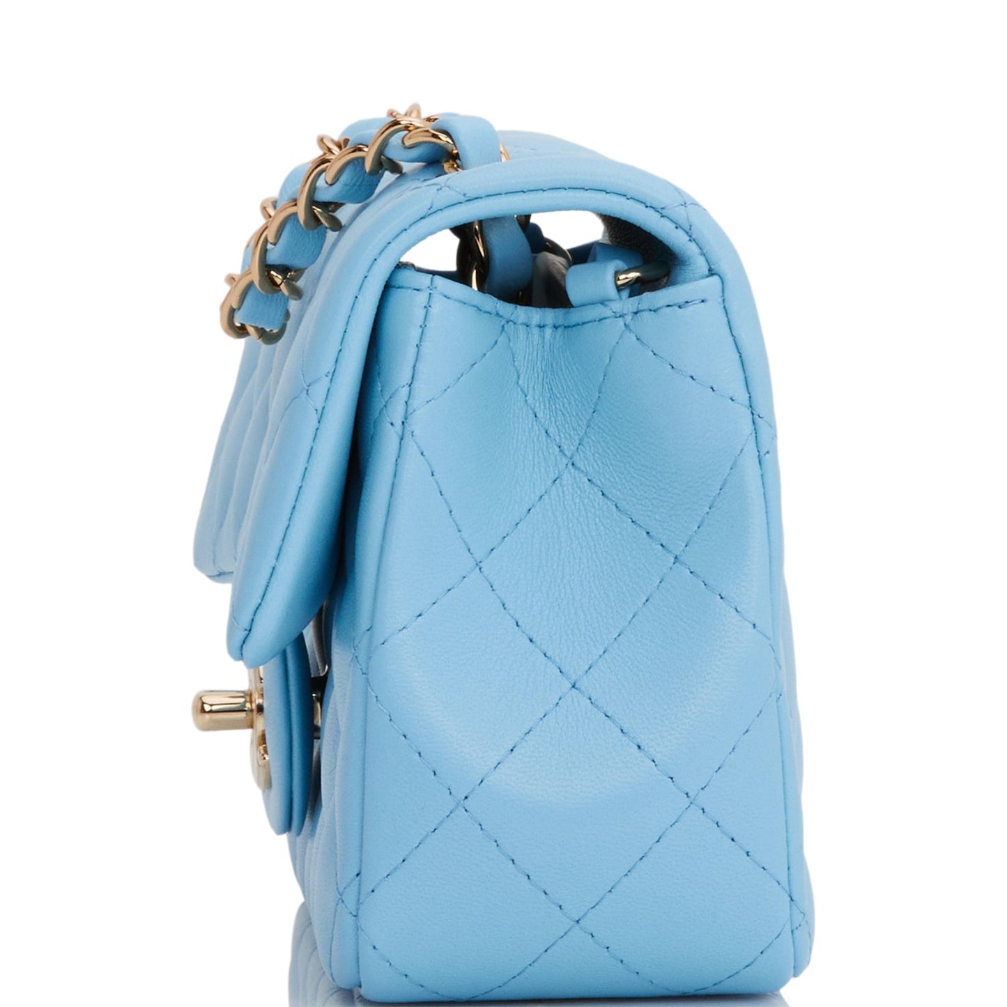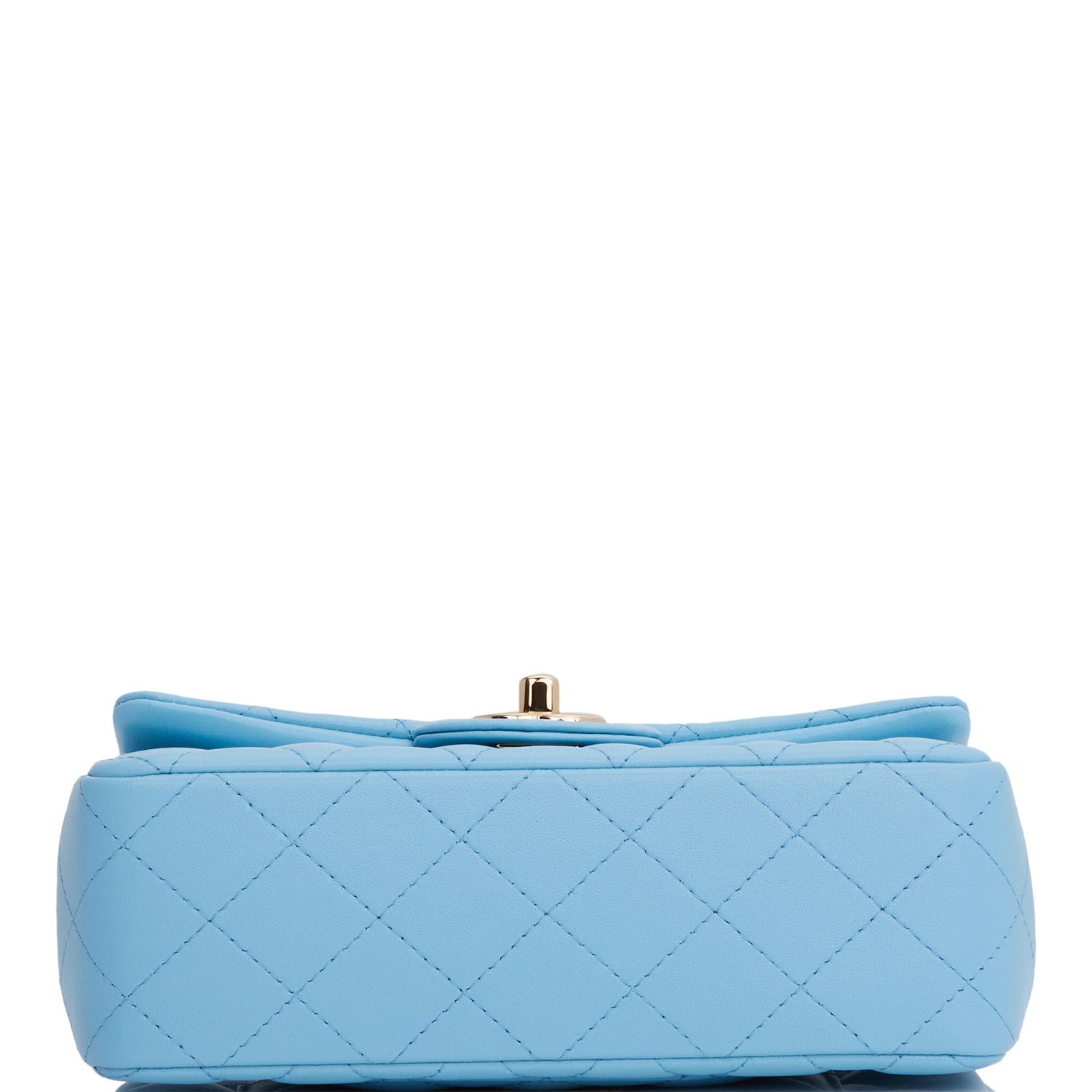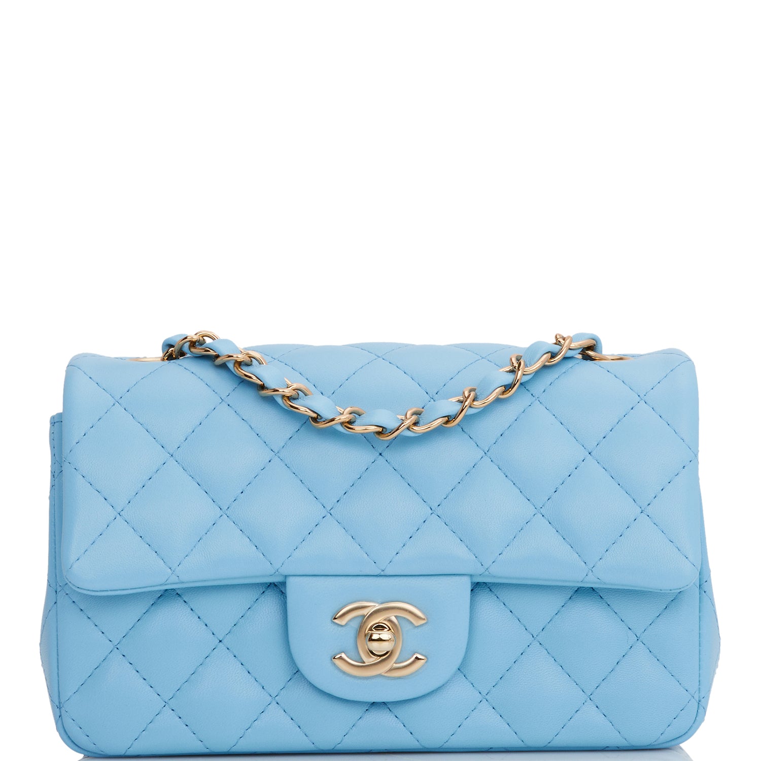 Chanel Mini Rectangular Flap Bag Blue Lambskin Light Gold Hardware