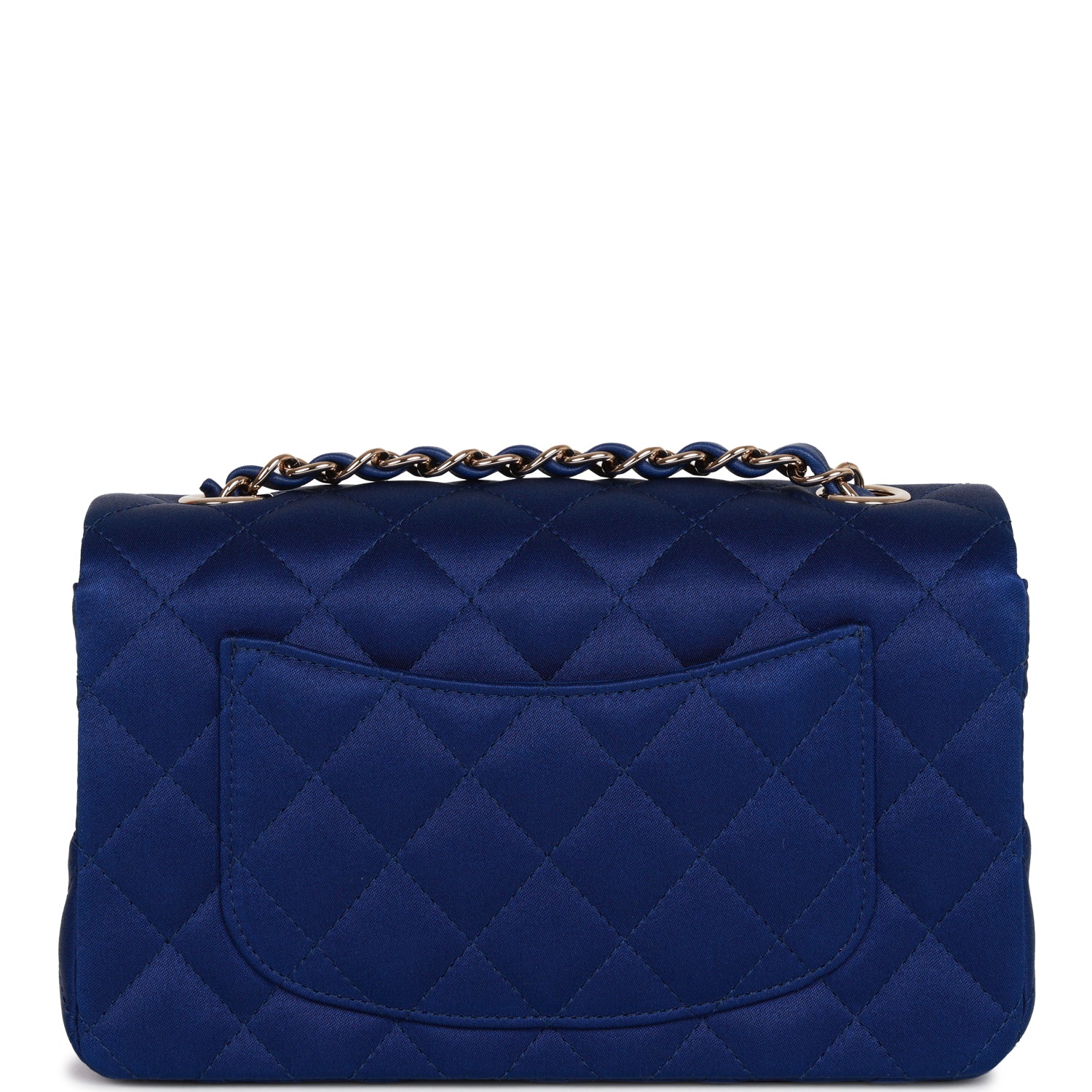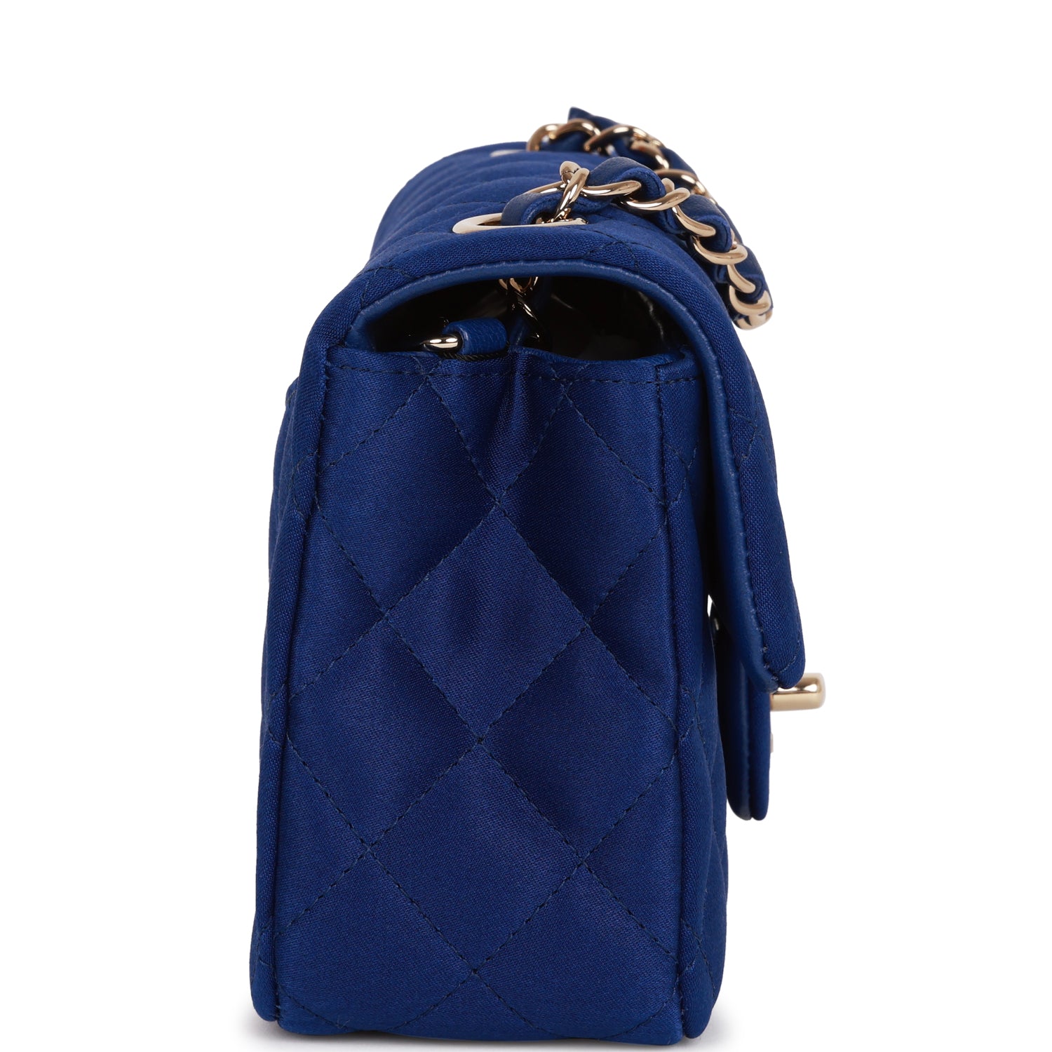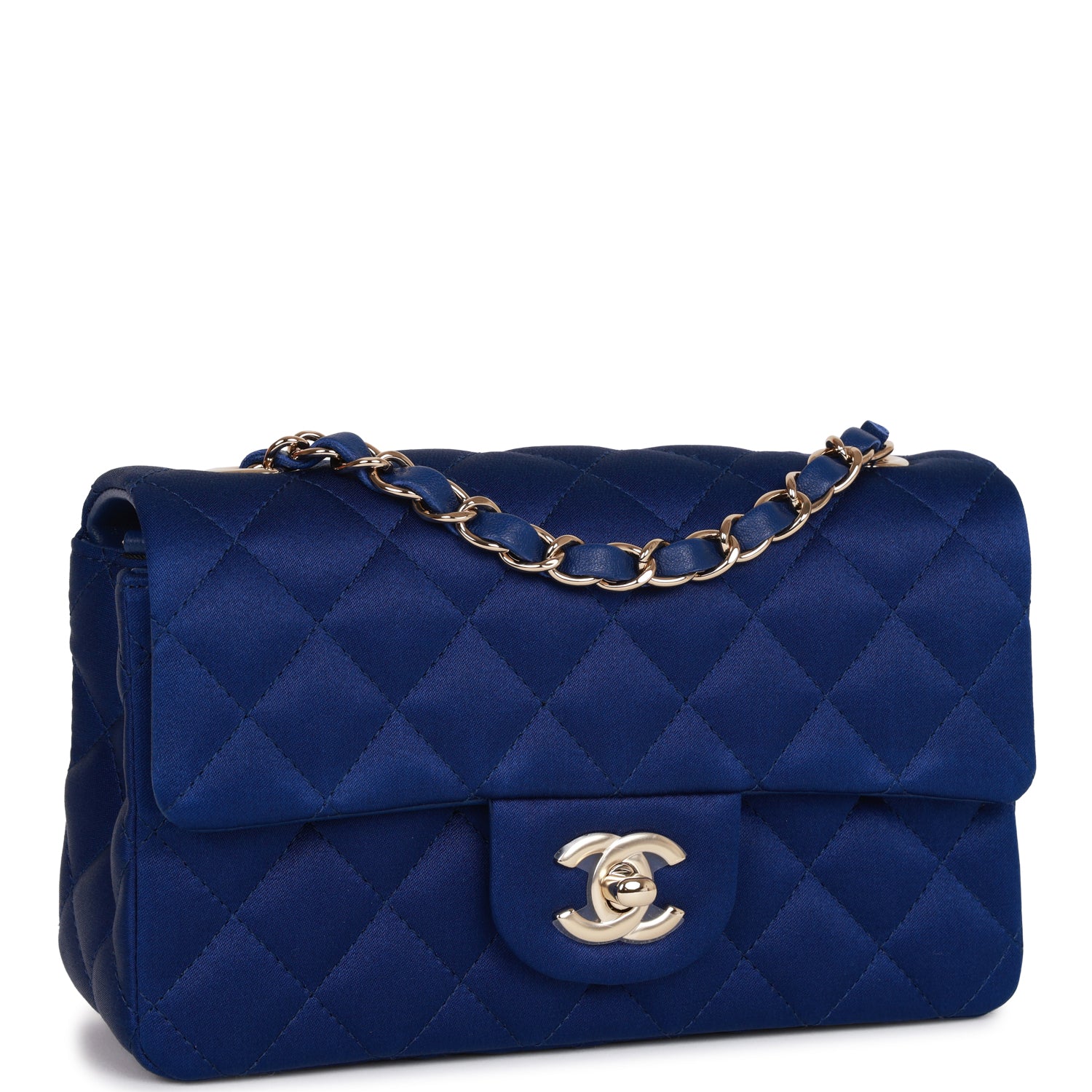 Chanel Mini Rectangular Flap Bag Blue Satin Light Gold Hardware