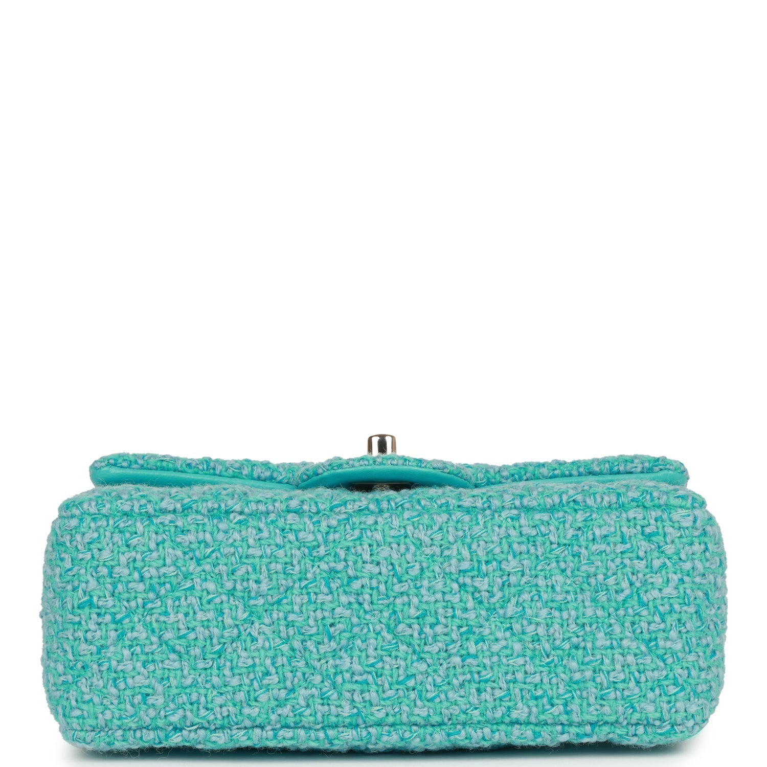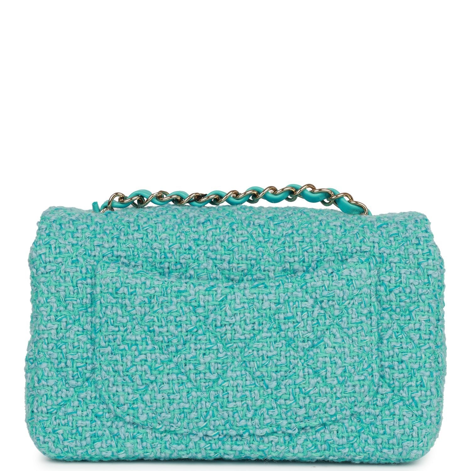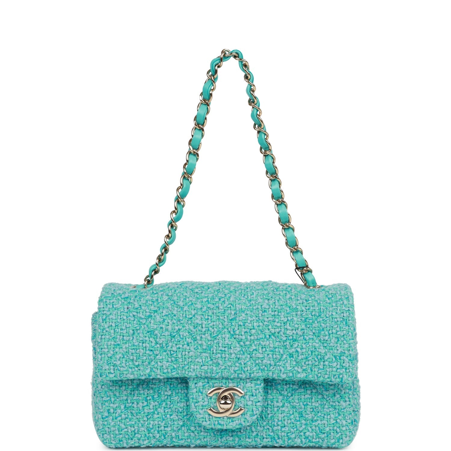 Chanel Mini Rectangular Flap Bag Blue Tweed Light Gold Hardware