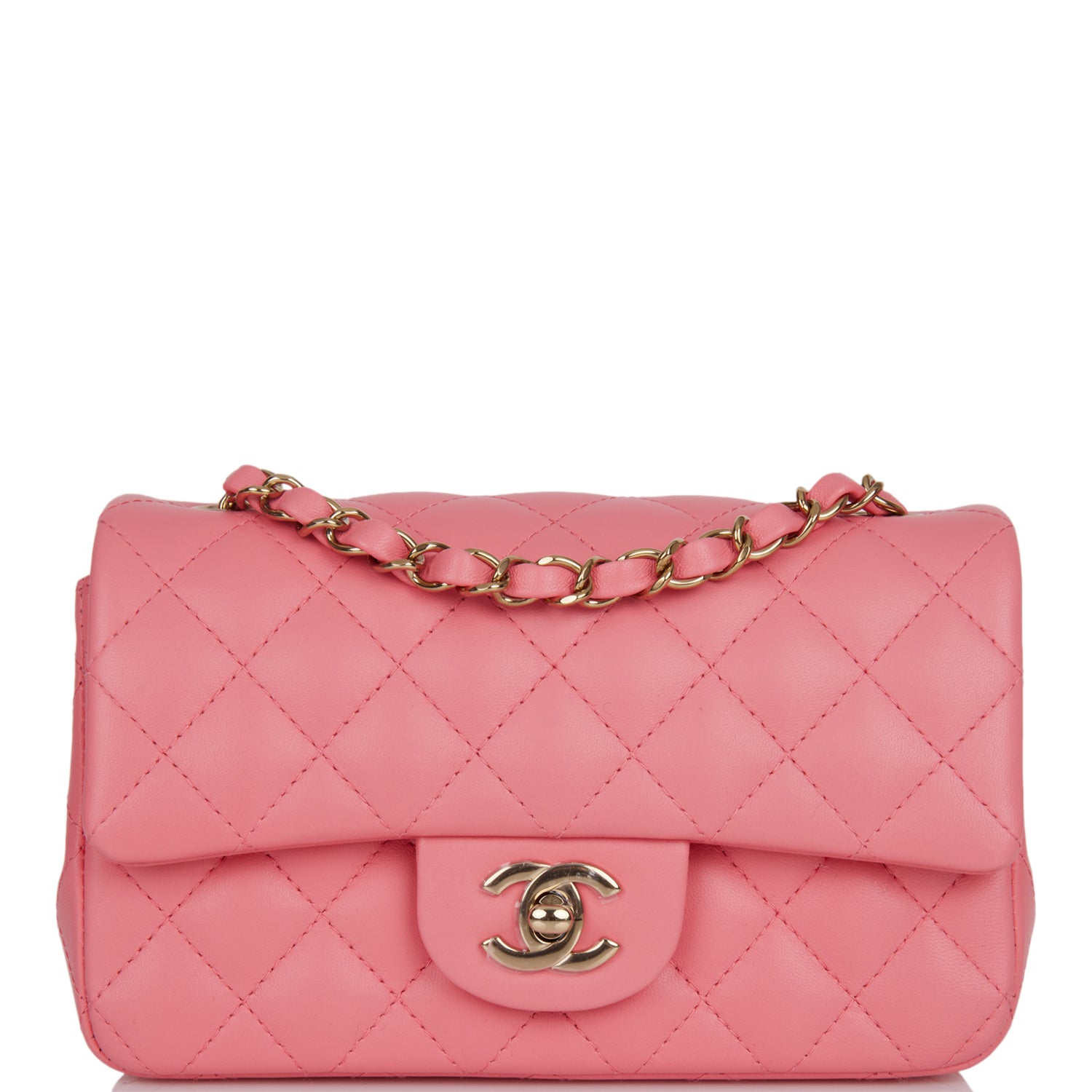 Chanel Mini Rectangular Flap Bag Coral Lambskin Light Gold Hardware