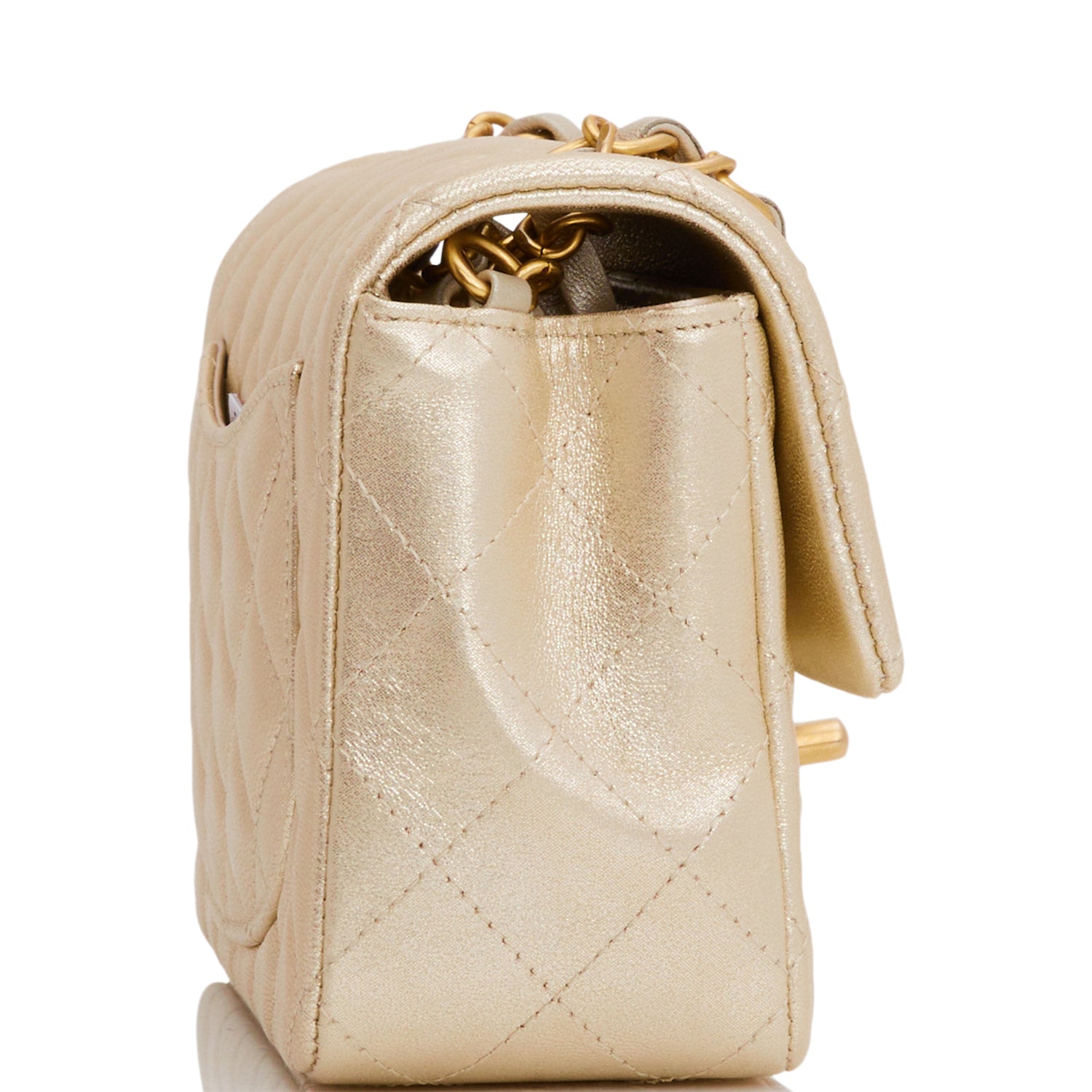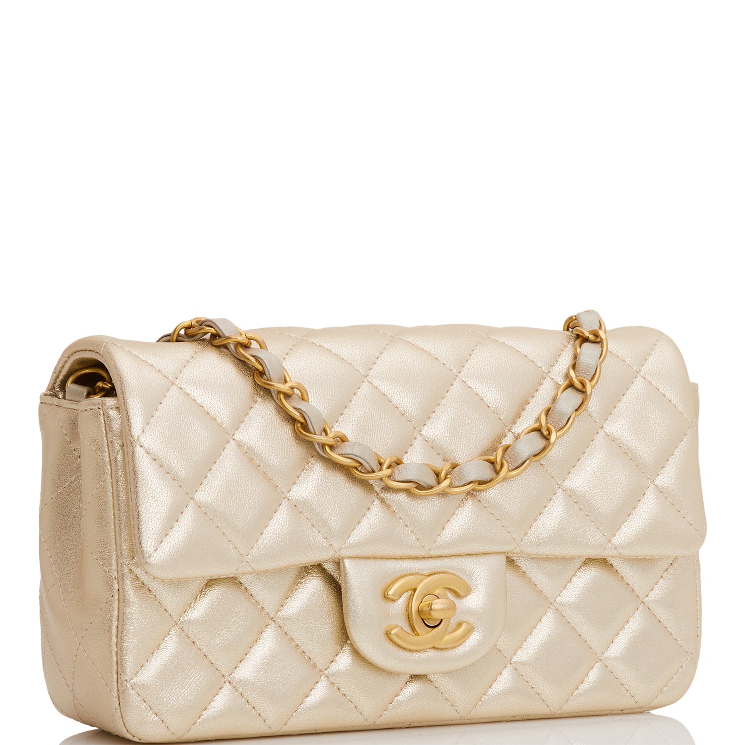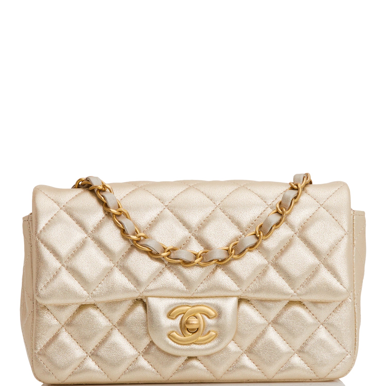 Chanel Mini Rectangular Flap Bag Gold Metallic Goatskin Antique Gold Hardware
