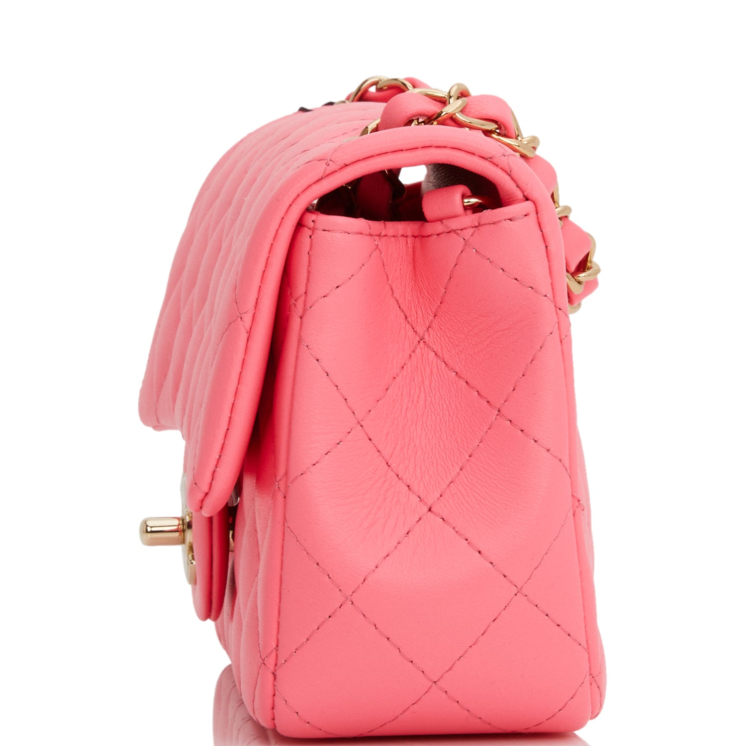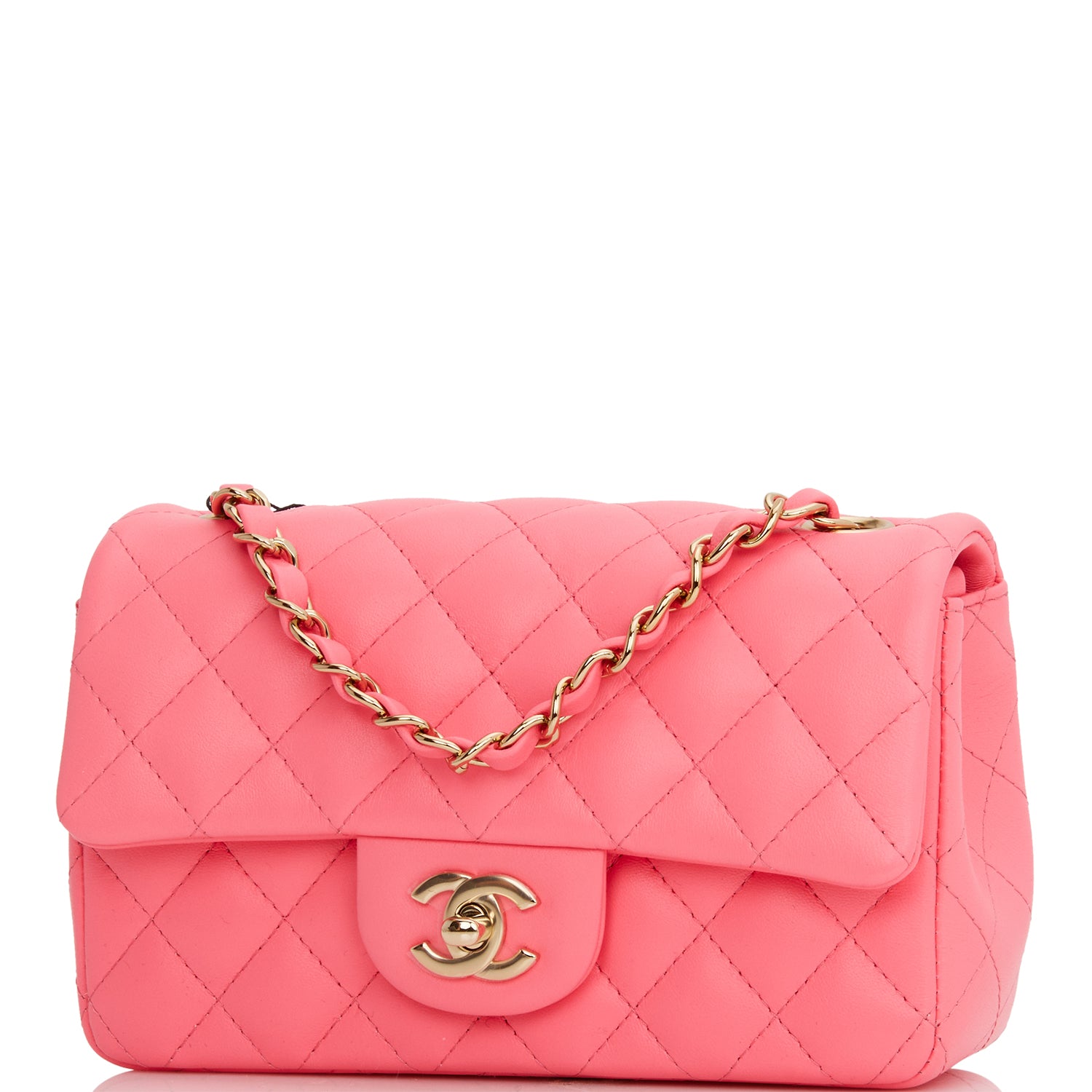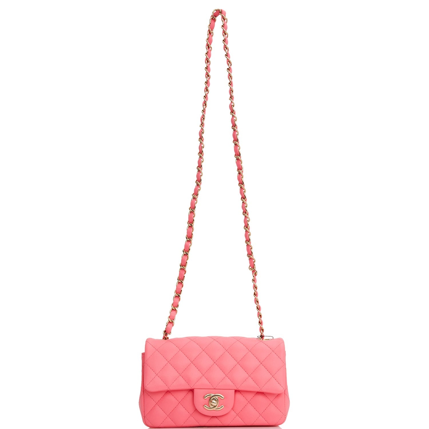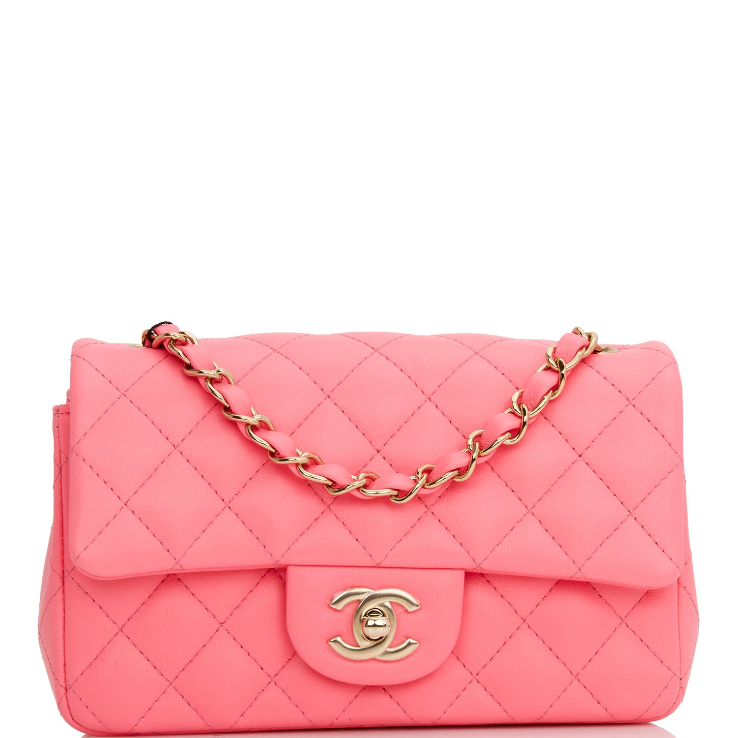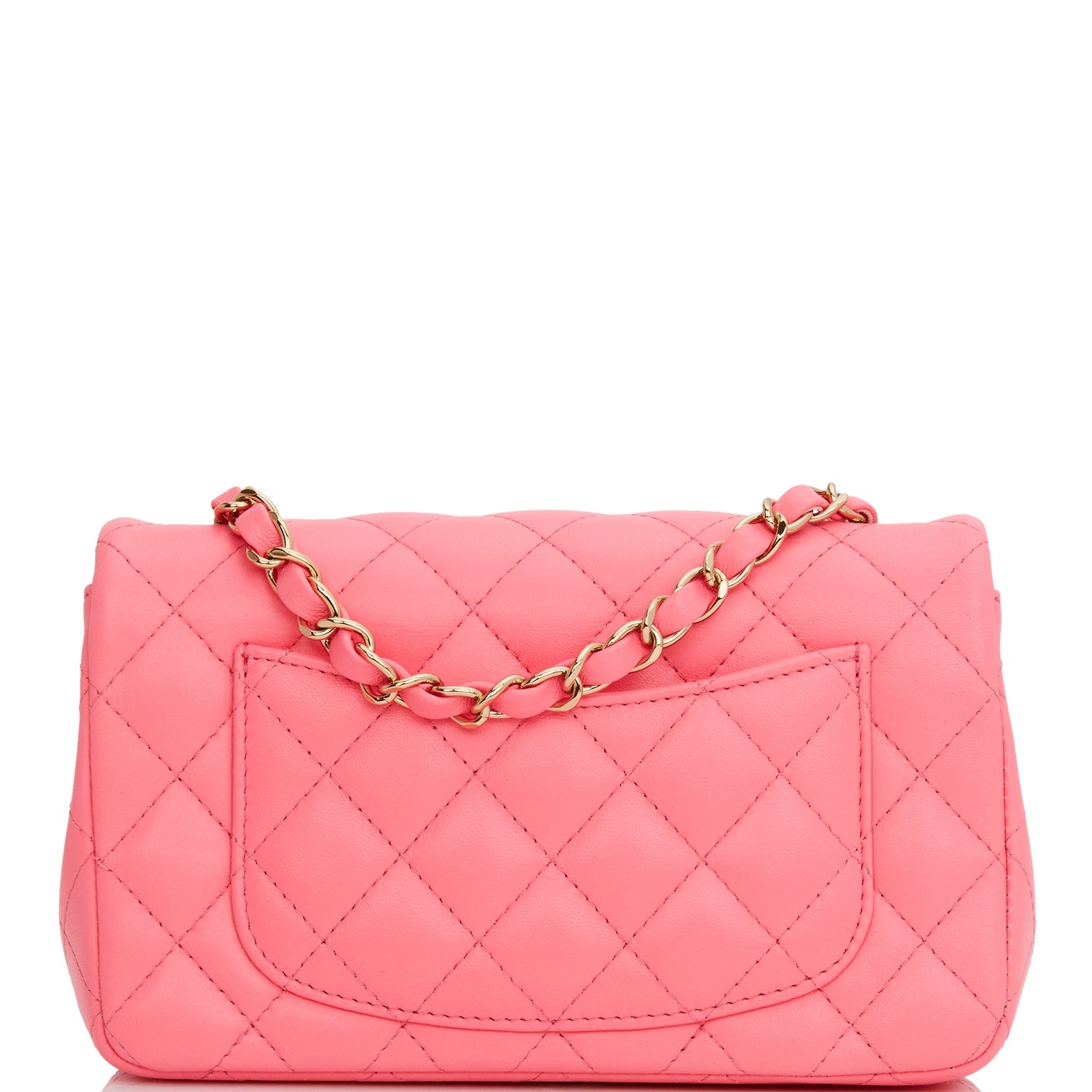 Chanel Mini Rectangular Flap Bag Pink Lambskin Light Gold Hardware