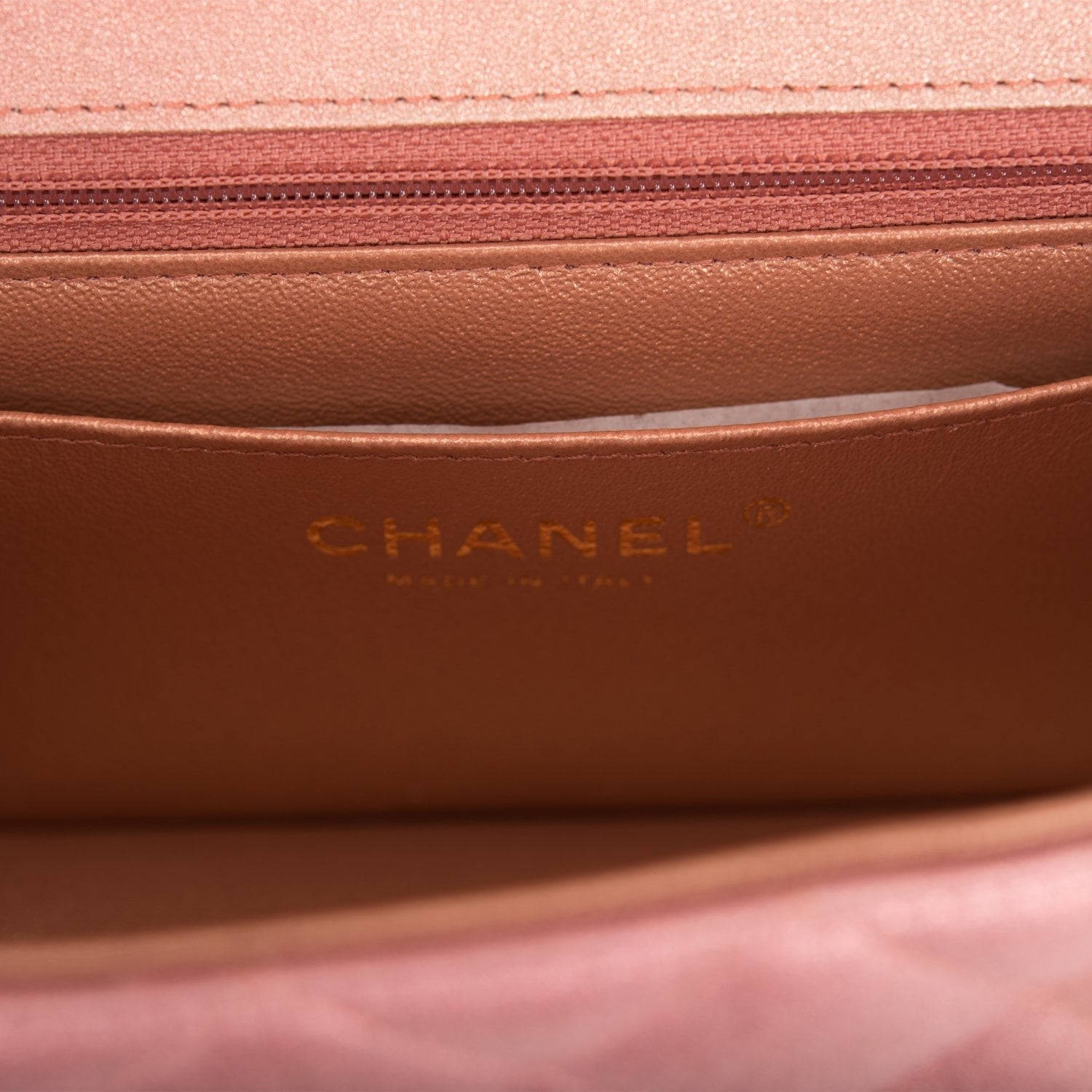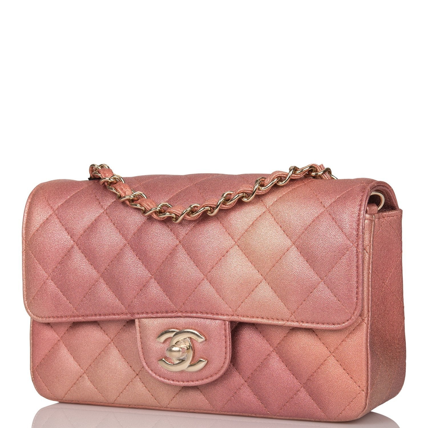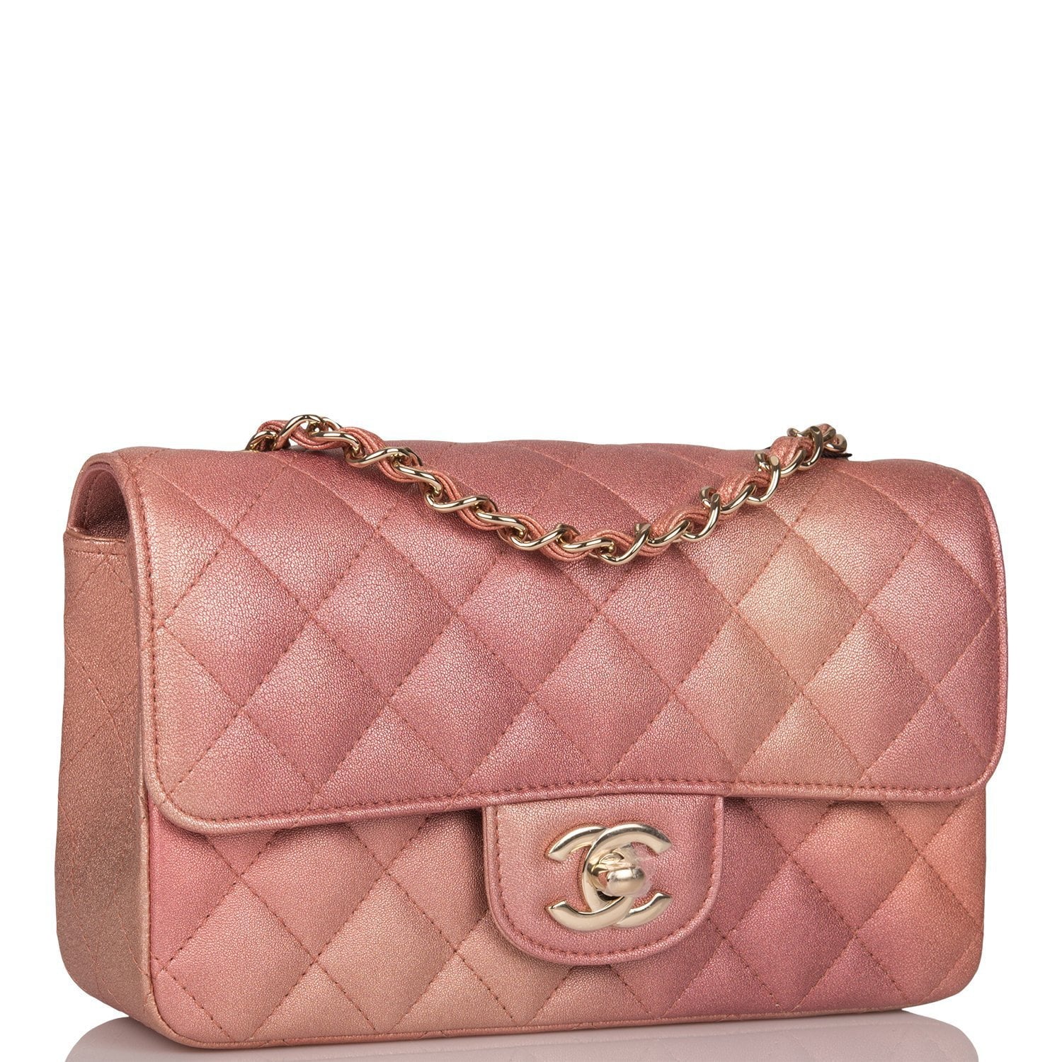 Chanel Mini Rectangular Flap Bag Pink Ombre Metallic Lambskin Light Gold Hardware