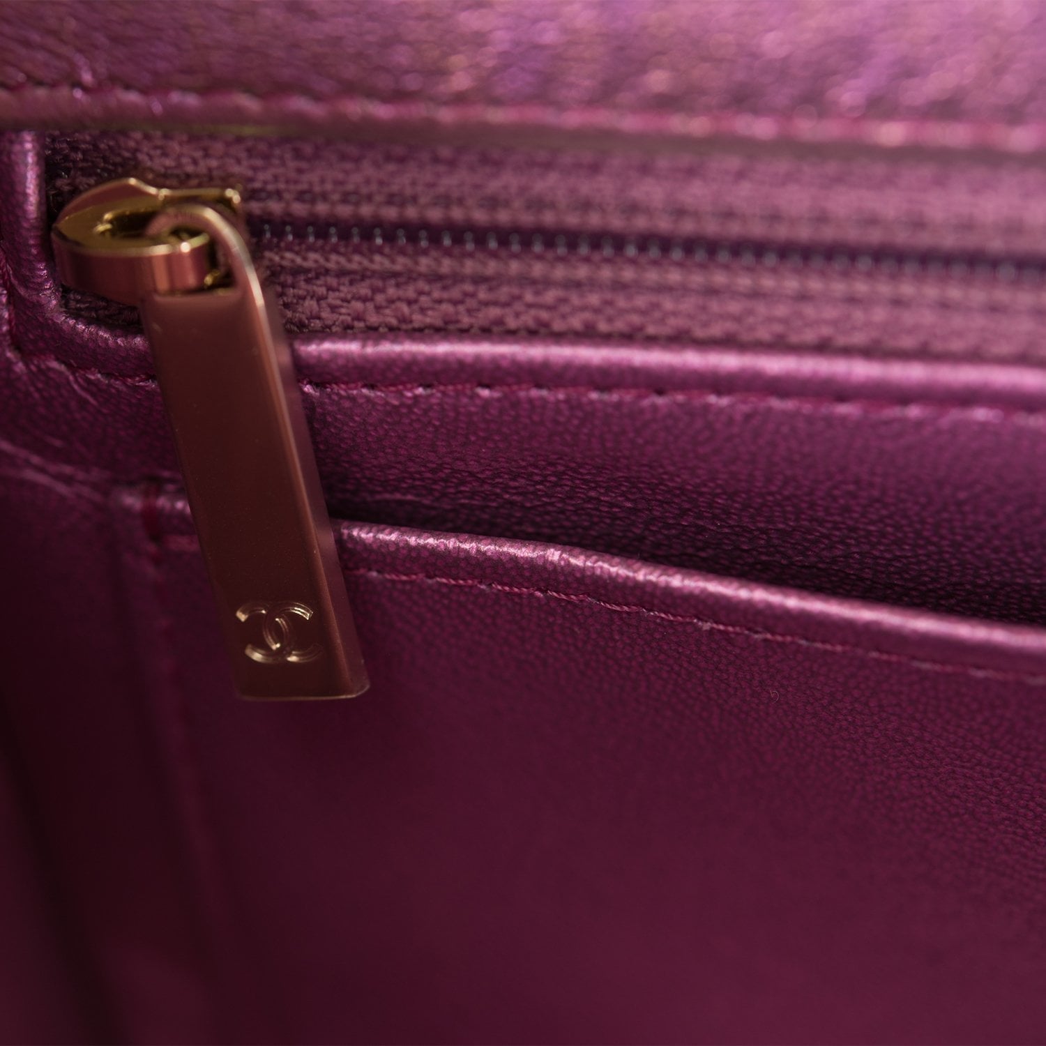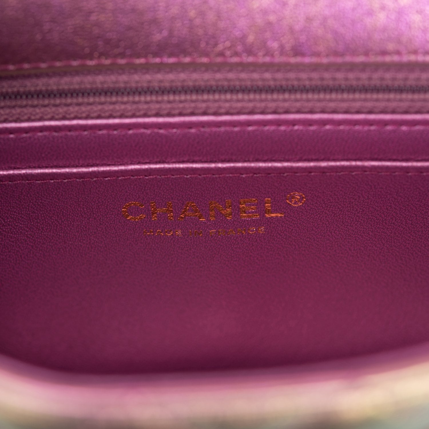Chanel Mini Rectangular Flap Bag Purple Iridescent Lambskin Light Gold Hardware