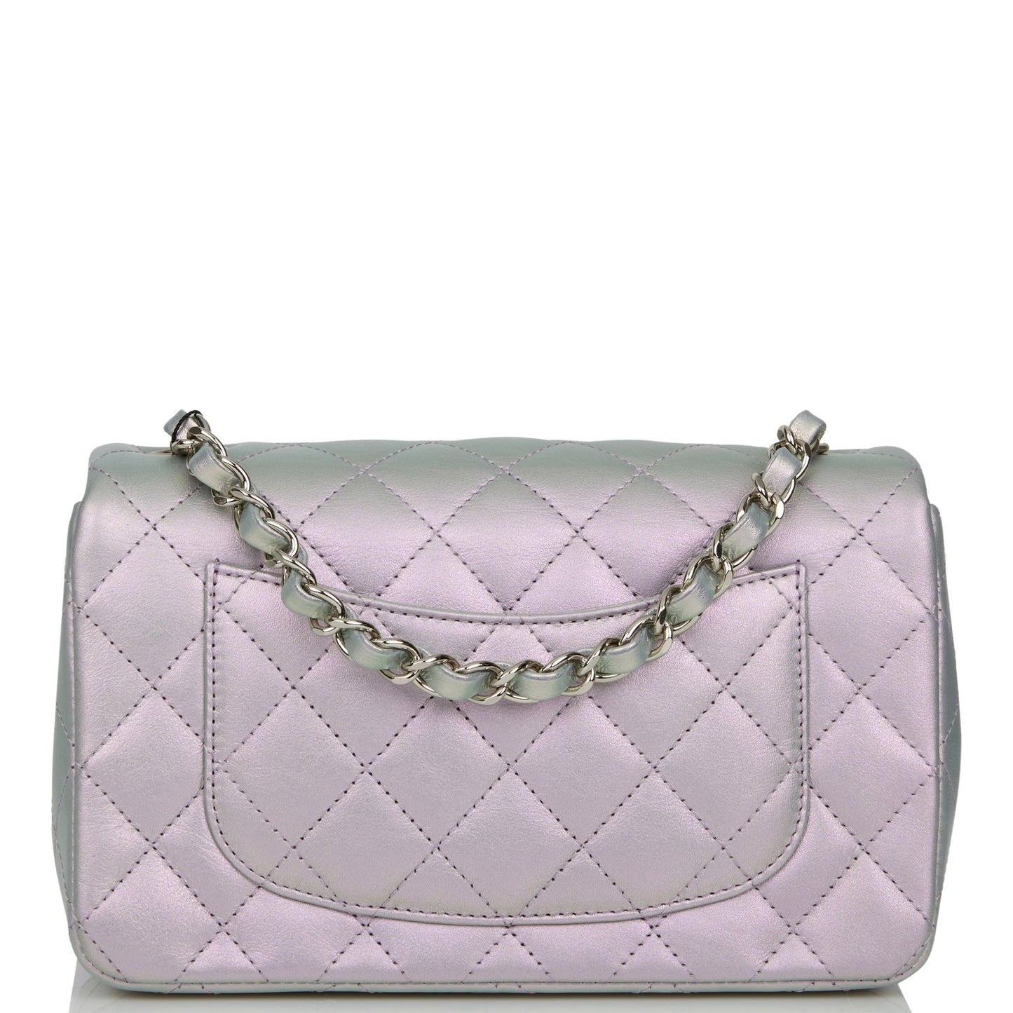 Chanel Mini Rectangular Flap Bag Purple Iridescent Quilted Lambskin Silver Hardware