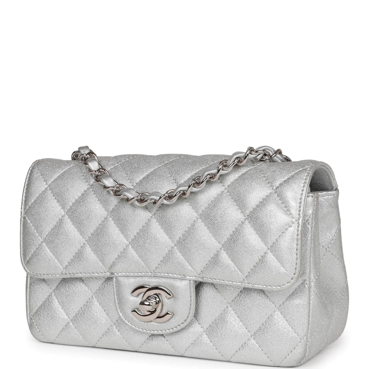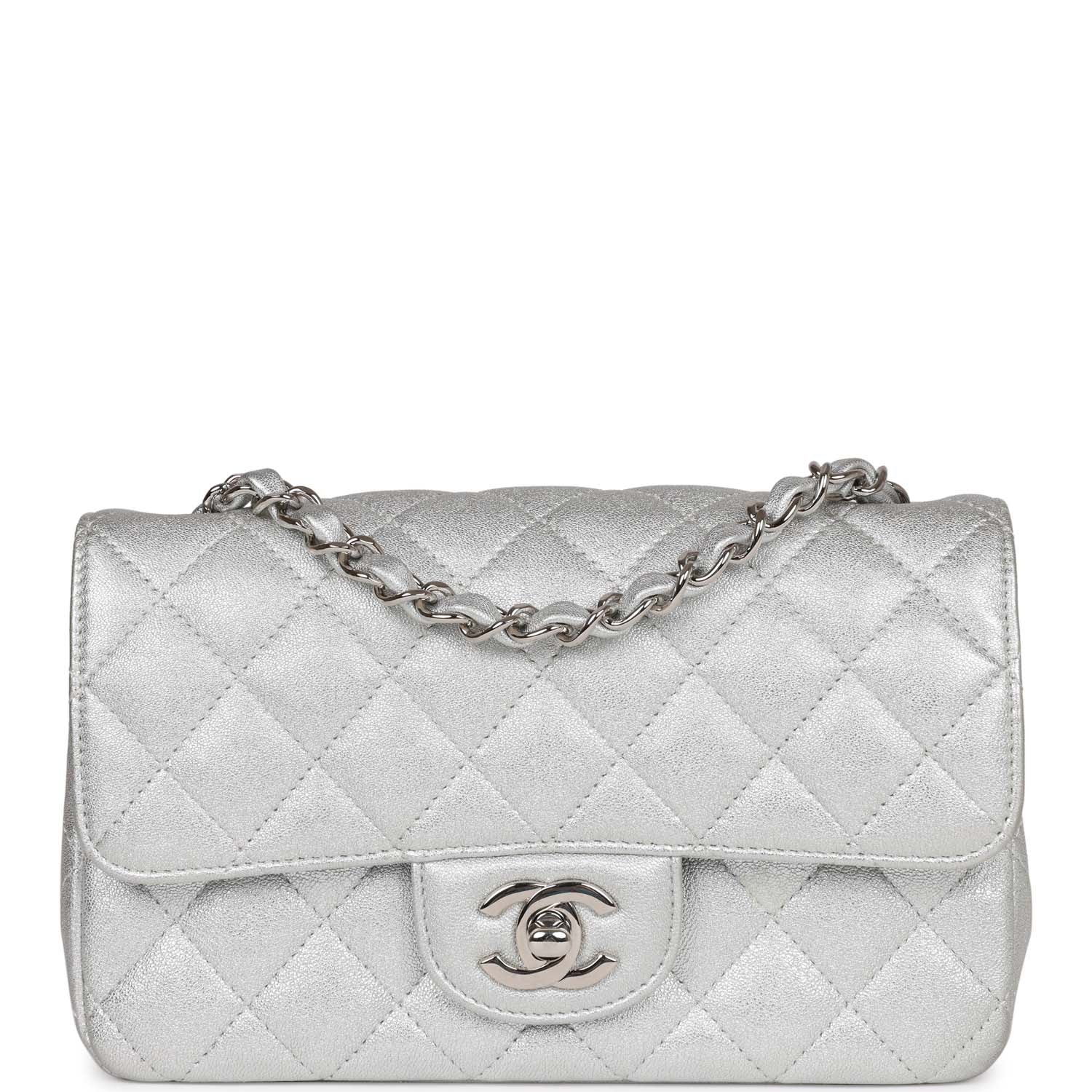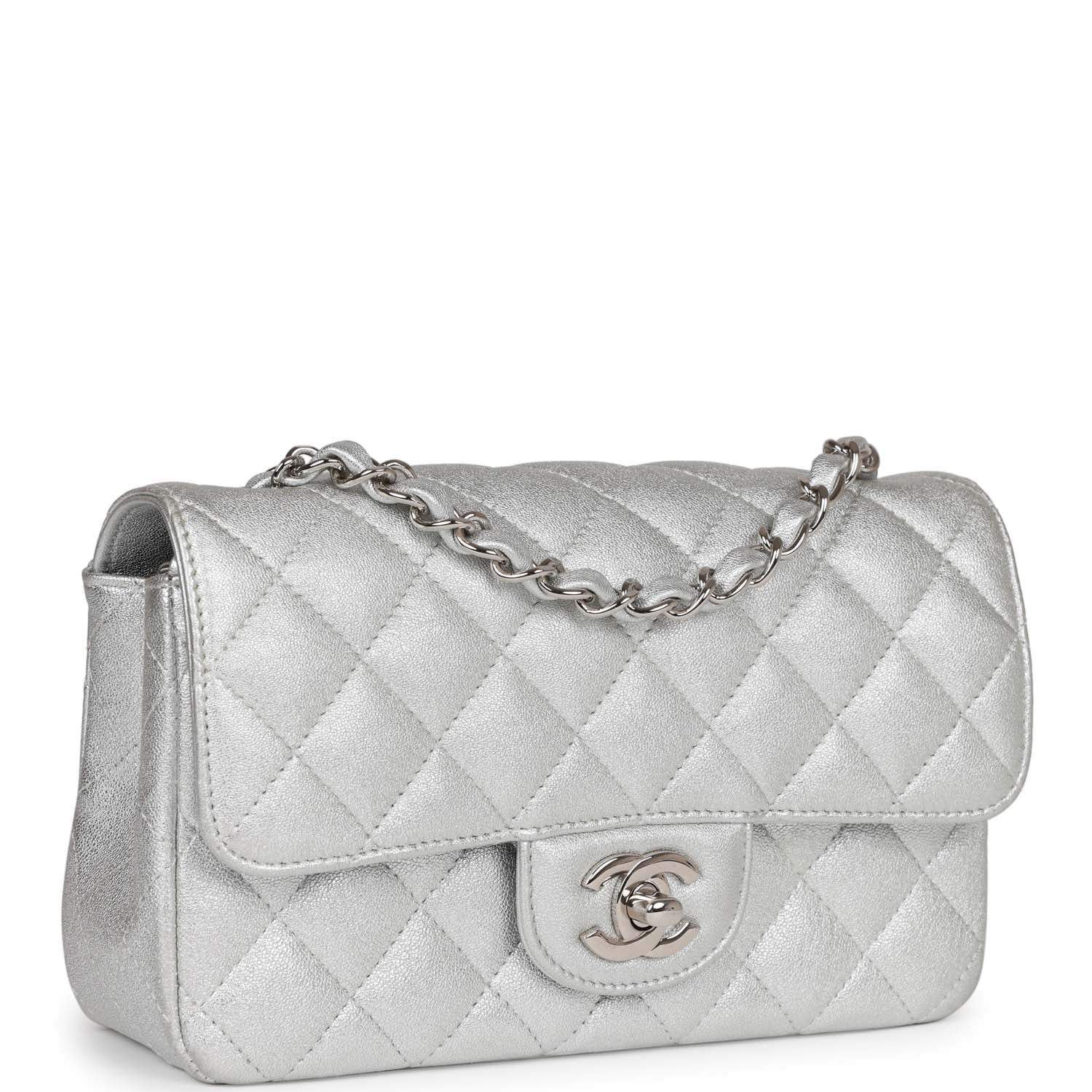Chanel Mini Rectangular Flap Bag Silver Calfskin Silver Hardware