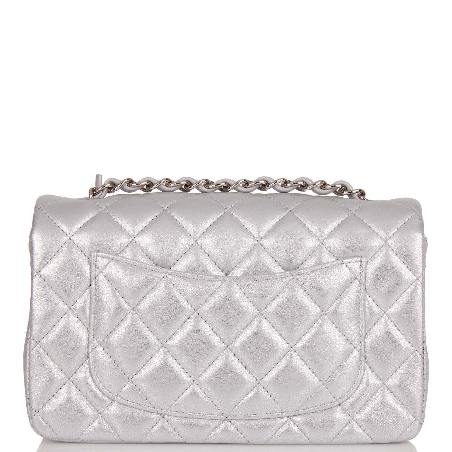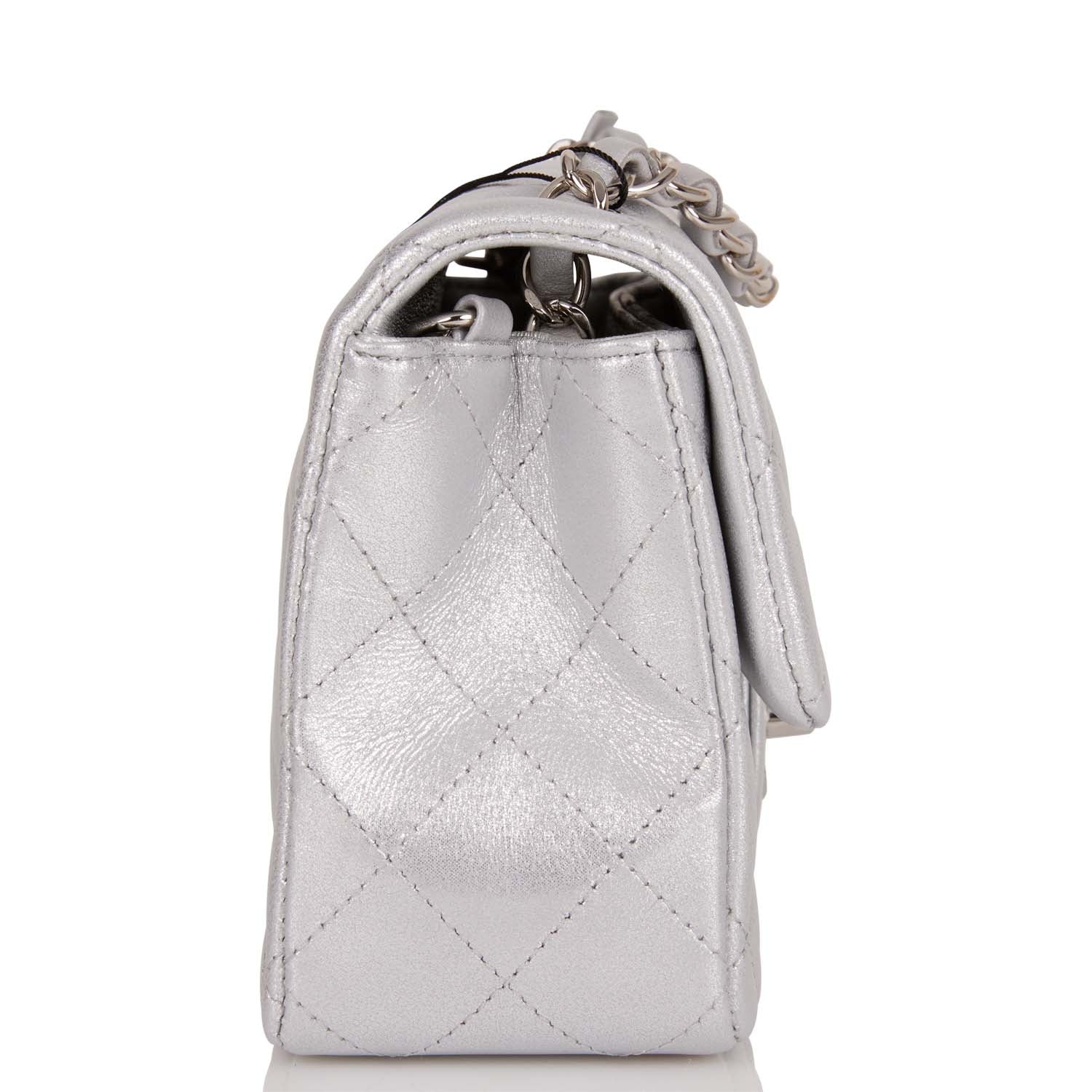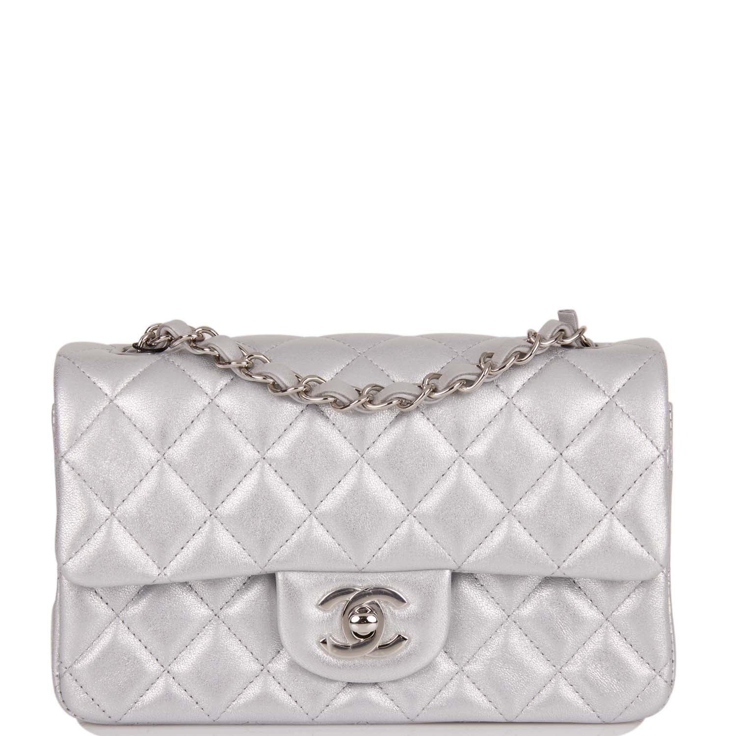 Chanel Mini Rectangular Flap Bag Silver Iridescent Lambskin Silver Hardware