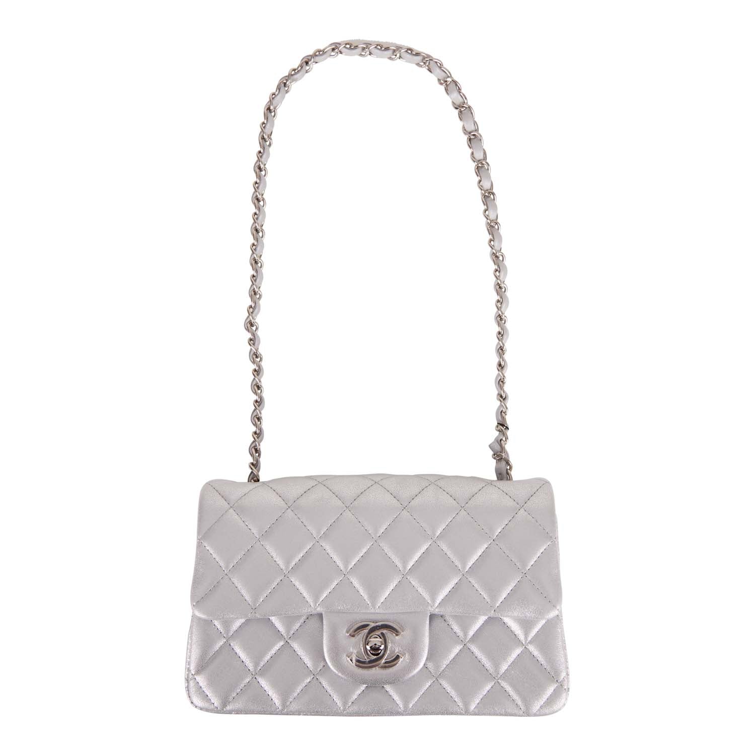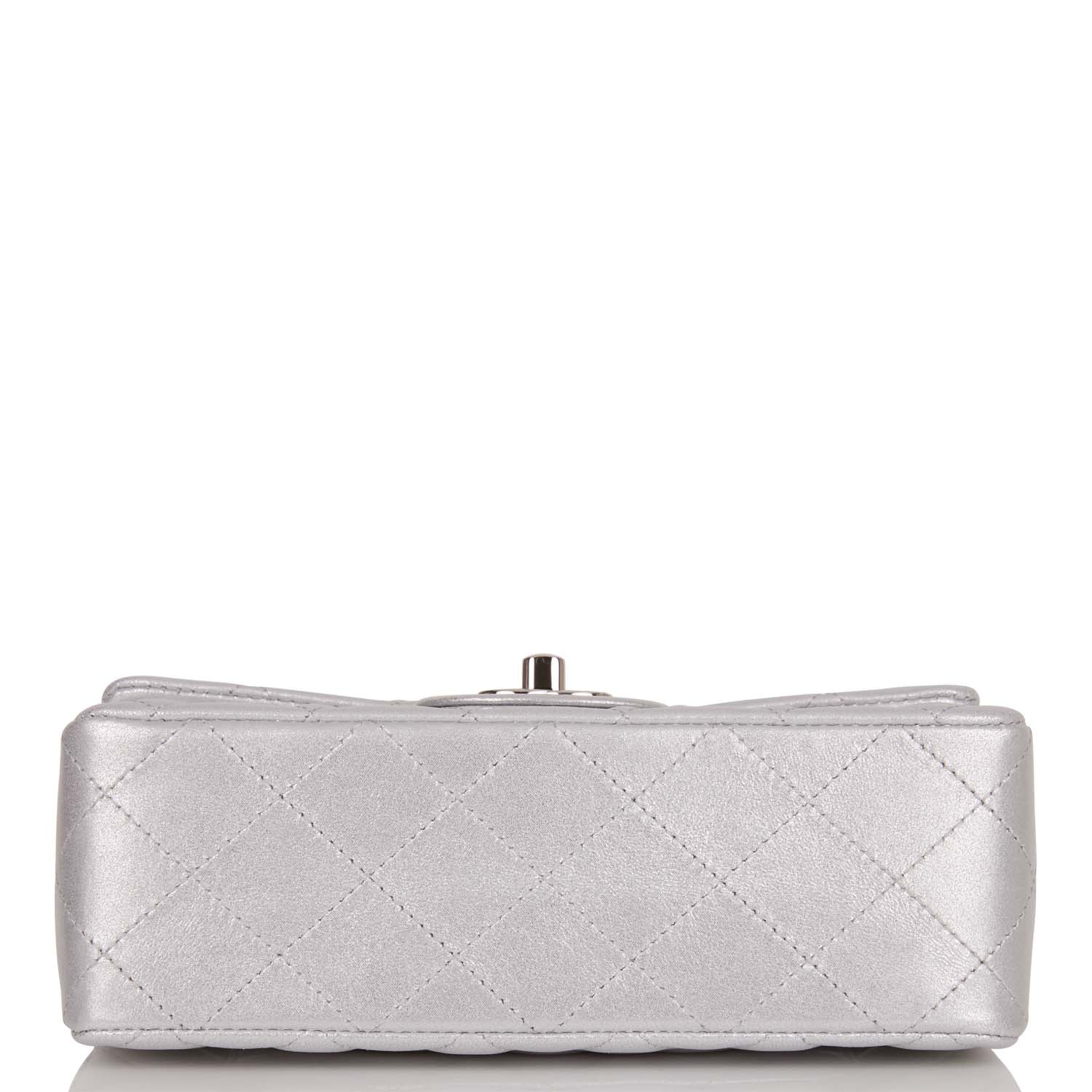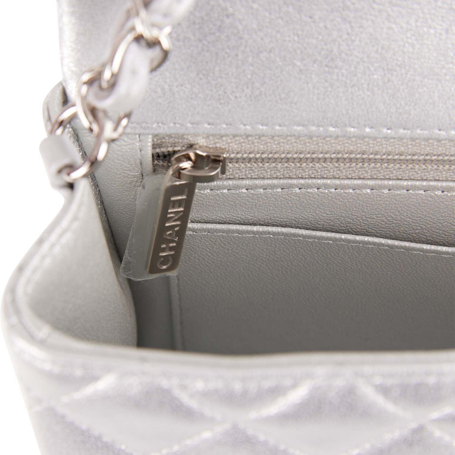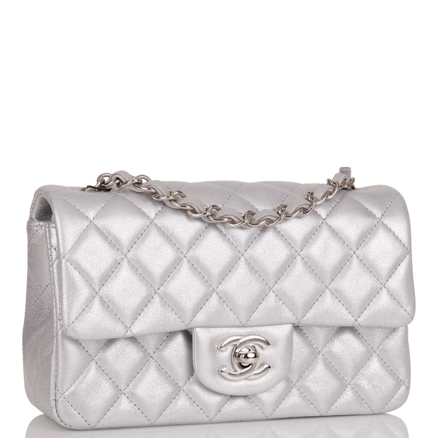 Chanel Mini Rectangular Flap Bag Silver Iridescent Lambskin Silver Hardware