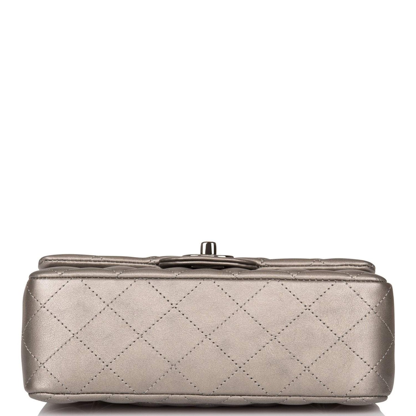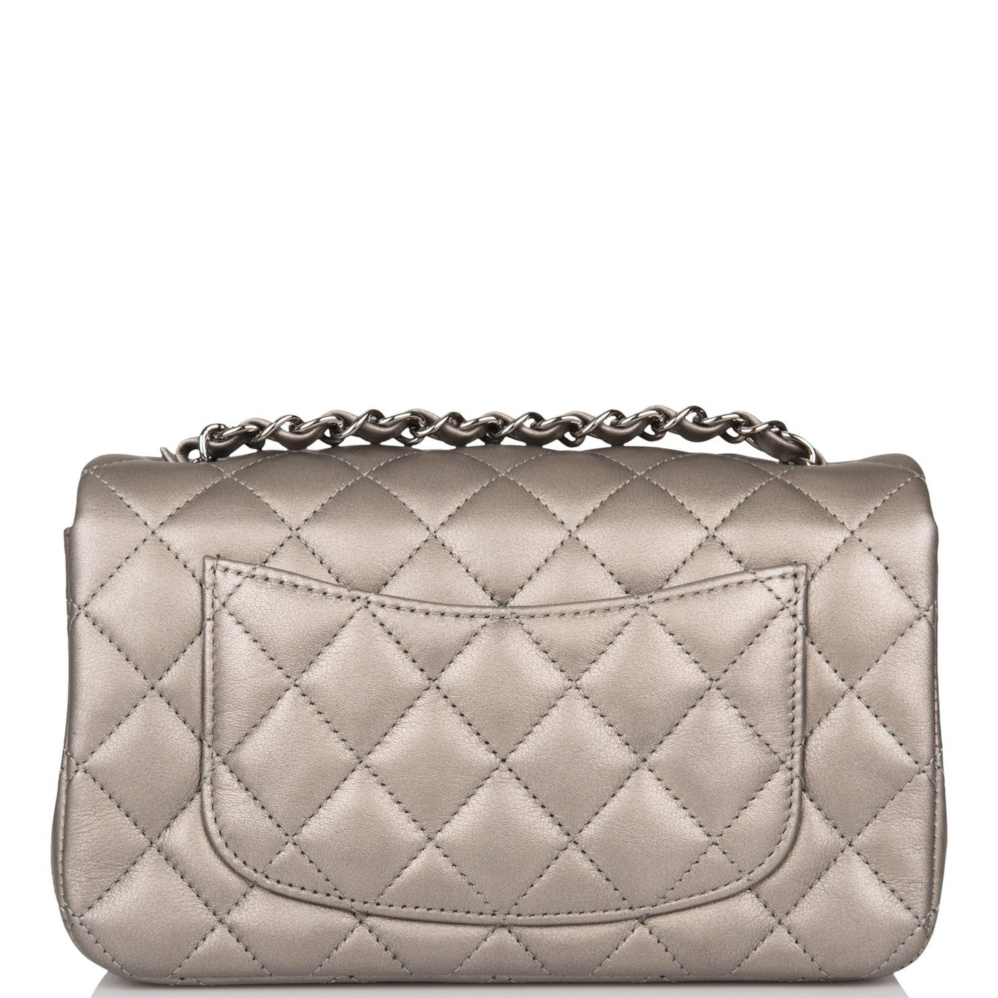 Chanel Mini Rectangular Flap Bag Ruthenium Metallic Lambskin Silver Hardware