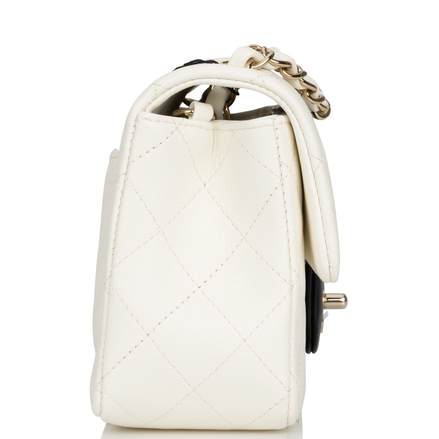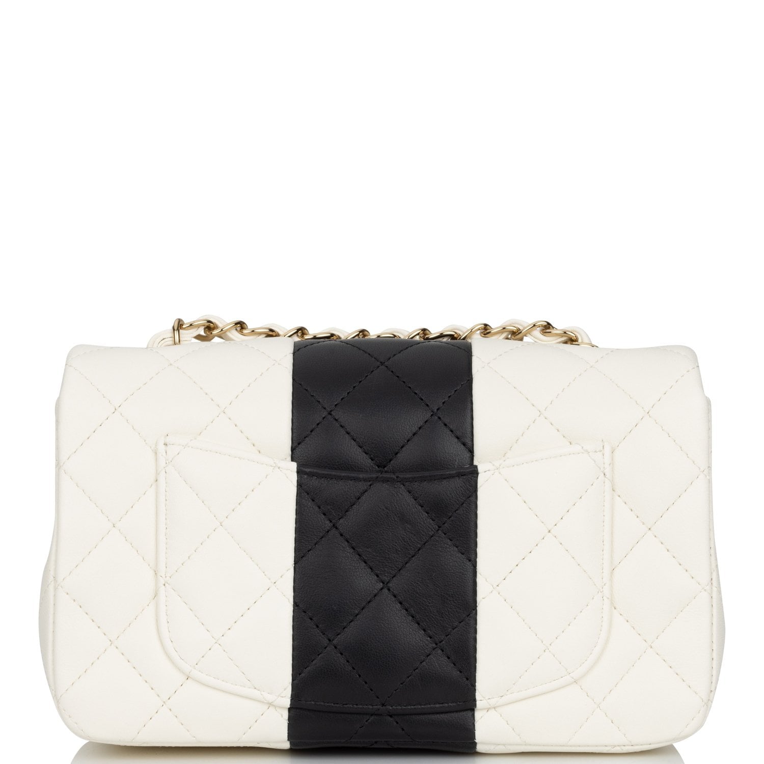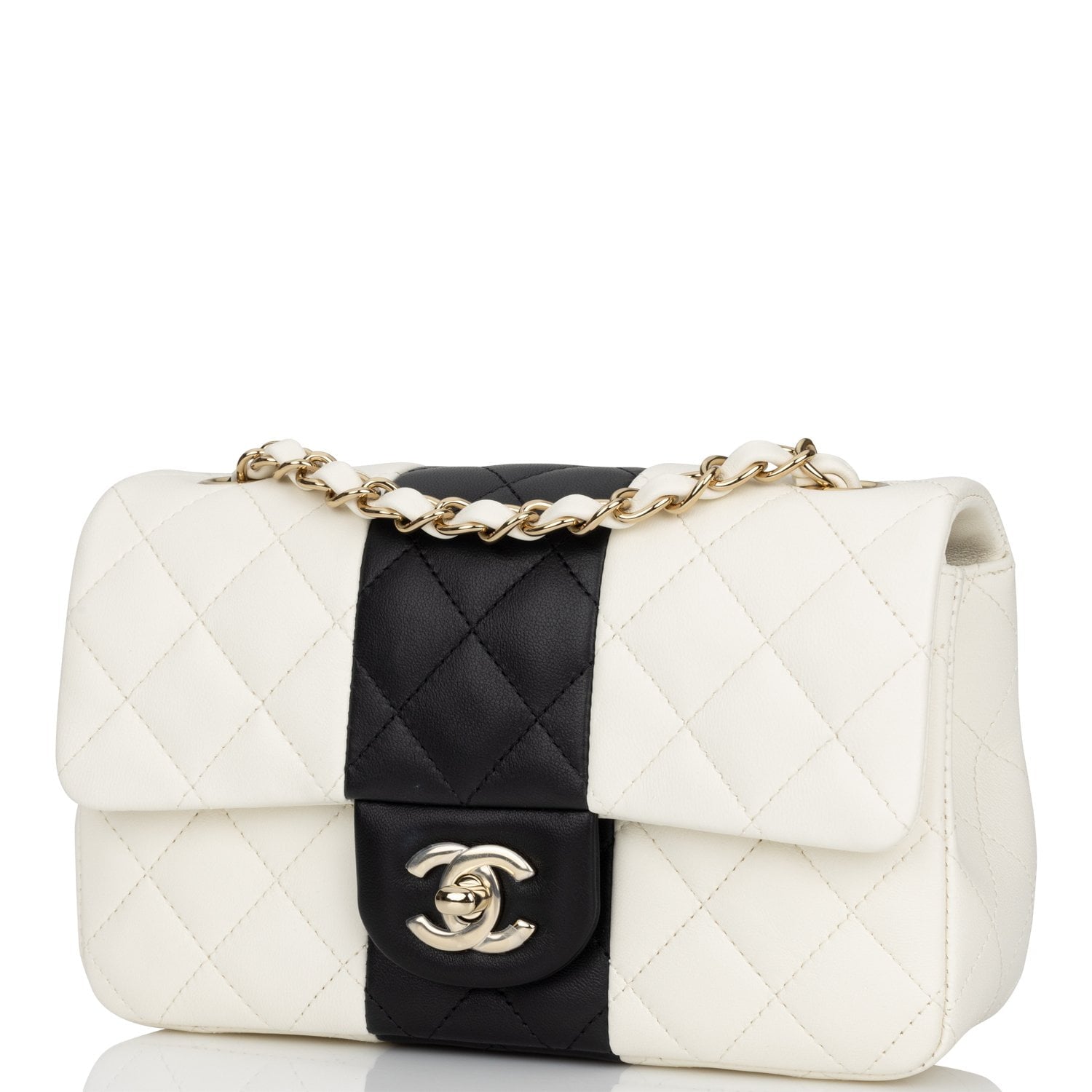 Chanel Mini Rectangular Flap Bag White and Black Lambskin Light Gold Hardware