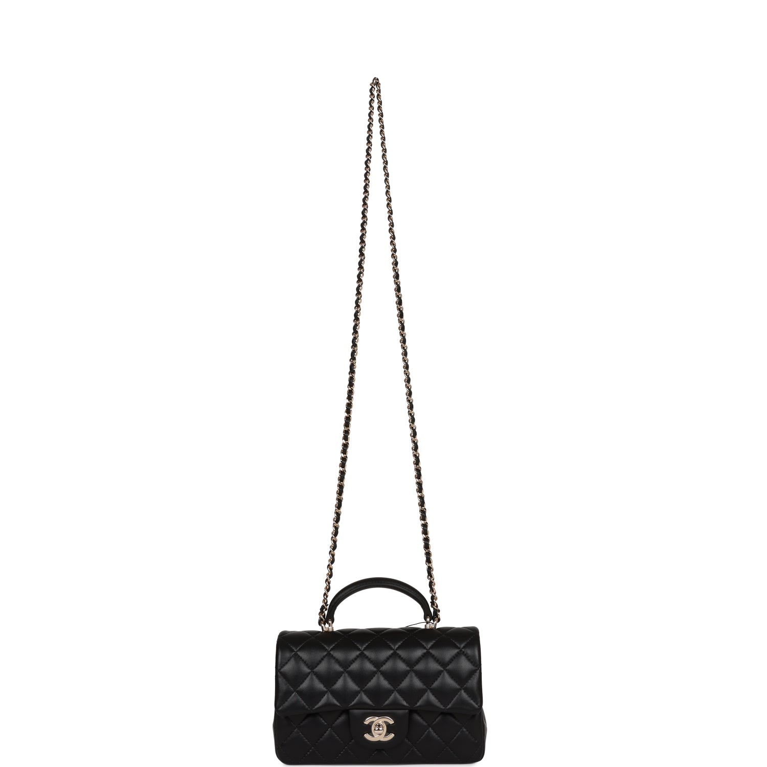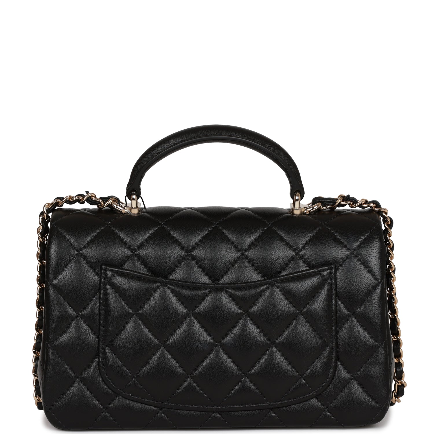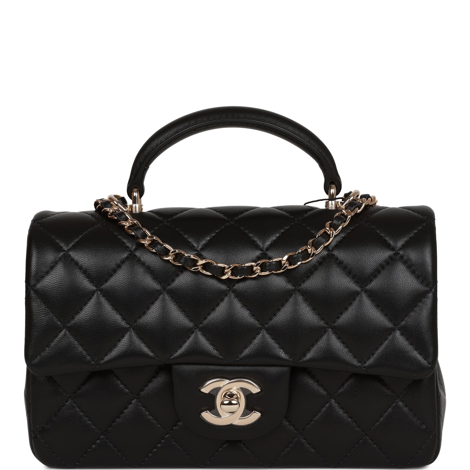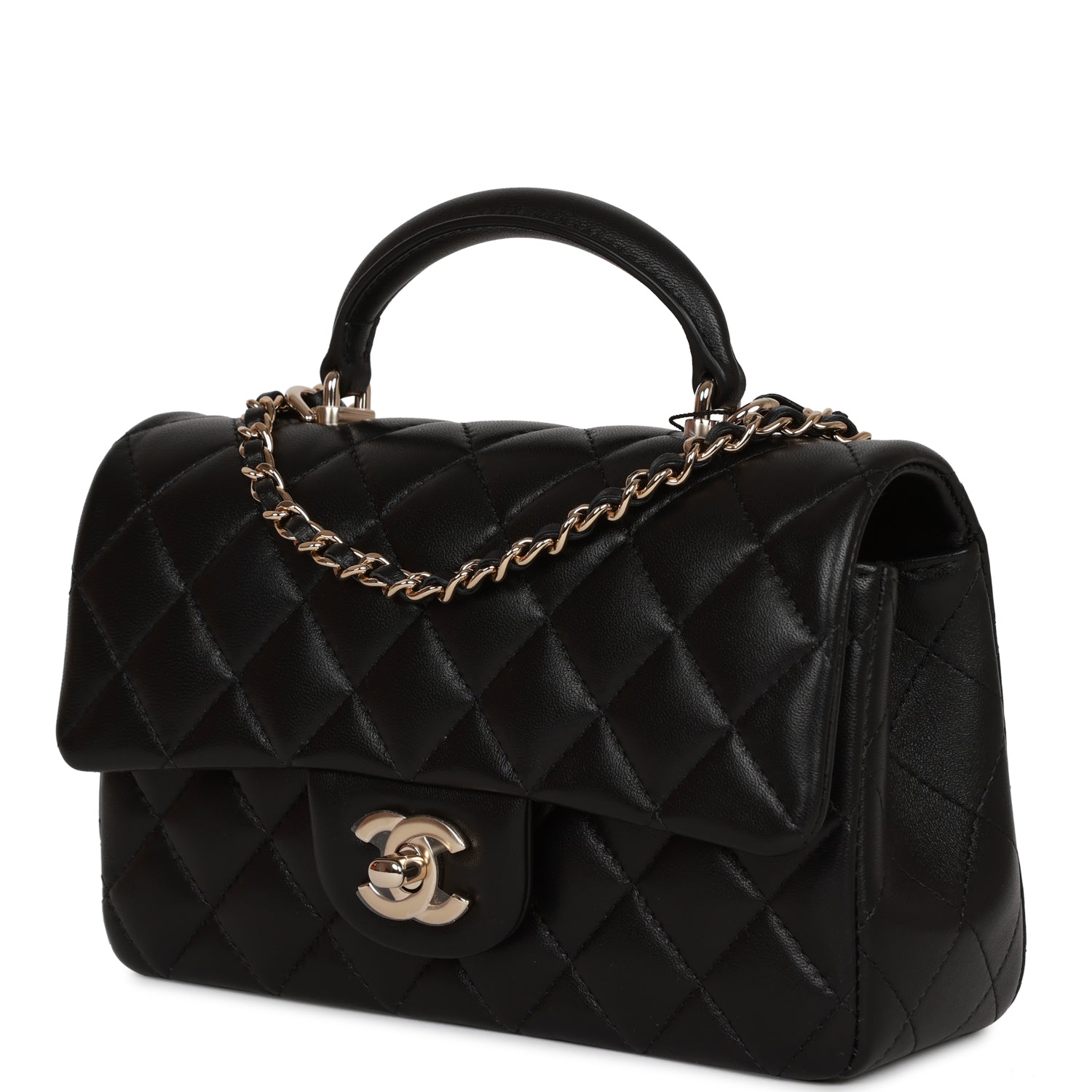 Chanel Mini Rectangular Flap Bag with Top Handle Black Lambskin Light Gold Hardware