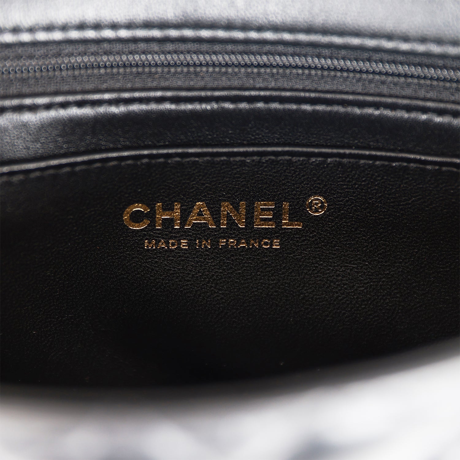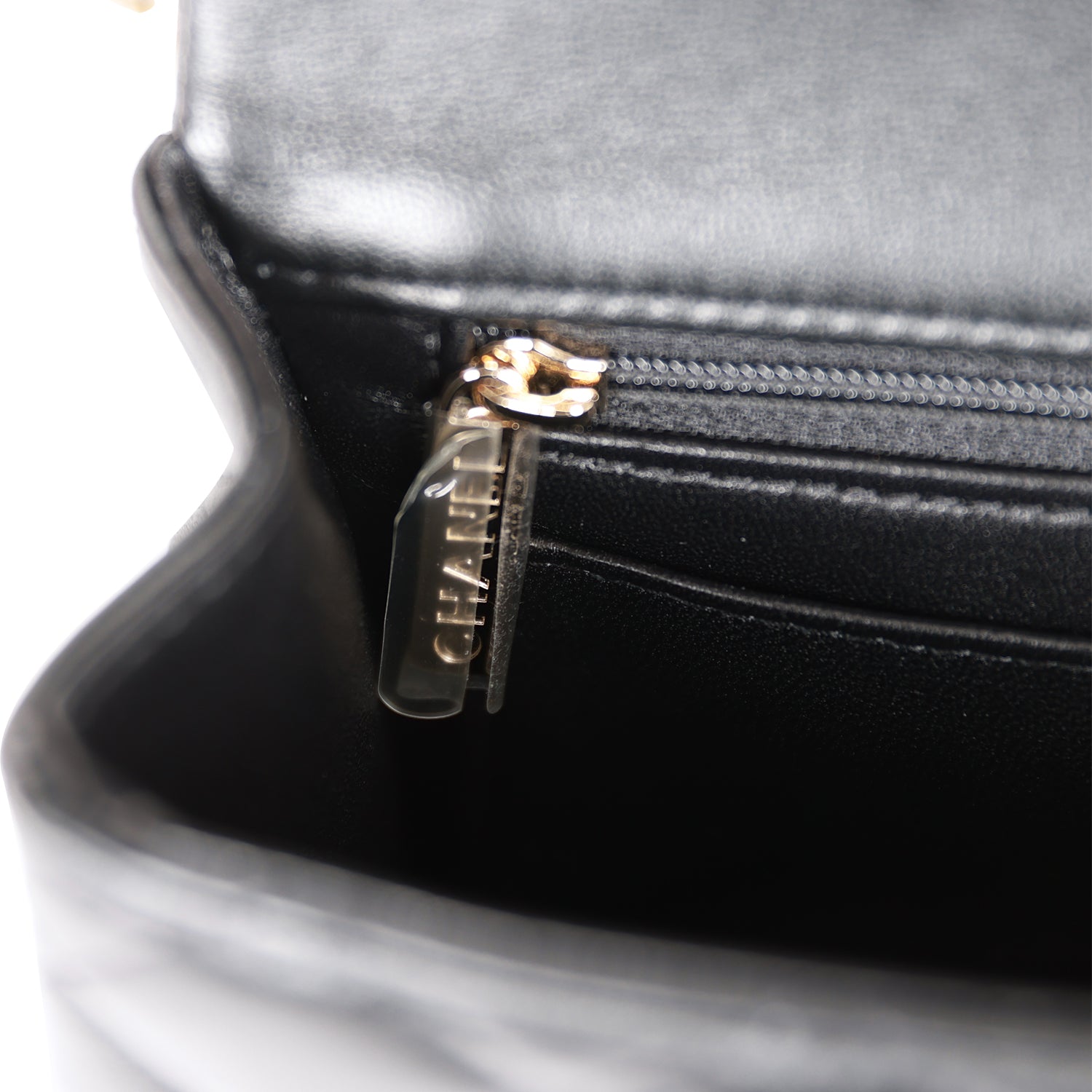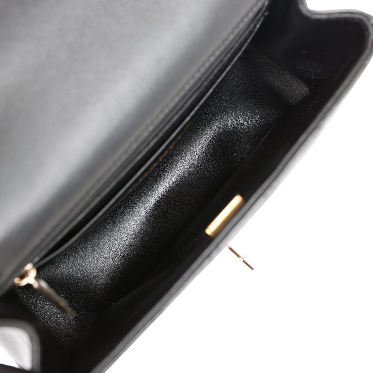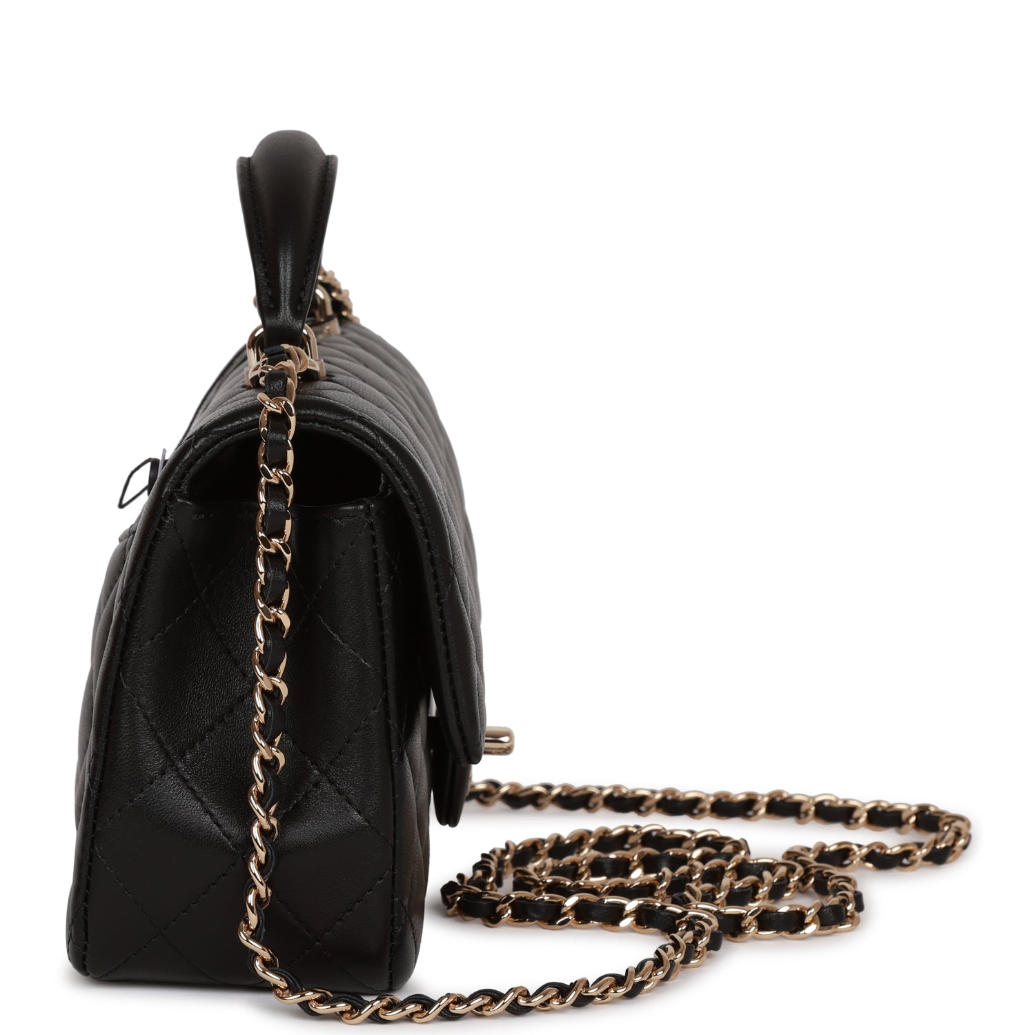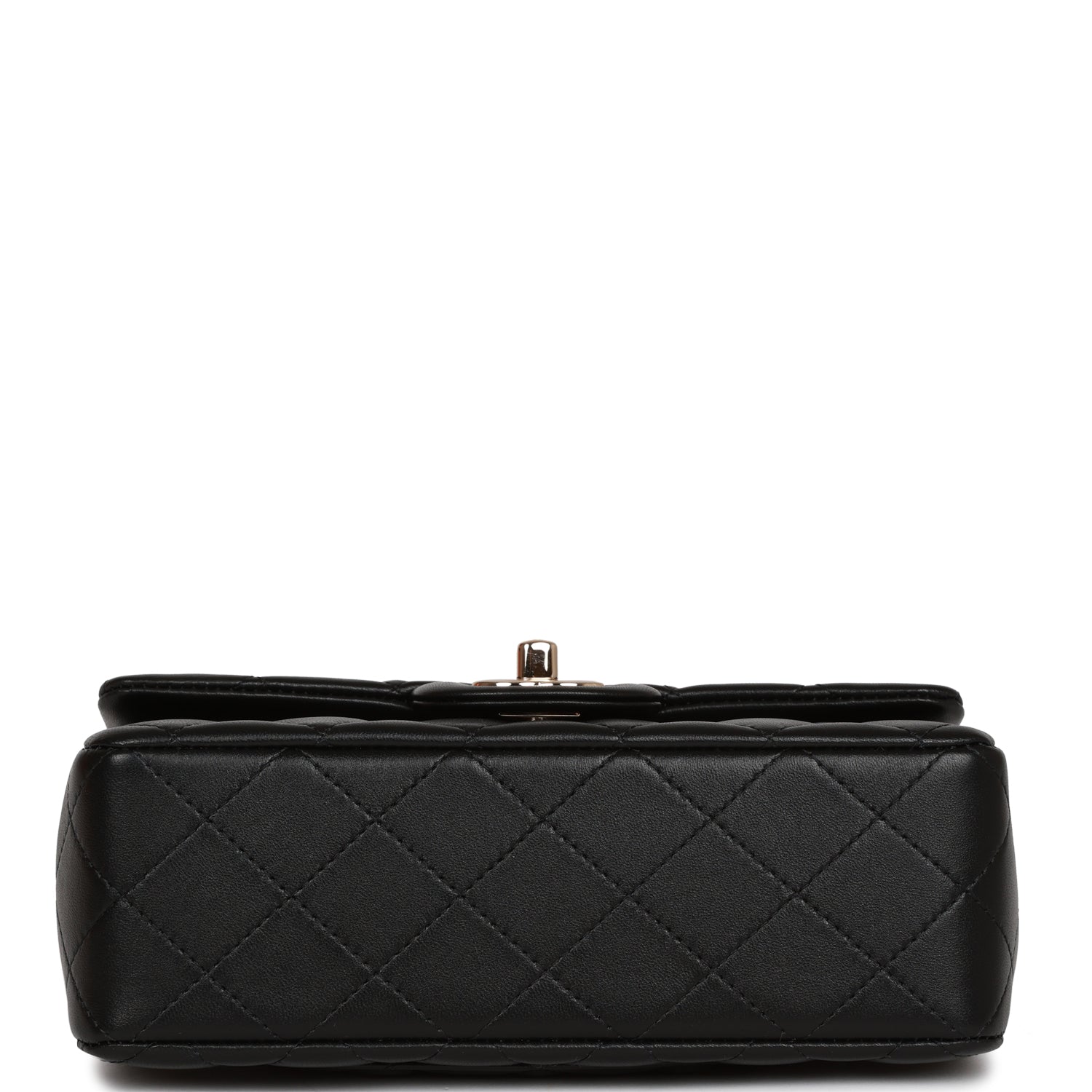 Chanel Mini Rectangular Flap Bag with Top Handle Black Lambskin Light Gold Hardware