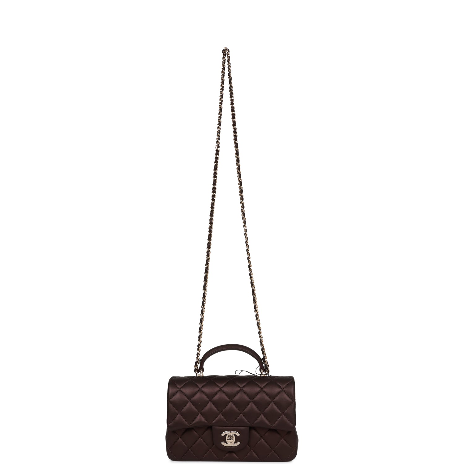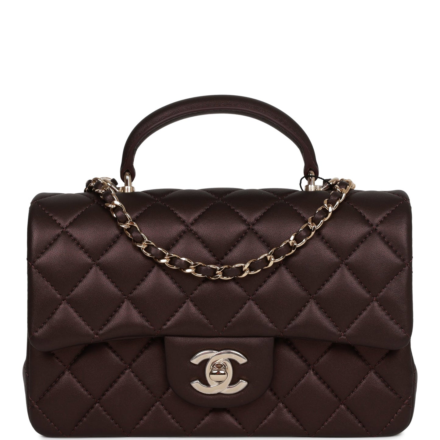 Chanel Mini Rectangular Flap Bag with Top Handle Burgundy Lambskin Light Gold Hardware