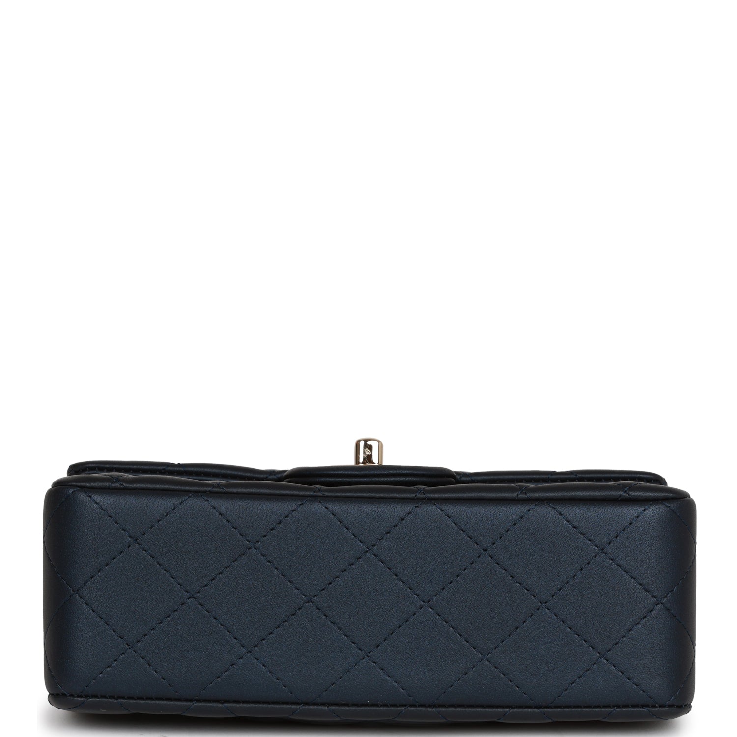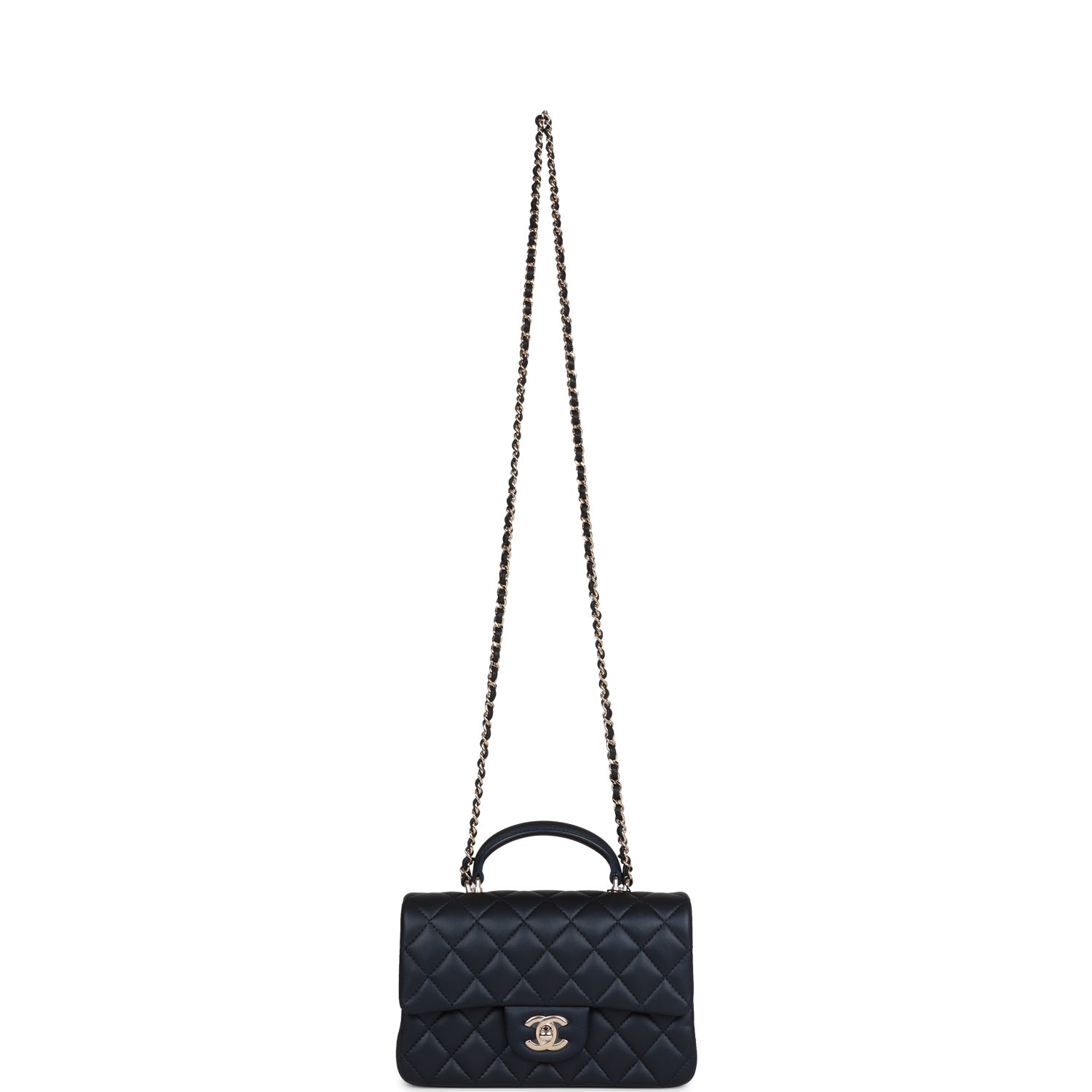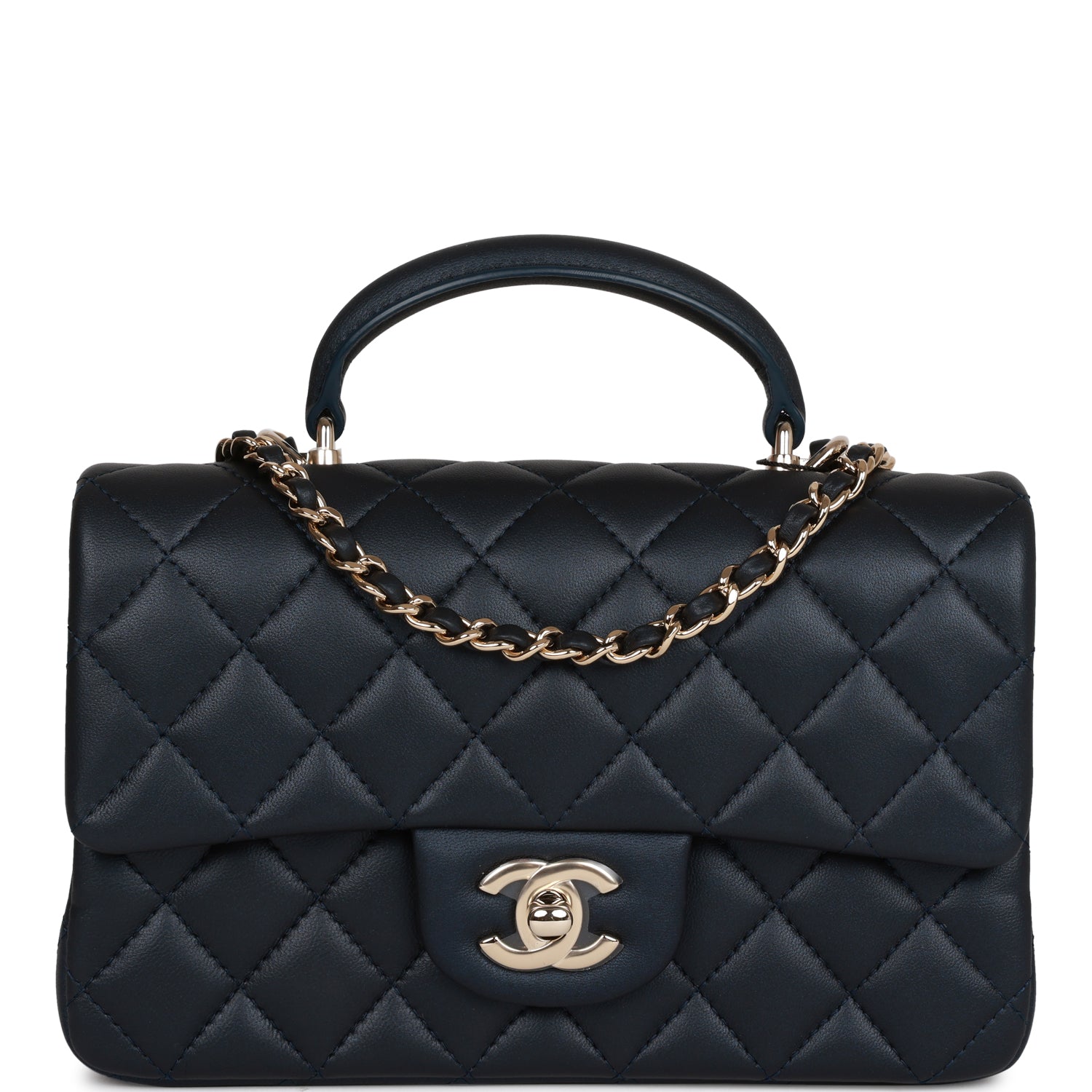 Chanel Mini Rectangular Flap Bag with Top Handle Dark Blue Lambskin Light Gold Hardware