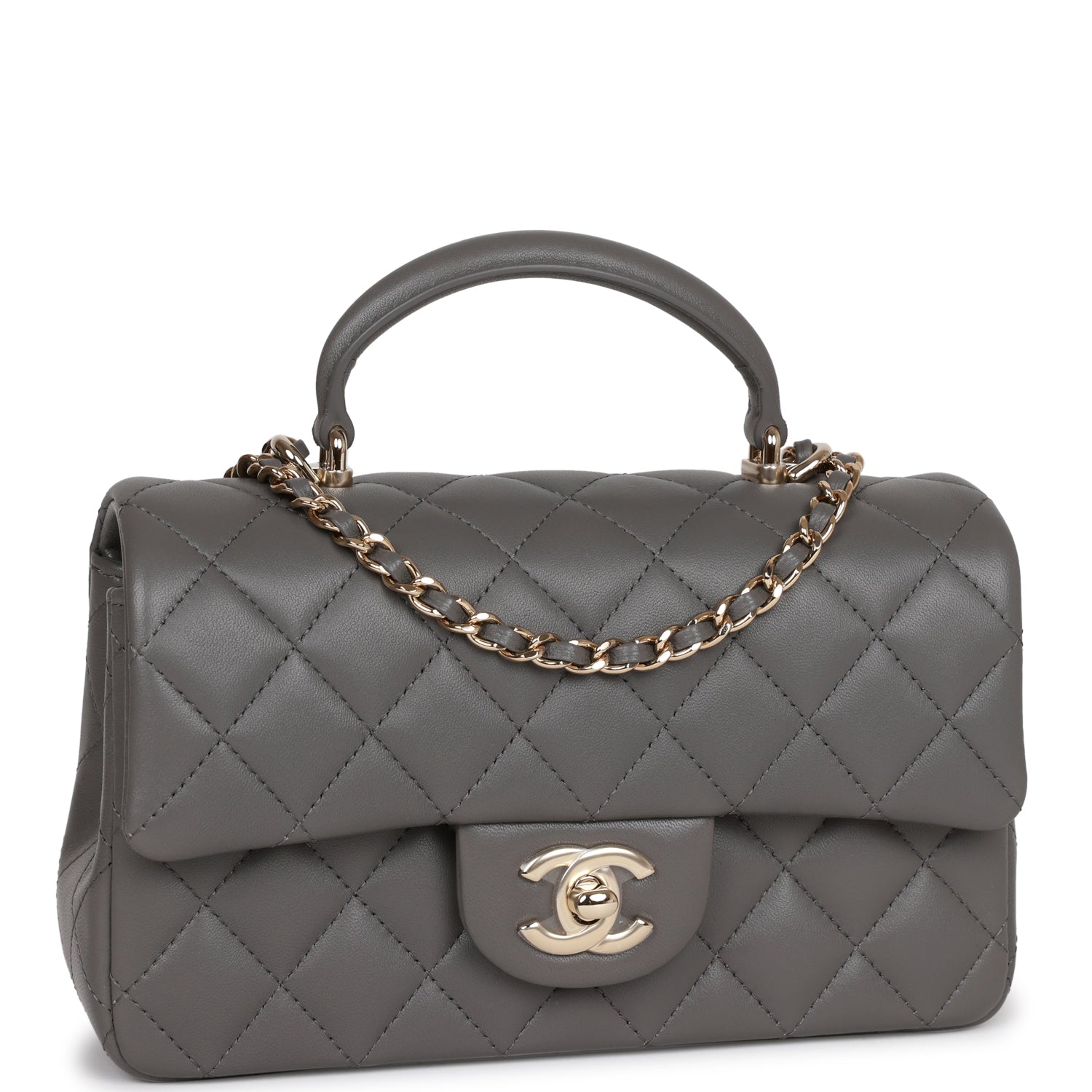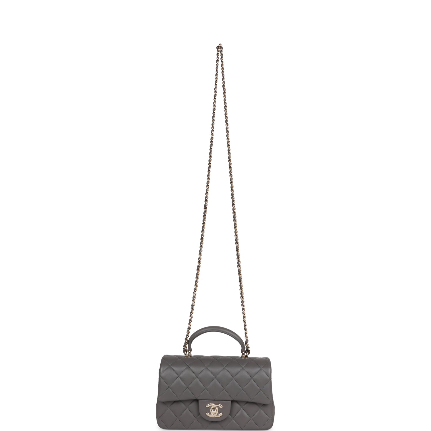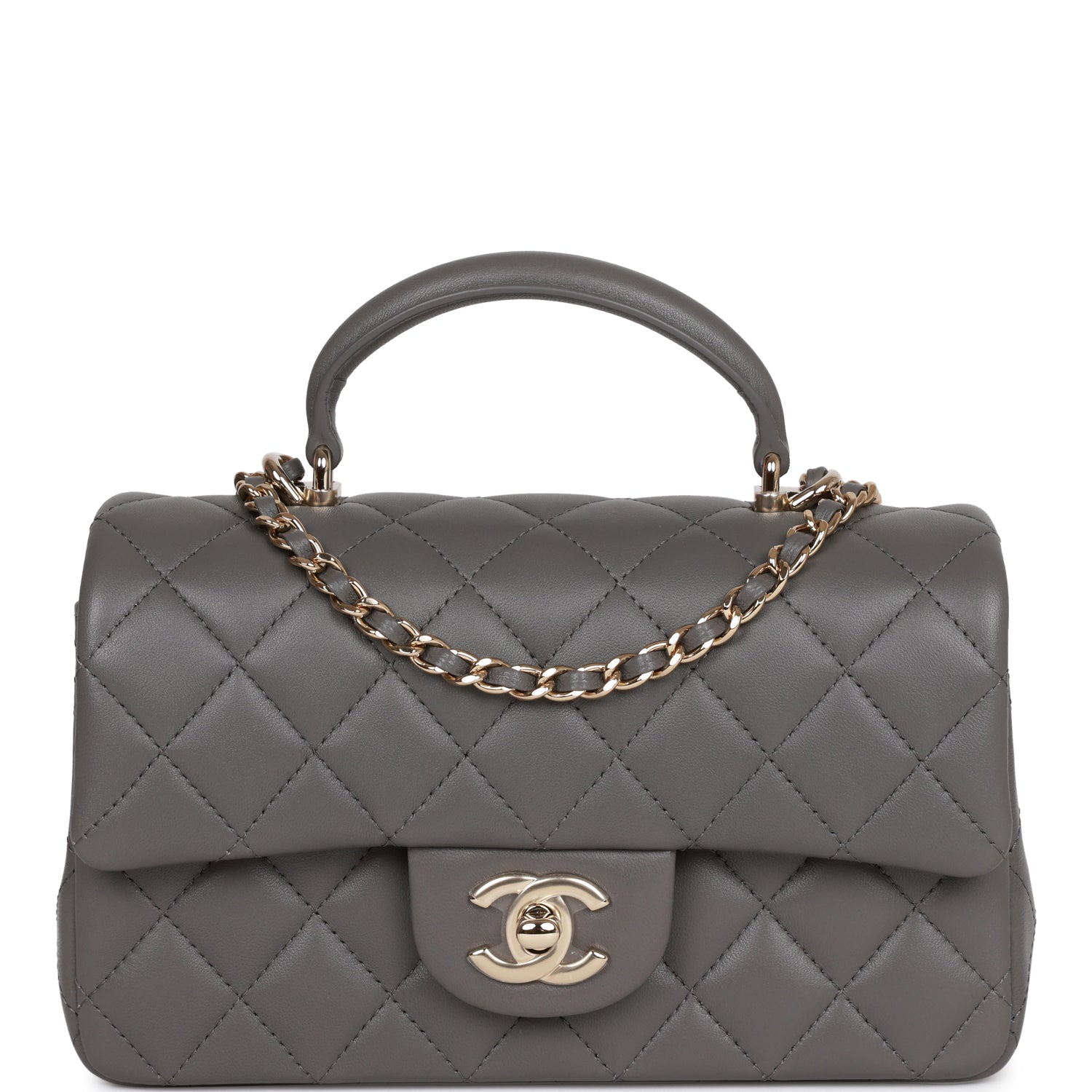 Chanel Mini Rectangular Flap Bag with Top Handle Dark Grey Lambskin Light Gold Hardware