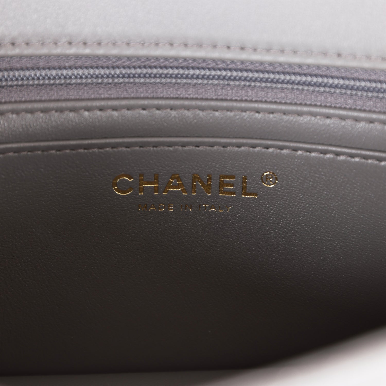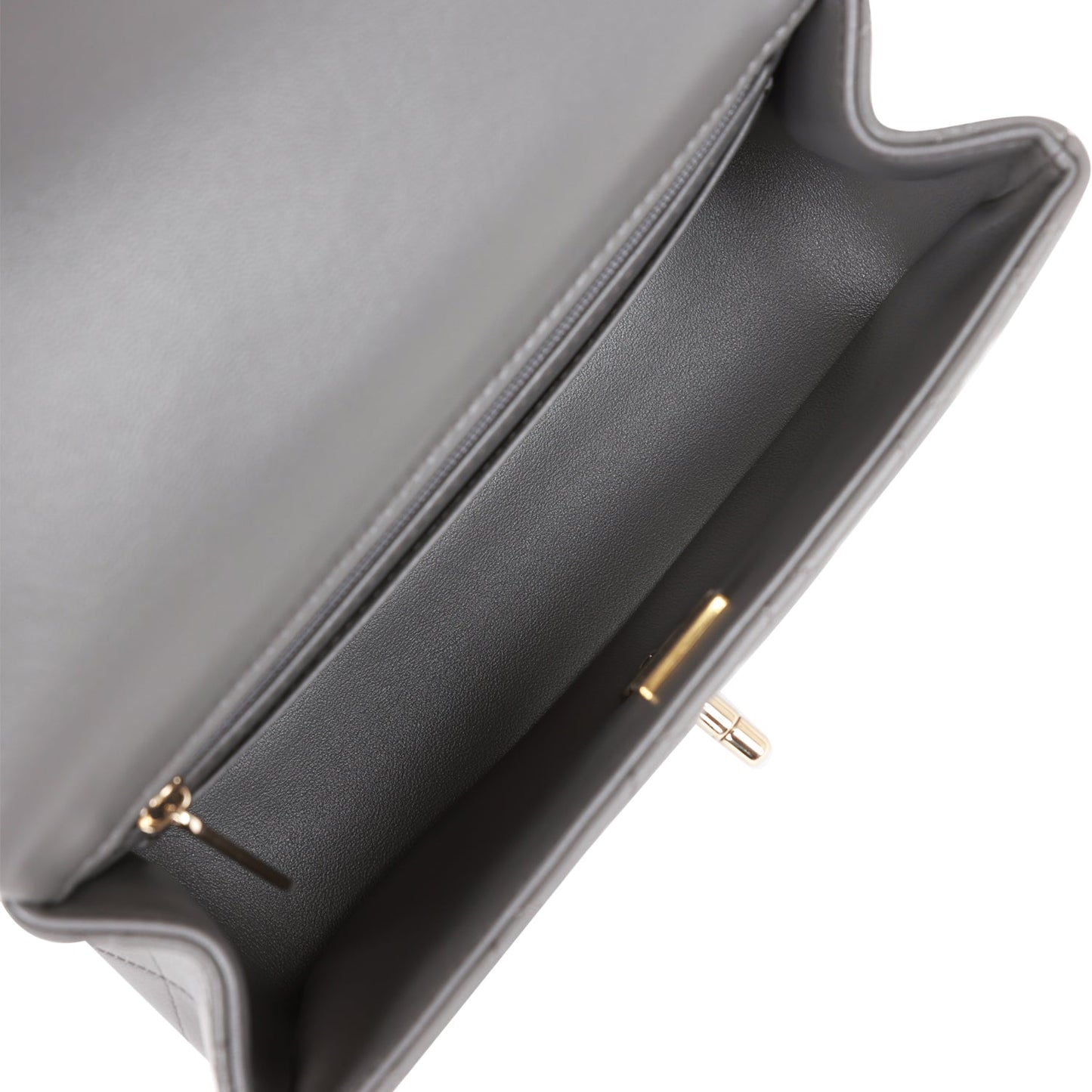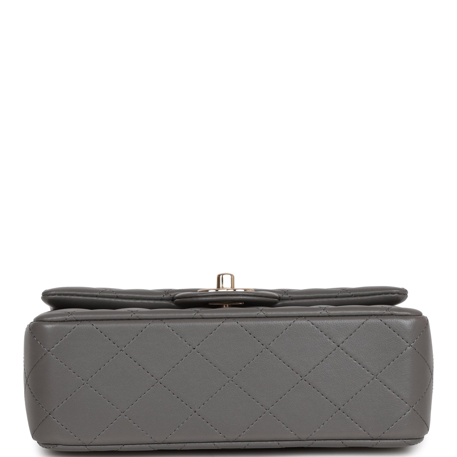 Chanel Mini Rectangular Flap Bag with Top Handle Dark Grey Lambskin Light Gold Hardware