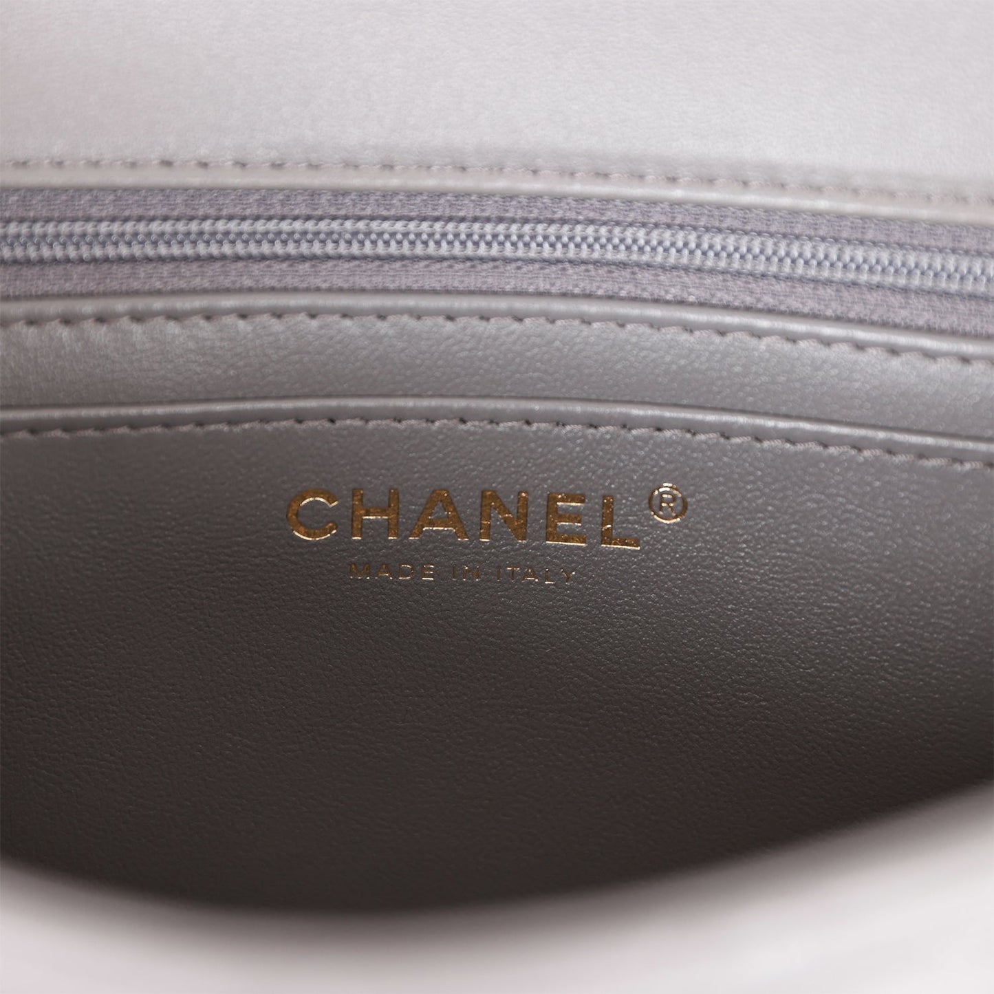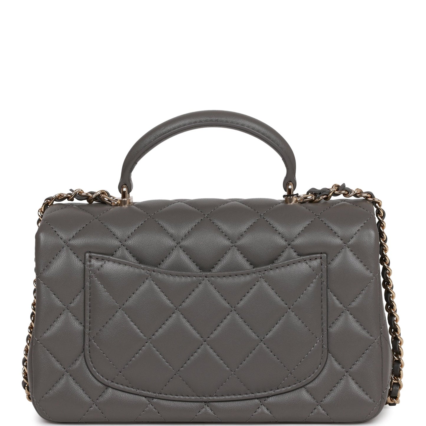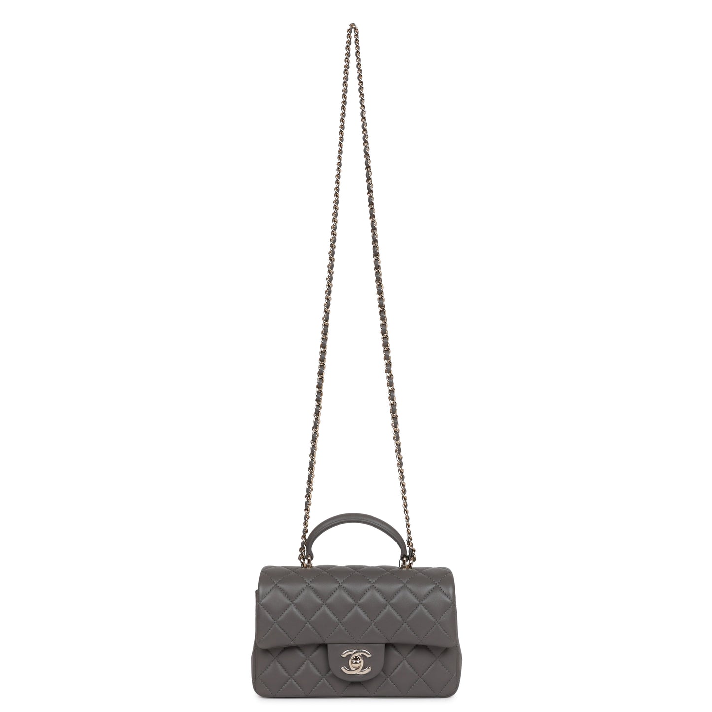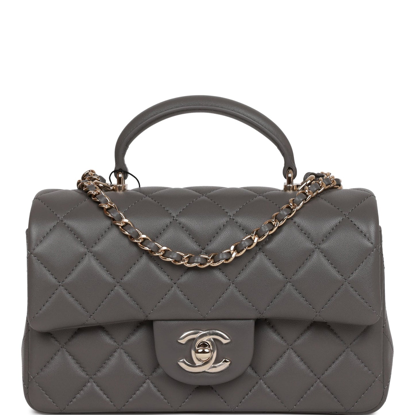 Chanel Mini Rectangular Flap Bag with Top Handle Dark Grey Lambskin Light Gold Hardware