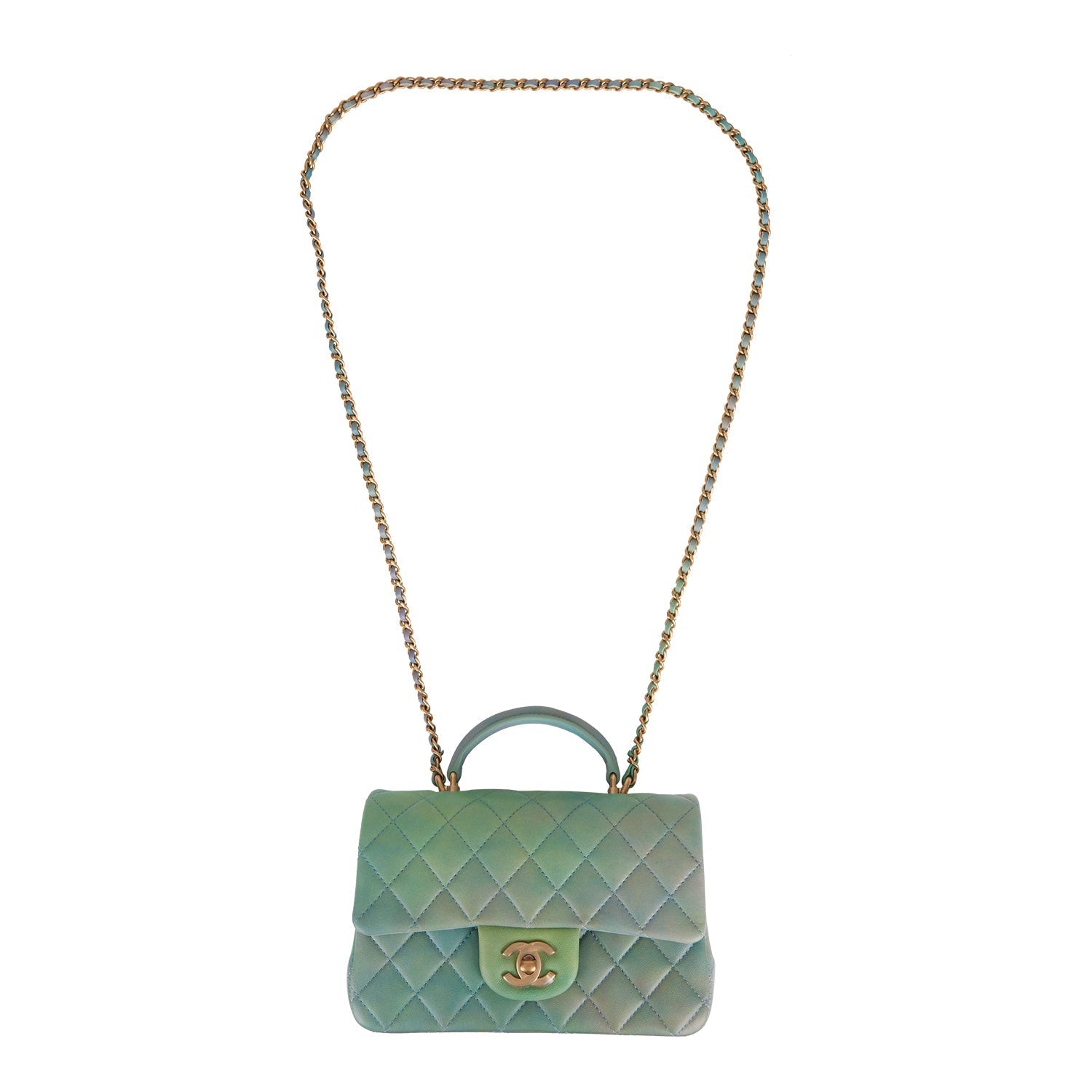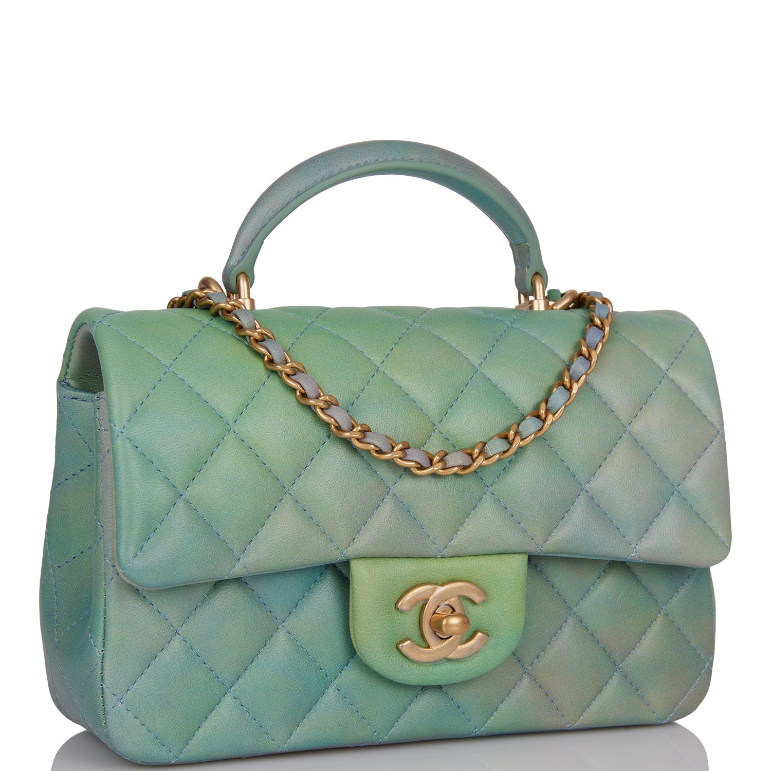 Chanel Mini Rectangular Flap Bag with Top Handle Green Ombre Lambskin Antique Gold Hardware