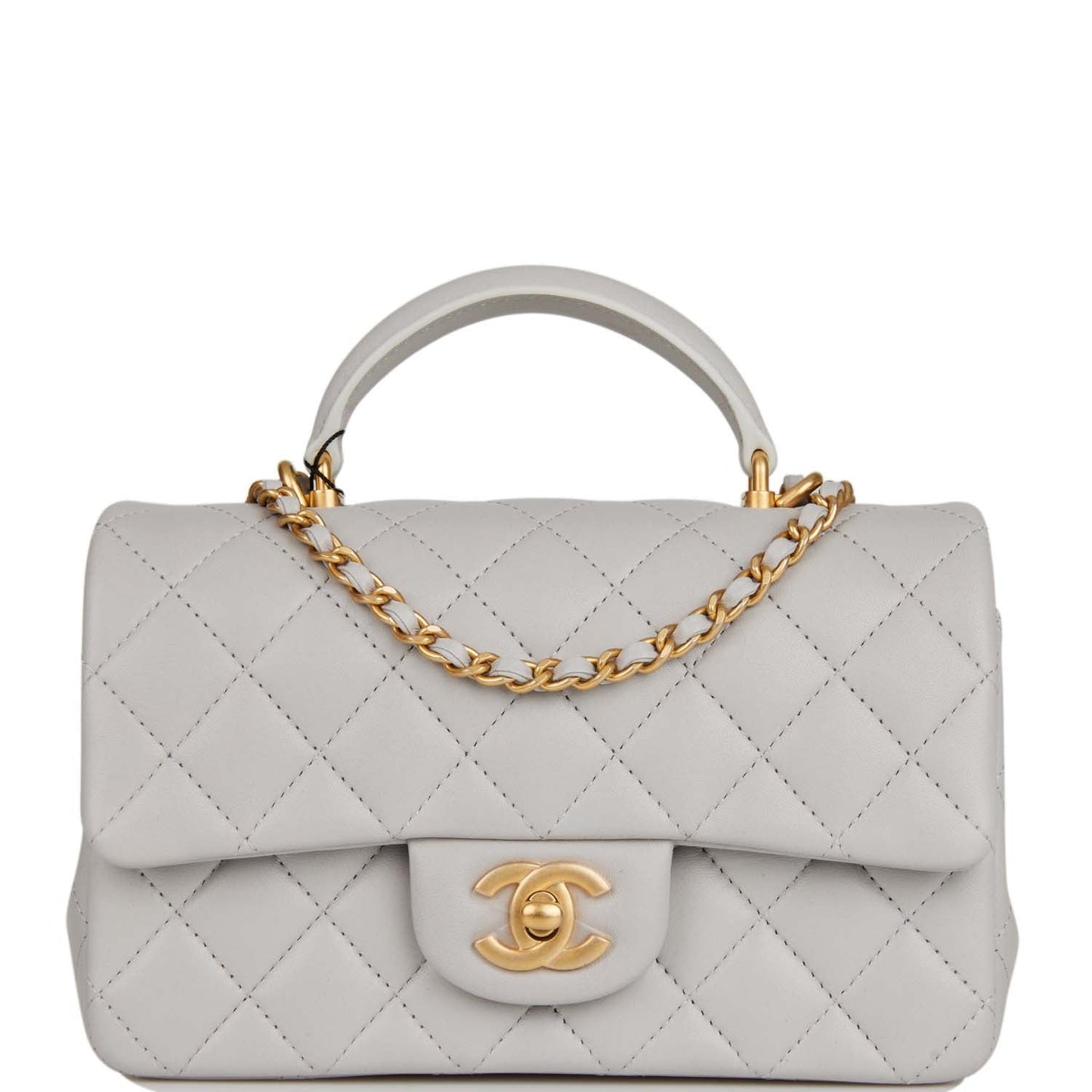 Chanel Mini Rectangular Flap Bag with Top Handle Grey Lambskin Antique Gold Hardware