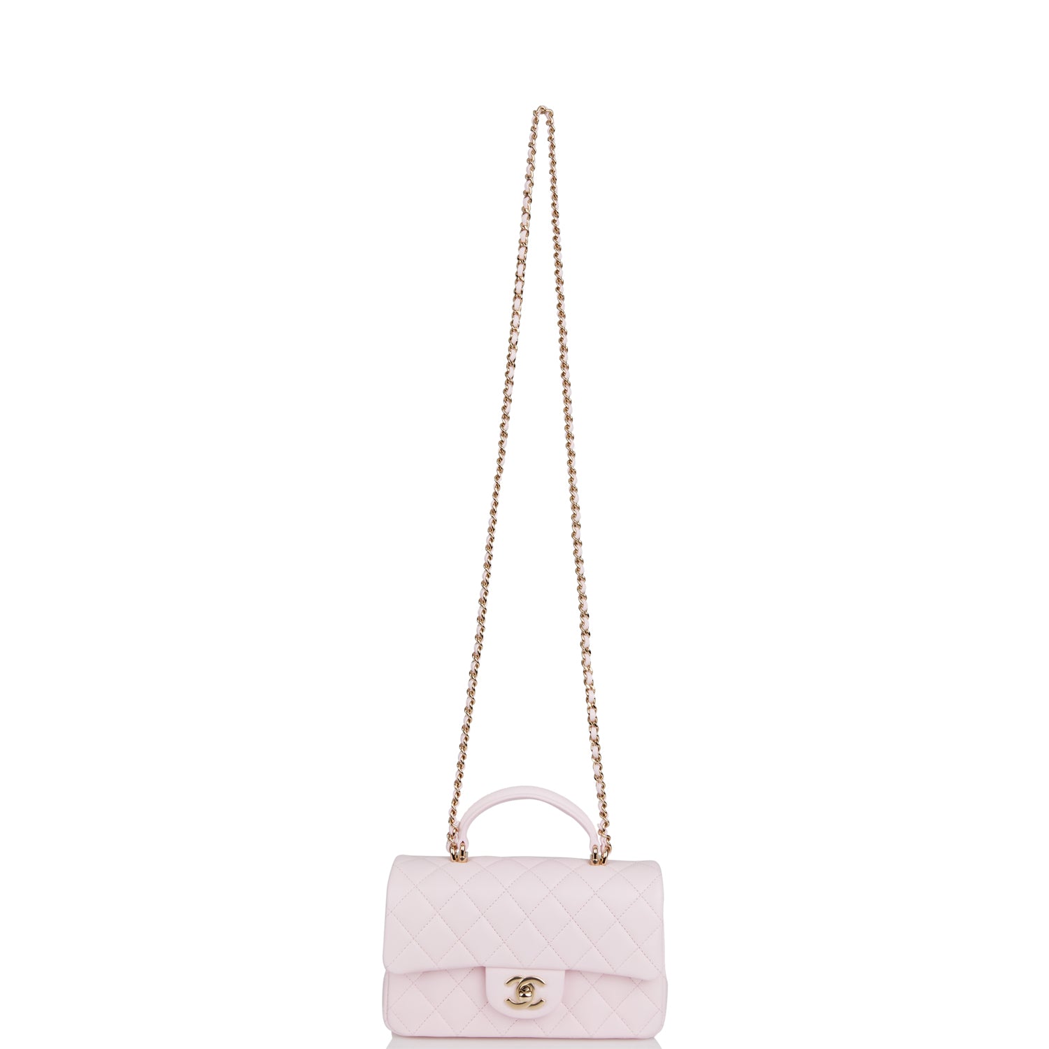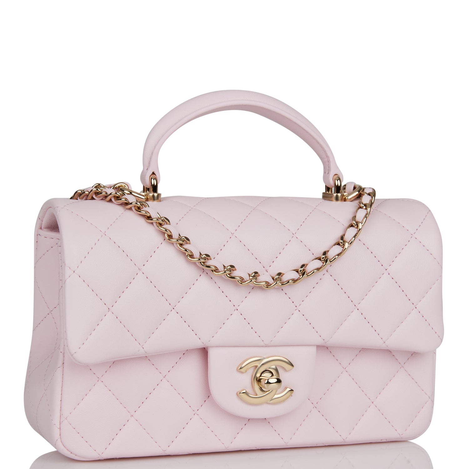 Chanel Mini Rectangular Flap Bag with Top Handle Light Pink Lambskin Light Gold Hardware