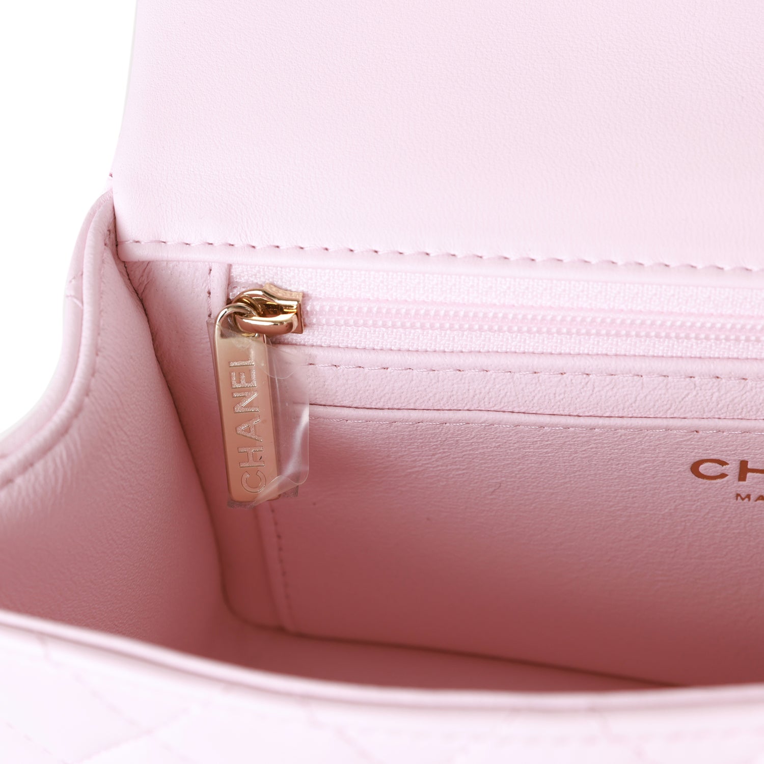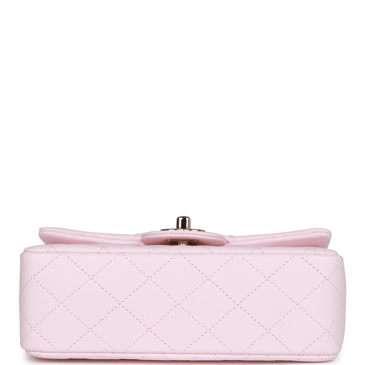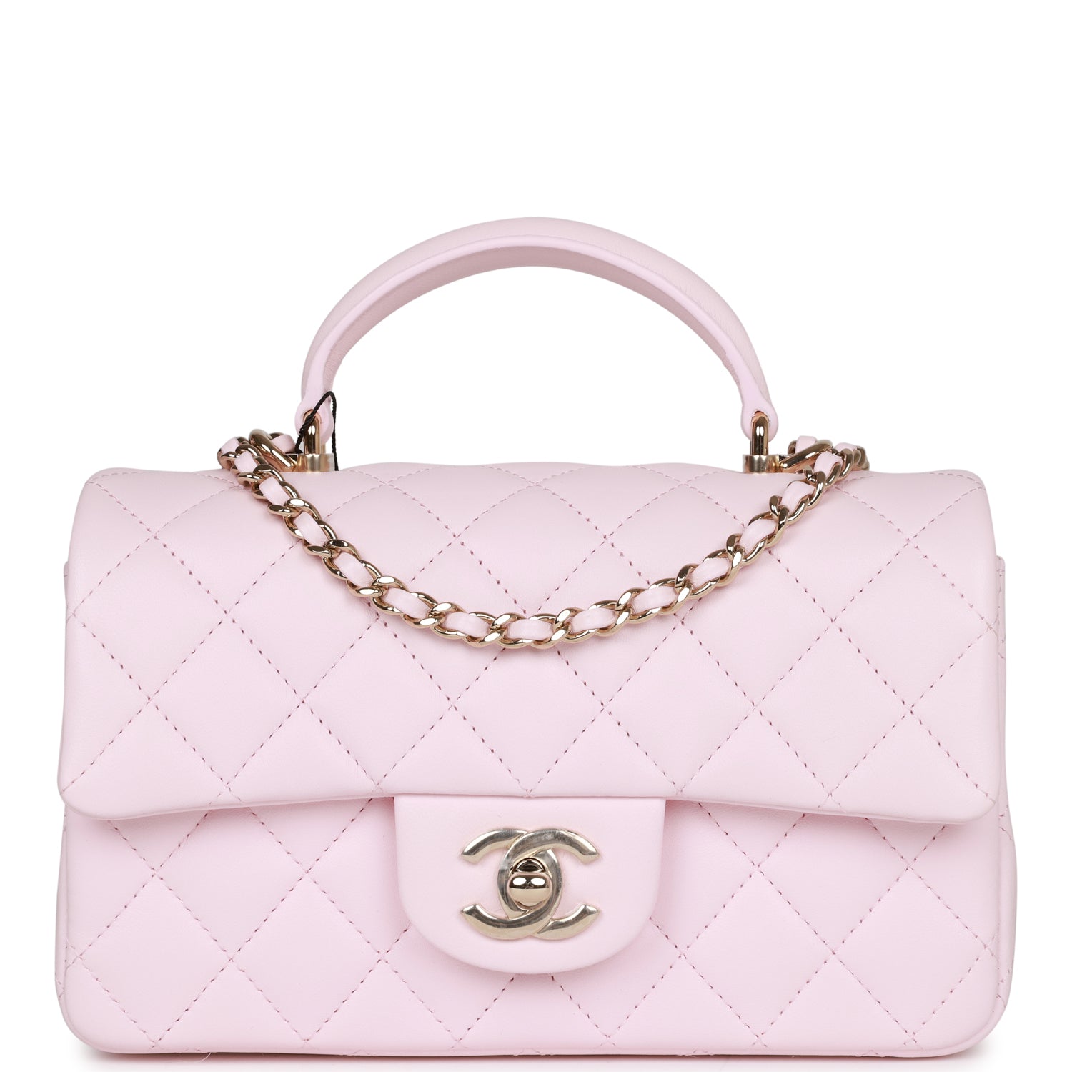 Chanel Mini Rectangular Flap Bag with Top Handle Light Pink Lambskin Light Gold Hardware