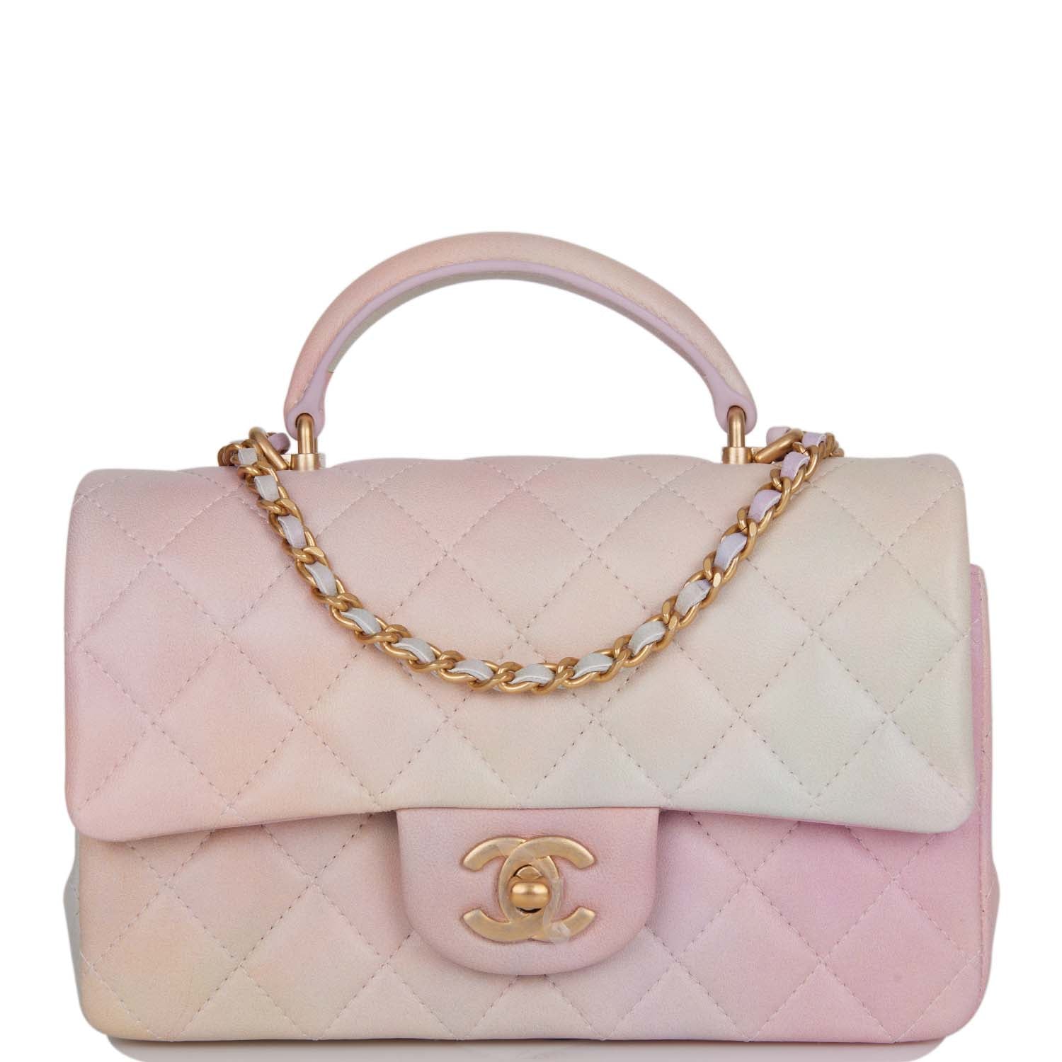 Chanel Mini Rectangular Flap Bag with Top Handle Light Pink Ombre Lambskin Antique Gold Hardware