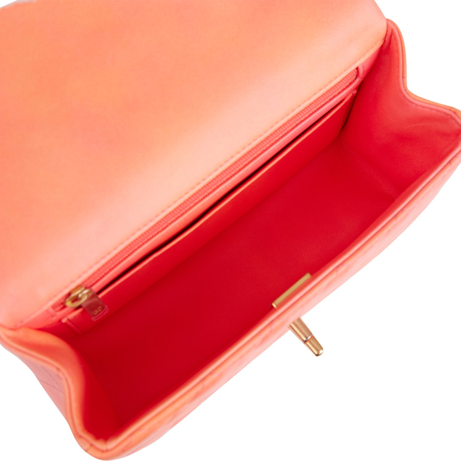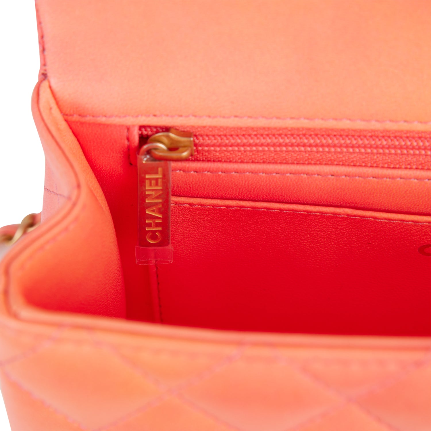 Chanel Mini Rectangular Flap Bag with Top Handle Orange Ombre Lambskin Antique Gold Hardware