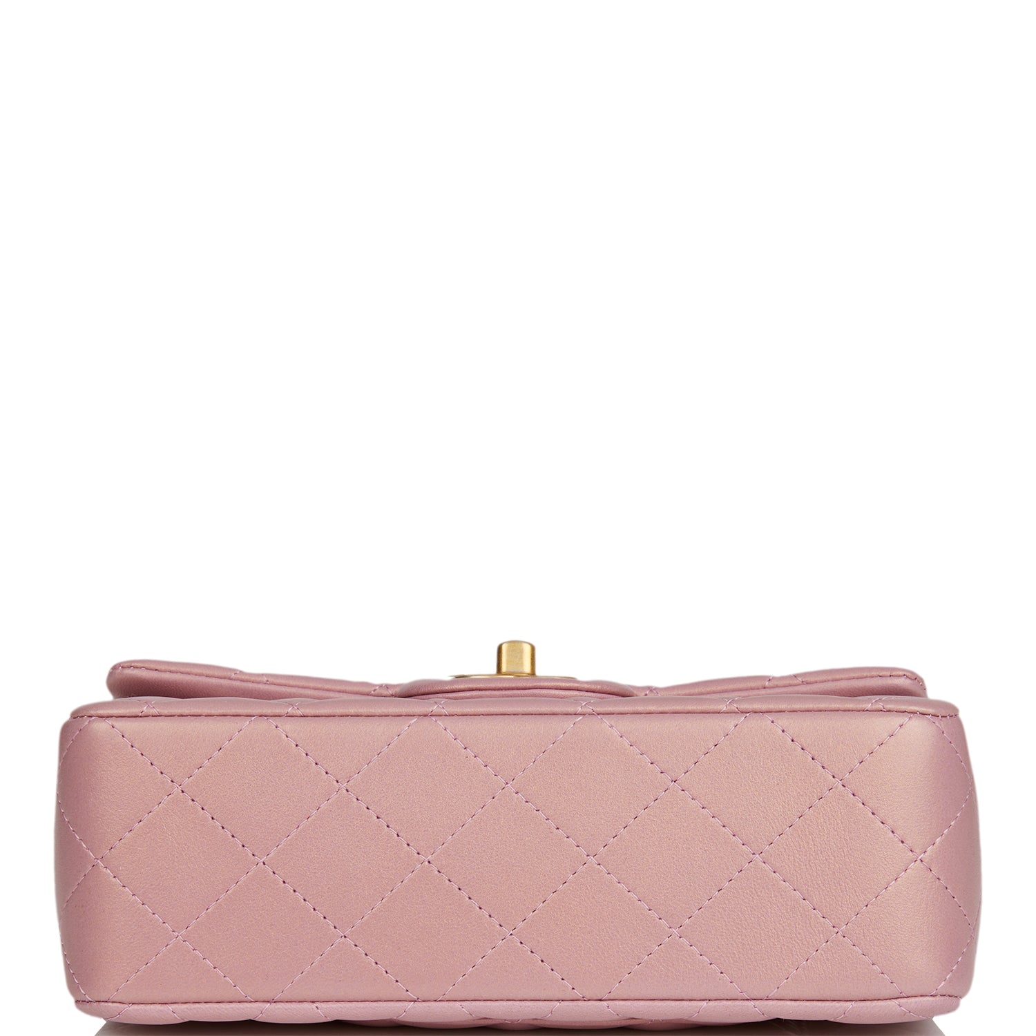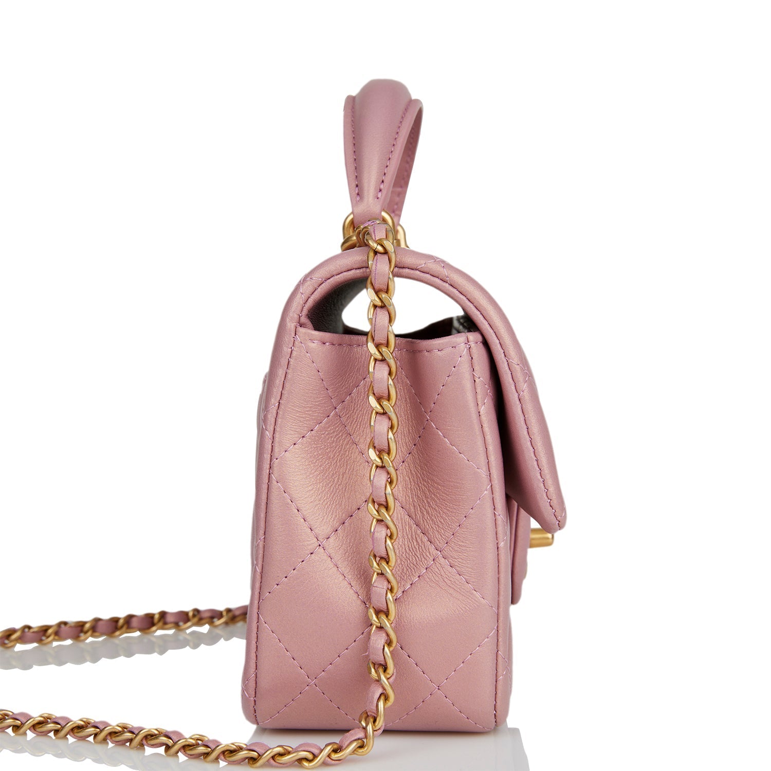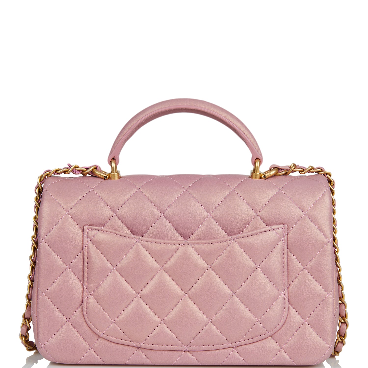 Chanel Mini Rectangular Flap Bag with Top Handle Pink Iridescent Lambskin Antique Gold Hardware