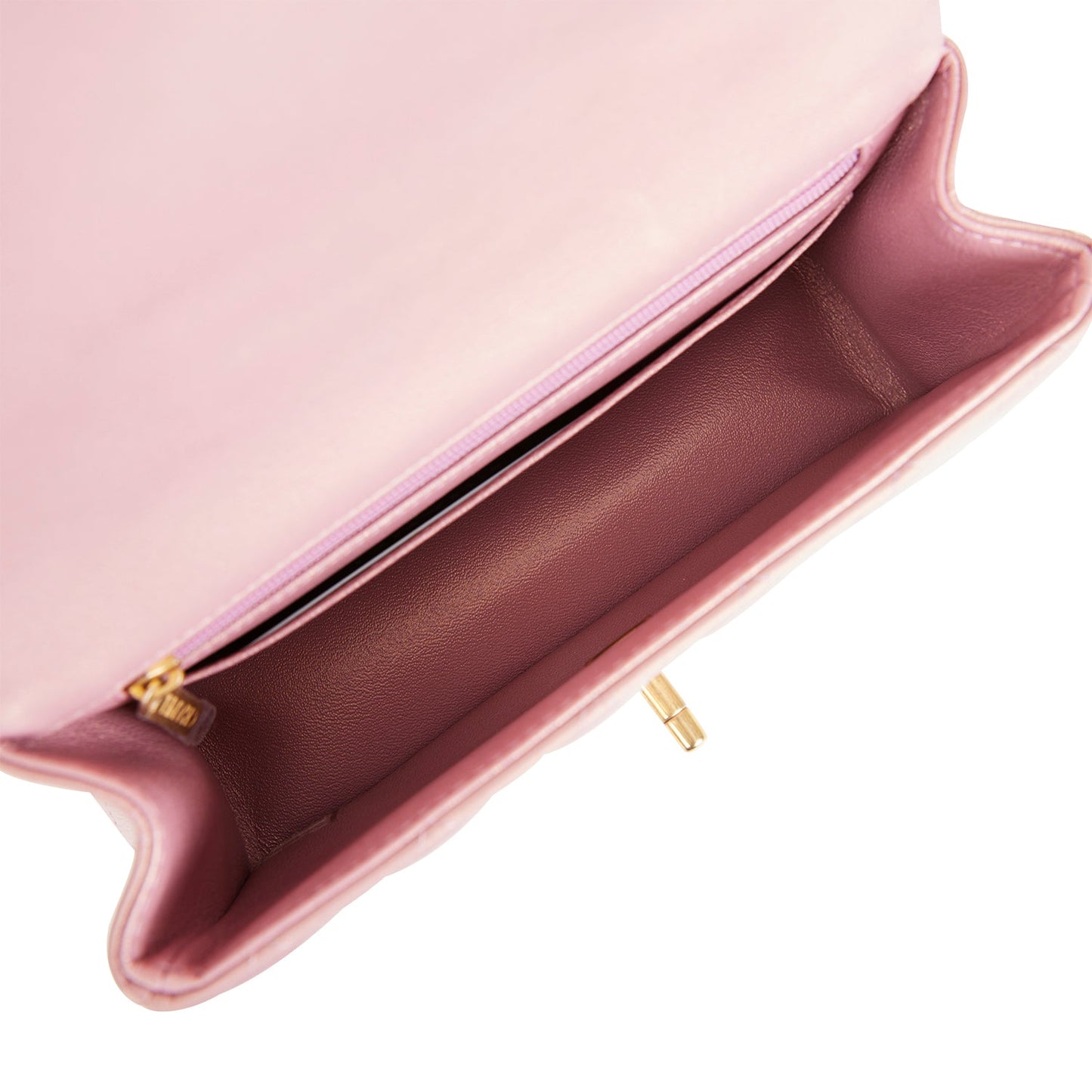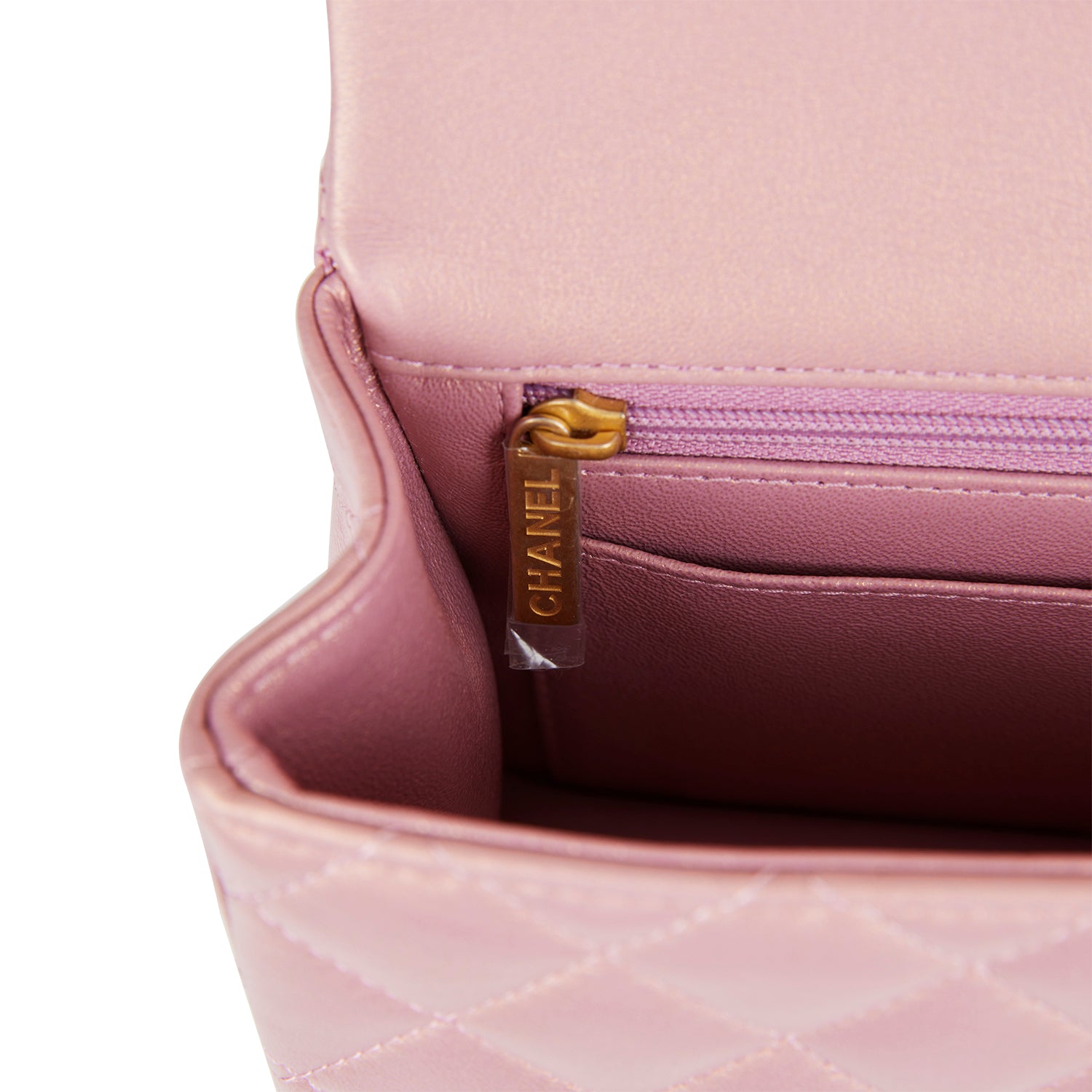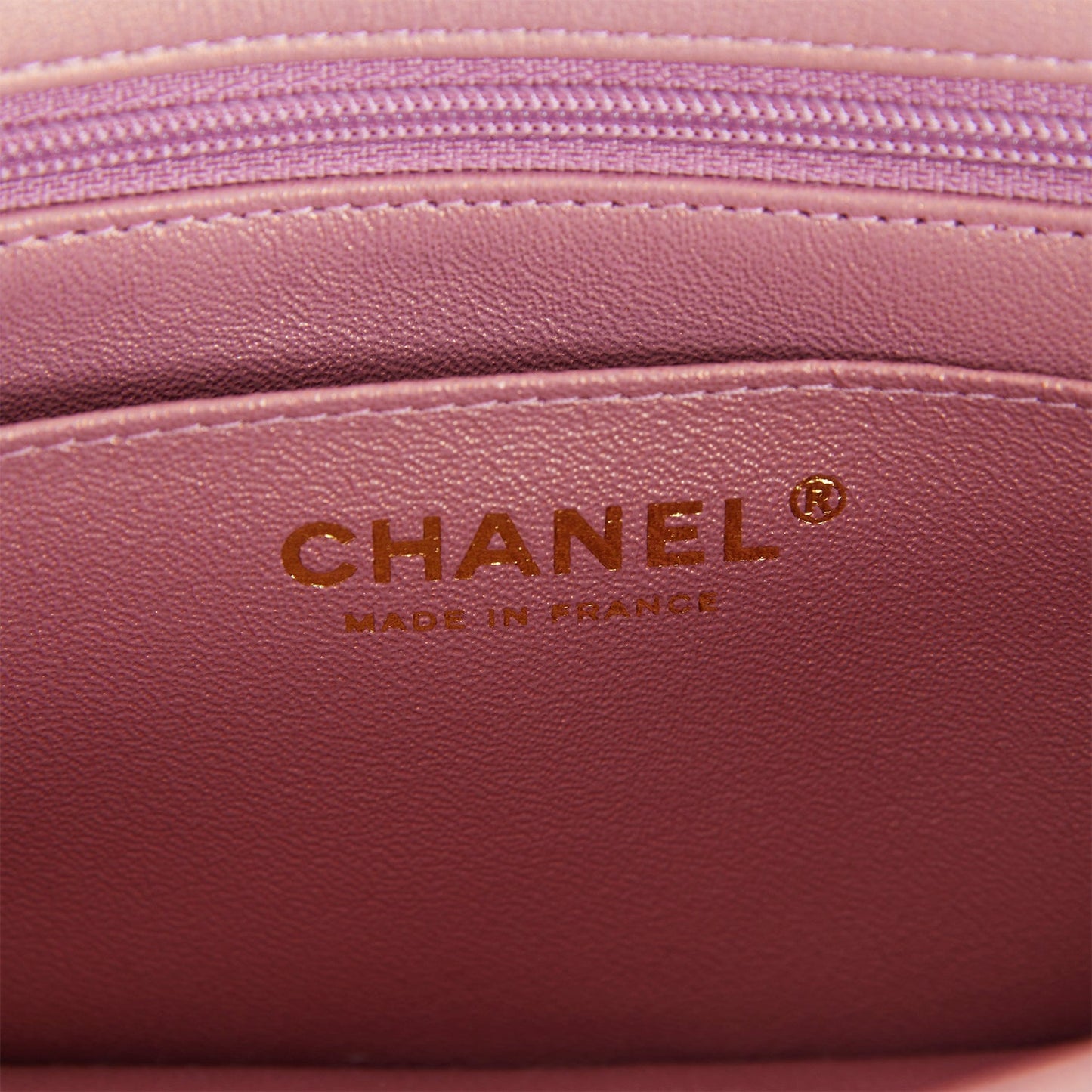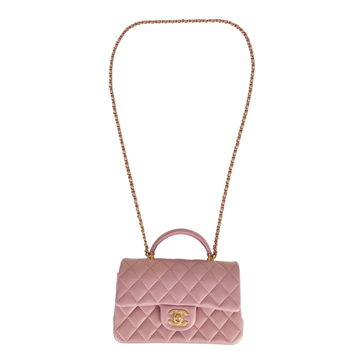 Chanel Mini Rectangular Flap Bag with Top Handle Pink Iridescent Lambskin Antique Gold Hardware