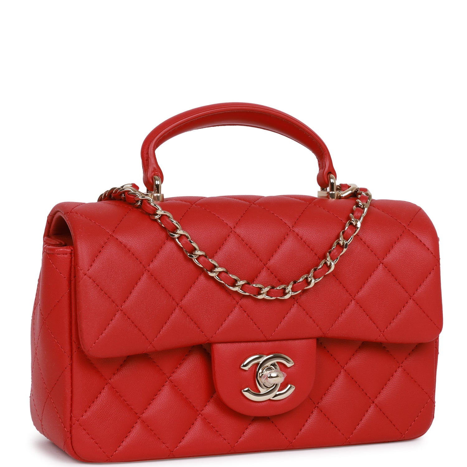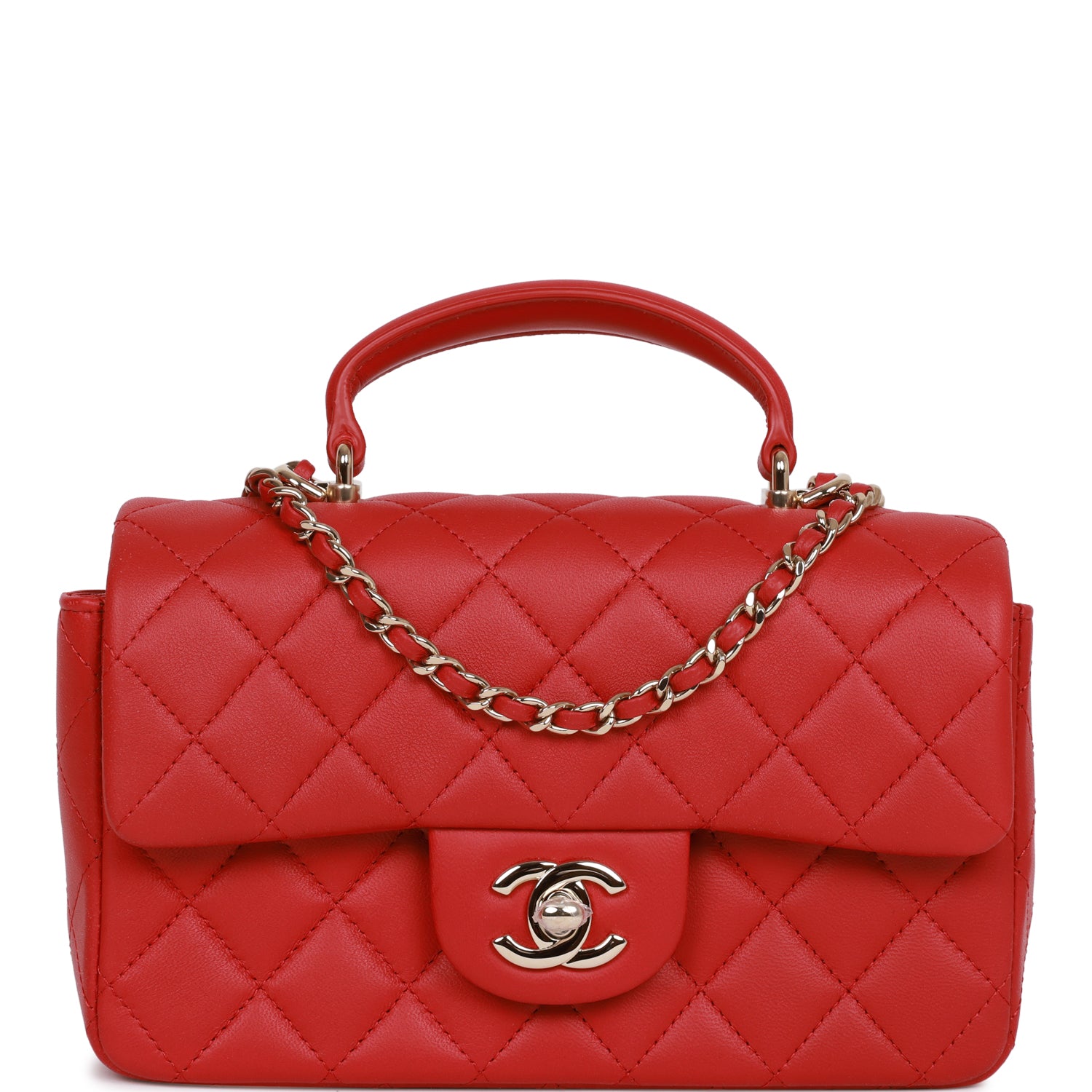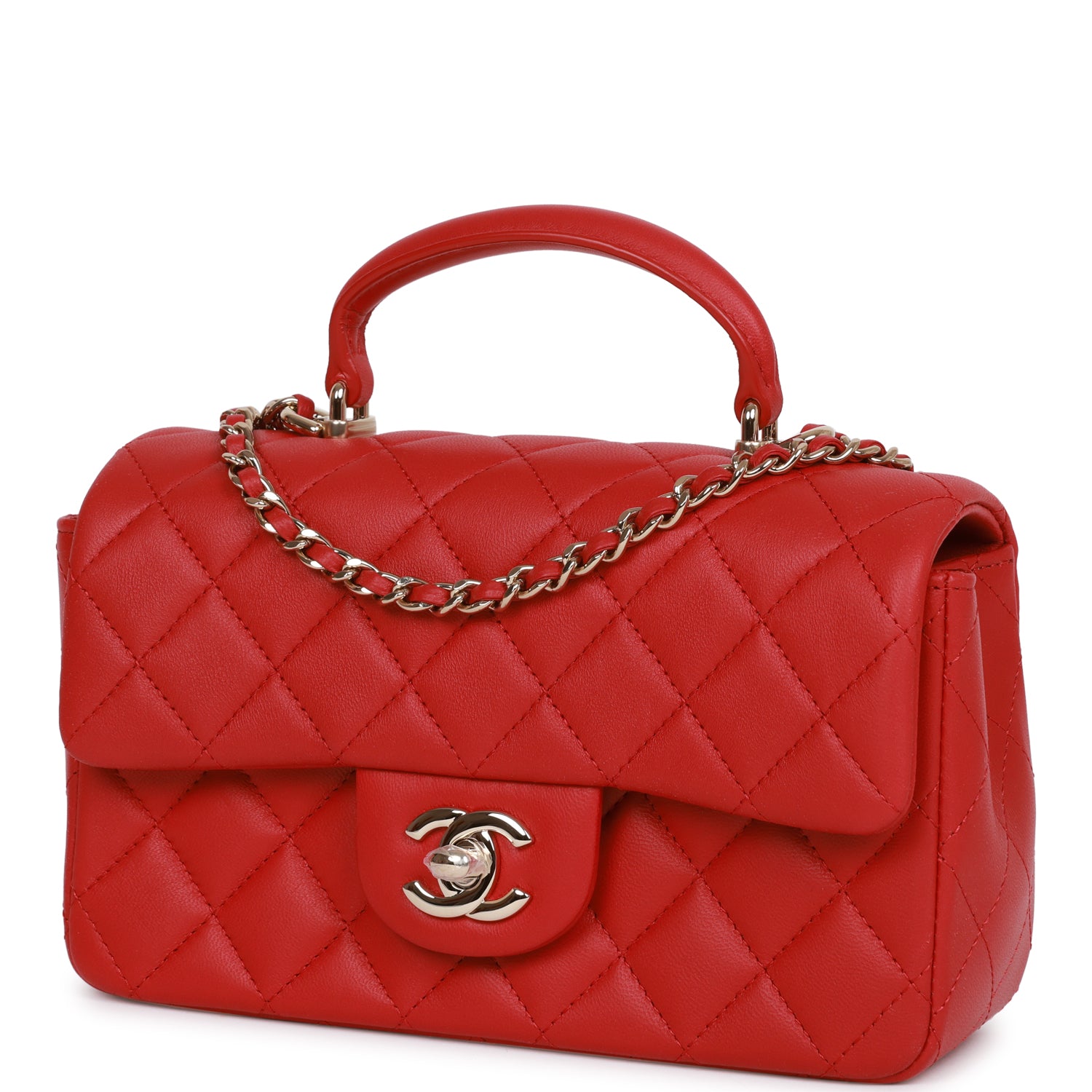 Chanel Mini Rectangular Flap Bag with Top Handle Red Lambskin Light Gold Hardware