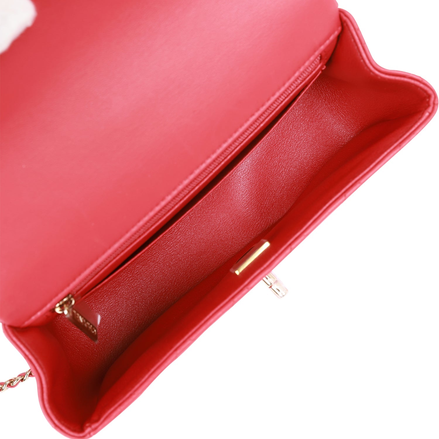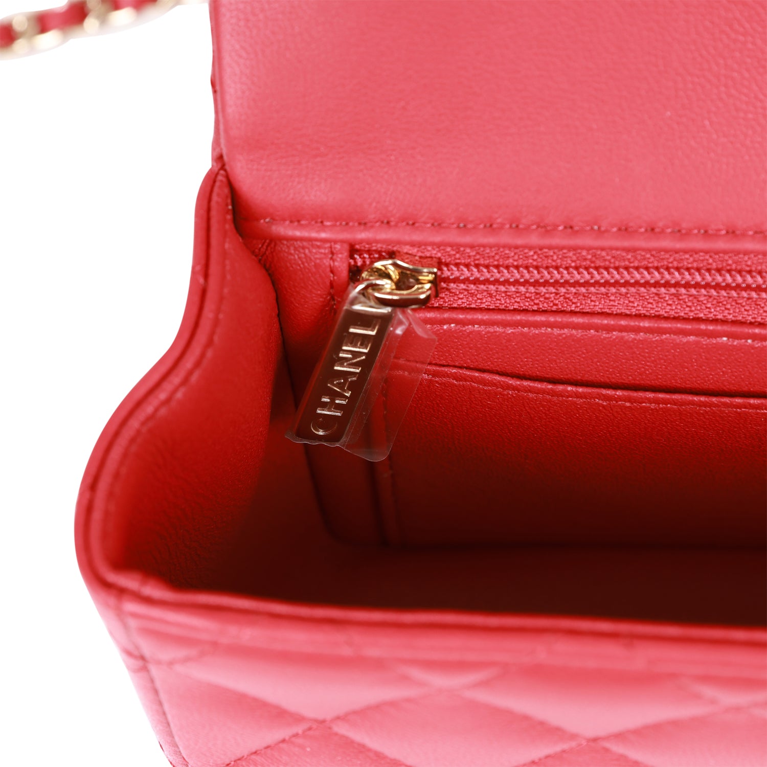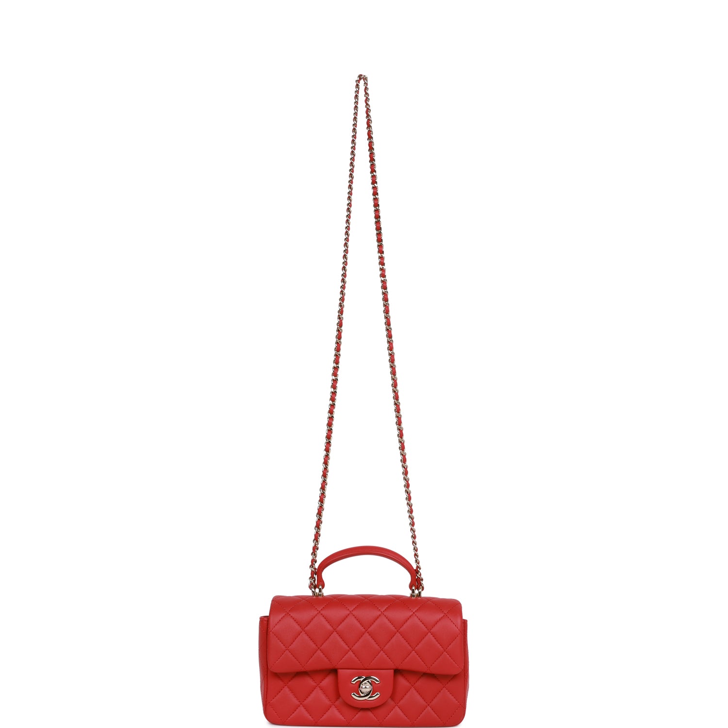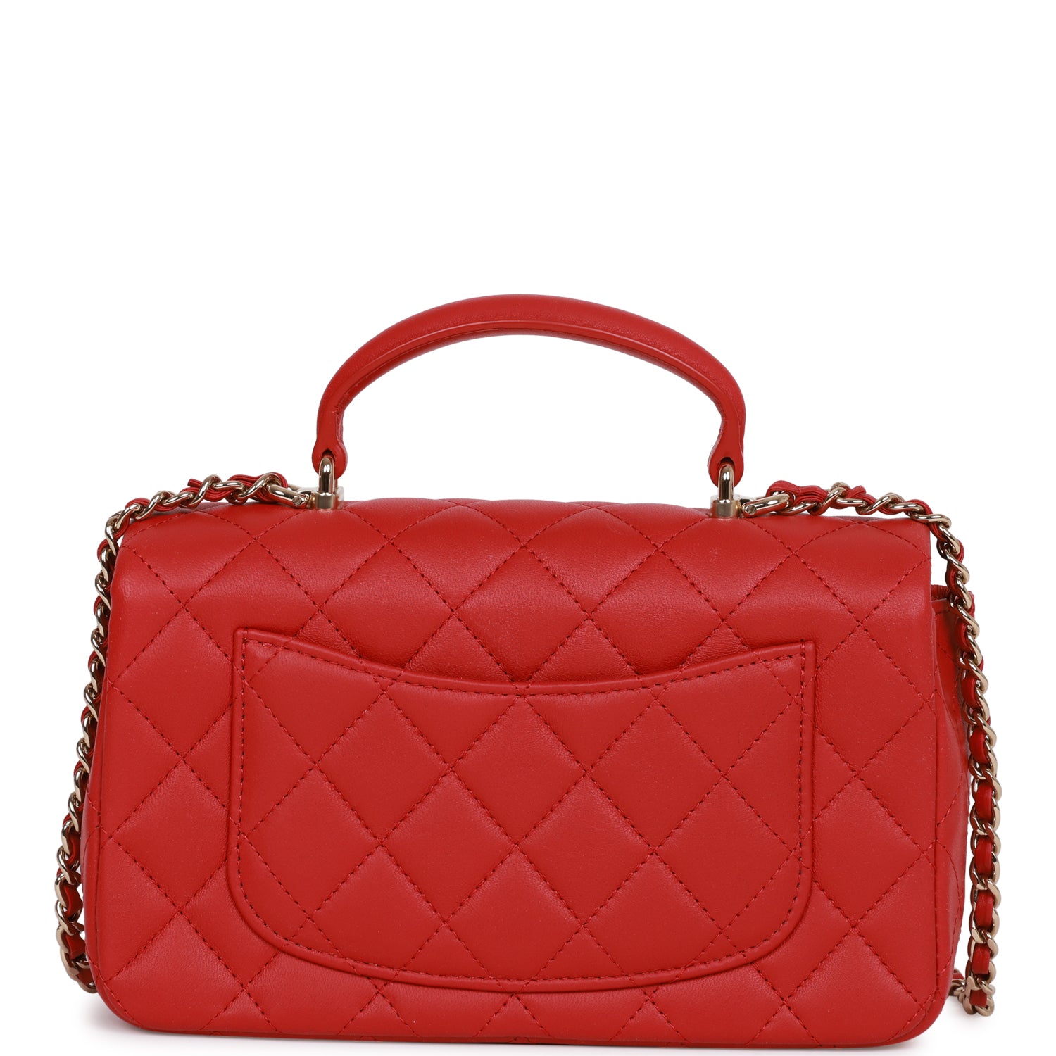 Chanel Mini Rectangular Flap Bag with Top Handle Red Lambskin Light Gold Hardware