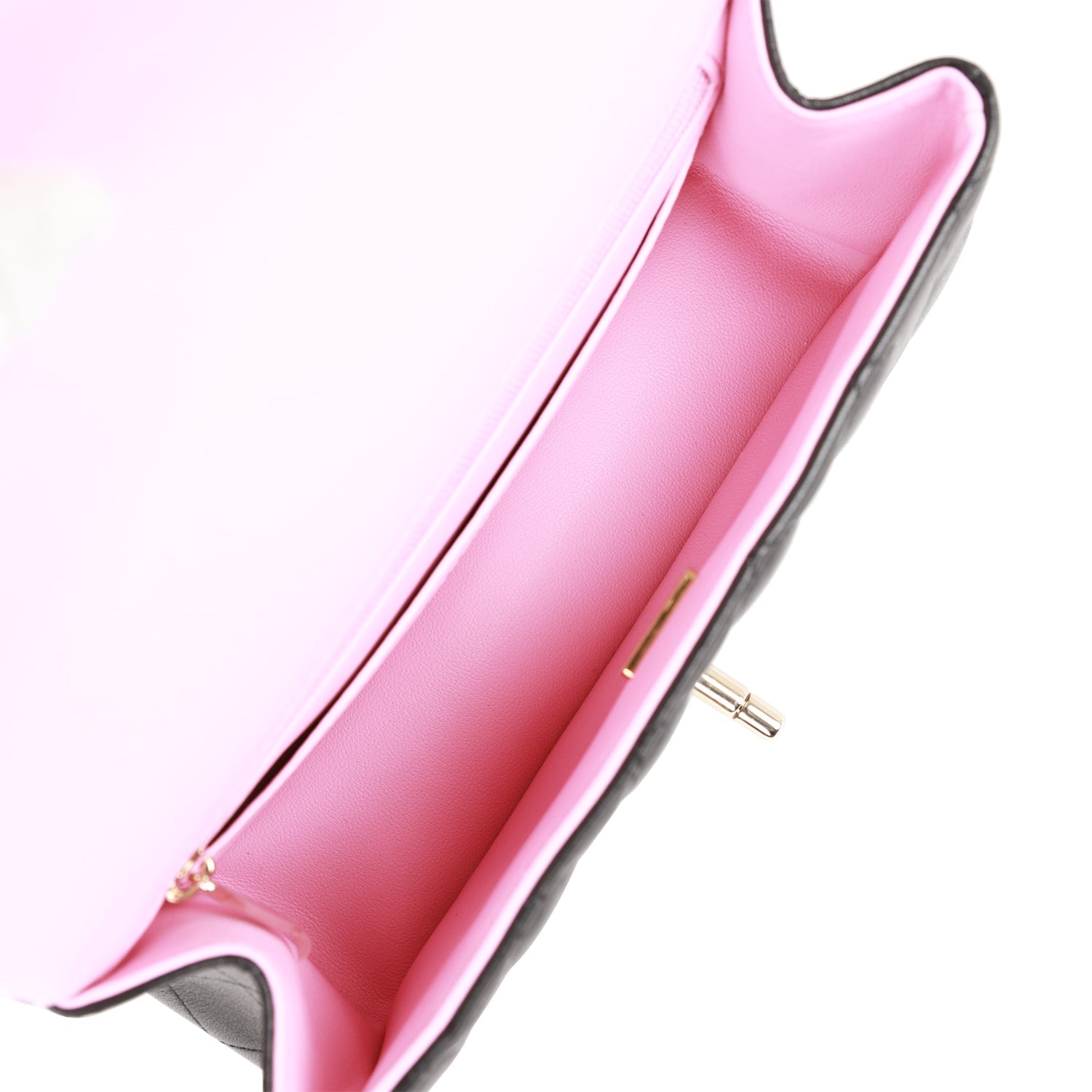 Chanel Mini Rectangular Flap with Top Handle Black and Pink Lambskin Light Gold Hardware