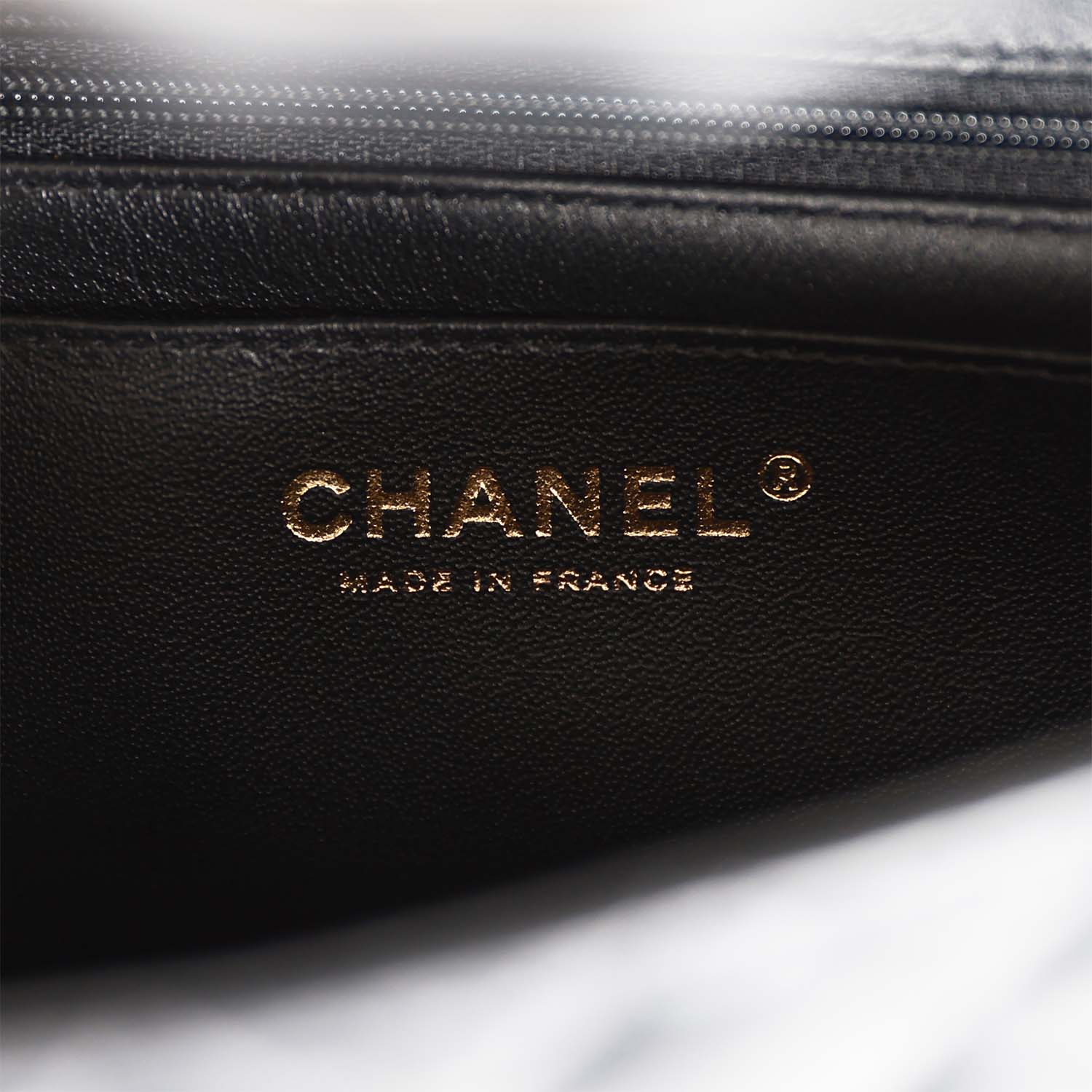 Chanel box, Chanel dustbag, carebook, ribbon, and retail UPC