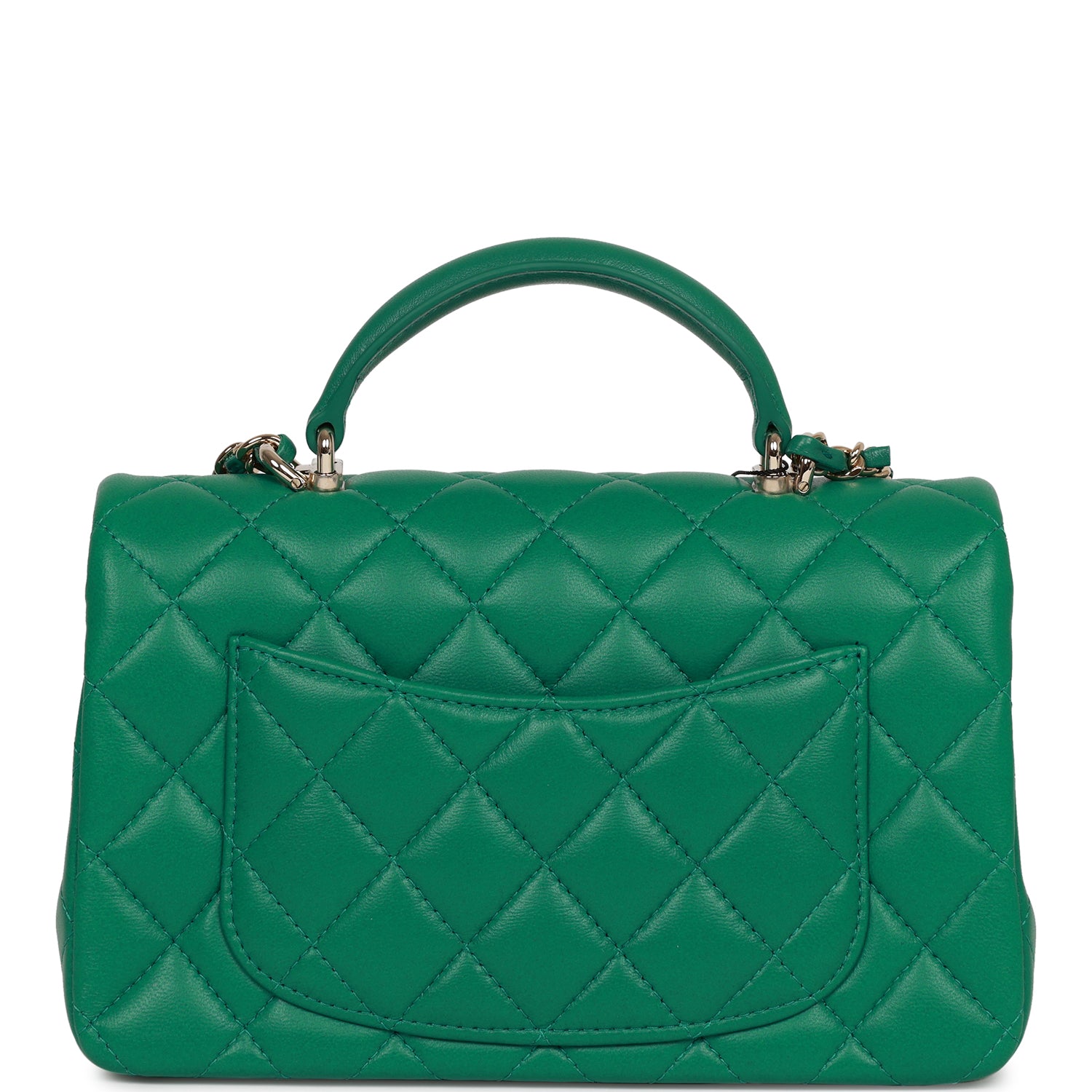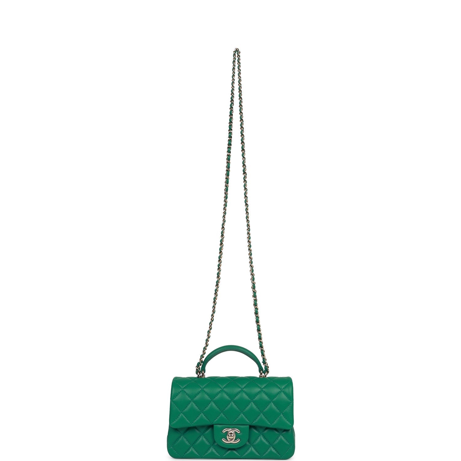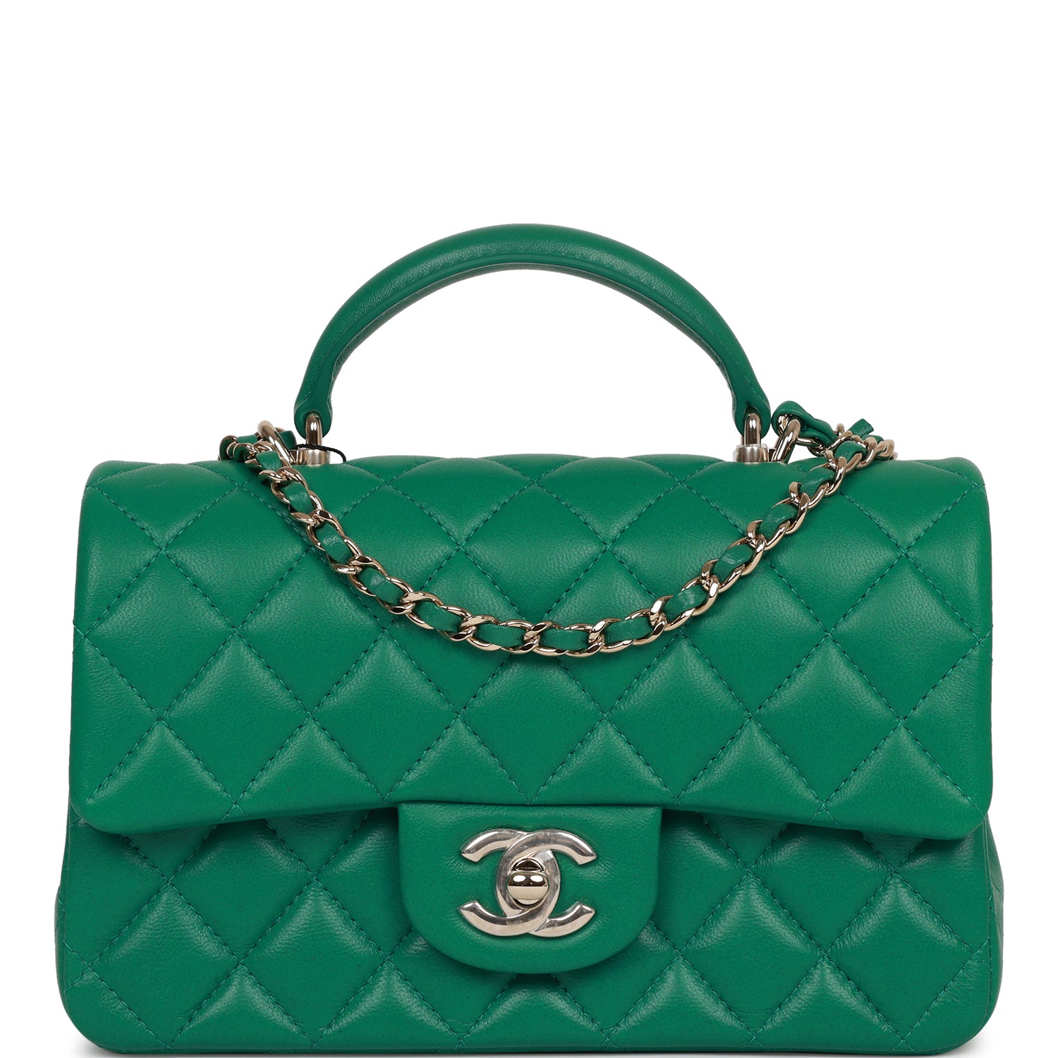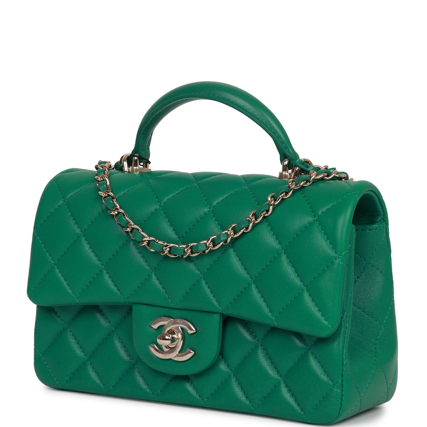 Chanel Mini Rectangular Flap with Top Handle Green Lambskin Light Gold Hardware