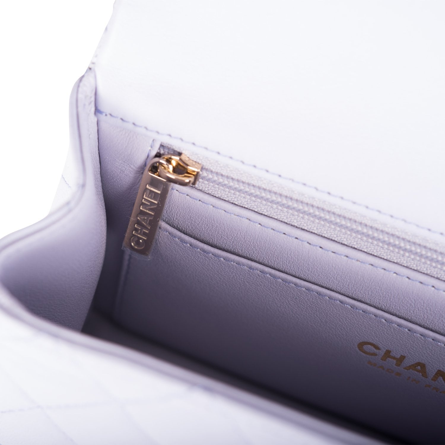 Chanel Mini Rectangular Flap with Top Handle Lavender Lambskin Light Gold Hardware