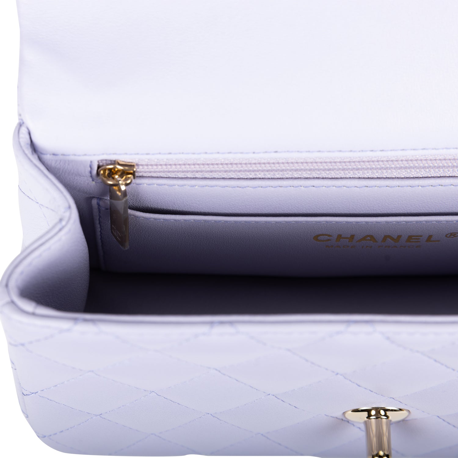 Chanel Mini Rectangular Flap with Top Handle Light Purple Lambskin Light Gold Hardware