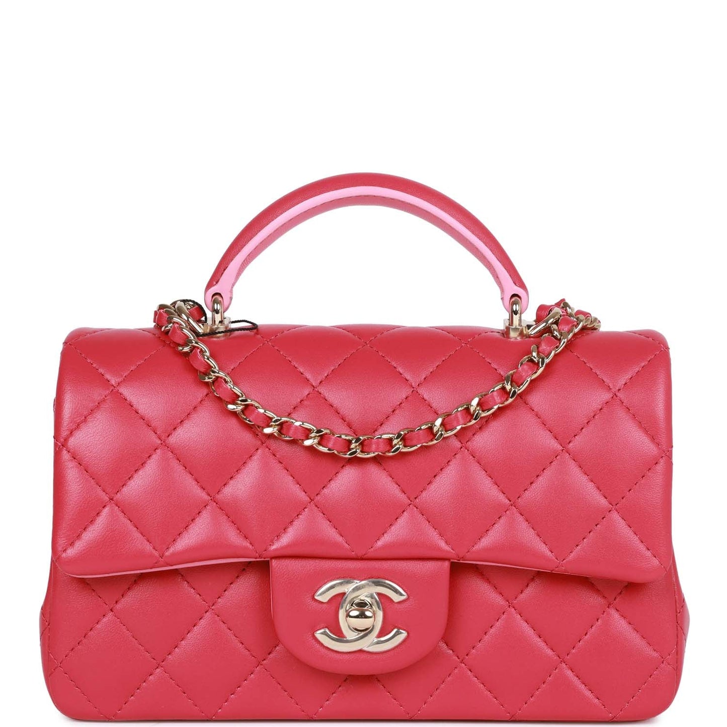 Chanel Mini Rectangular Flap with Top Handle Pink Lambskin Light Gold Hardware
