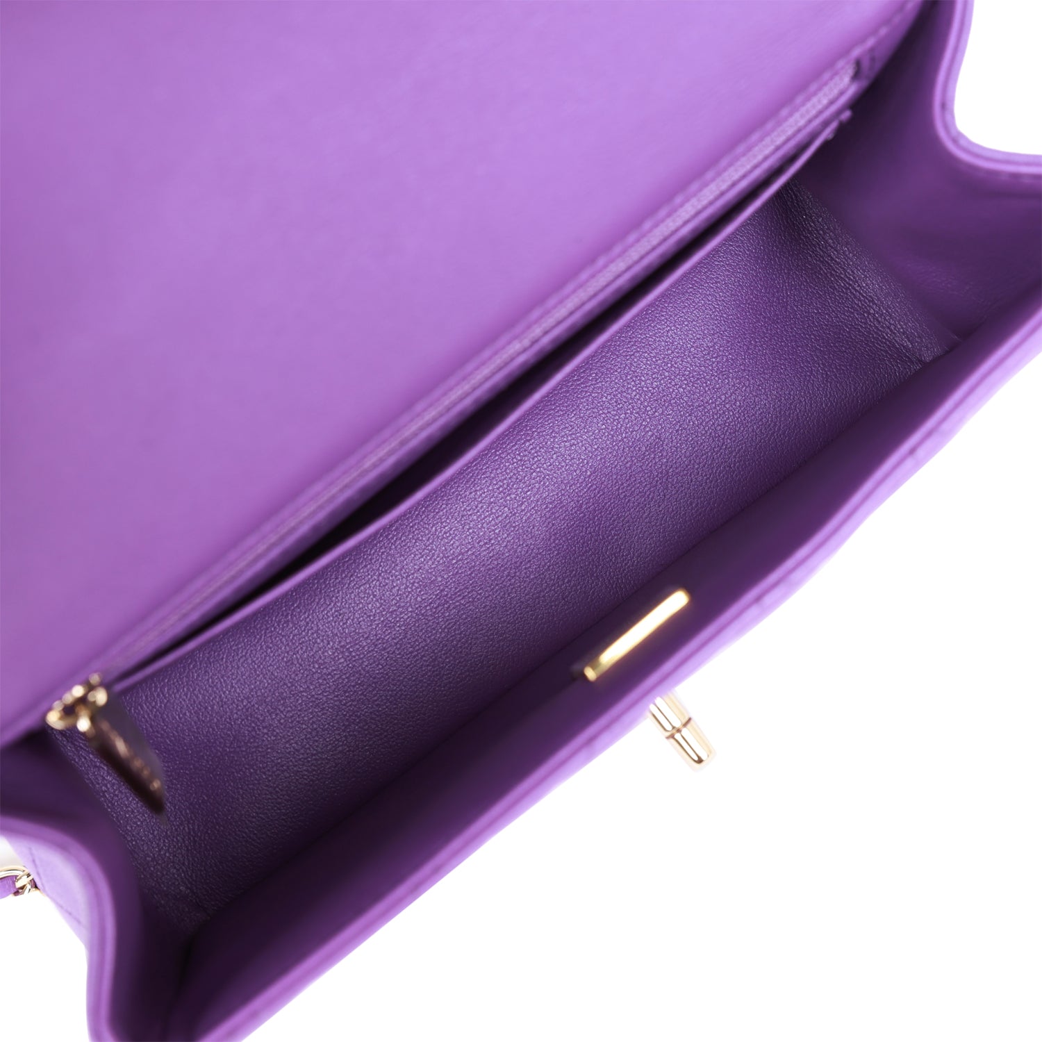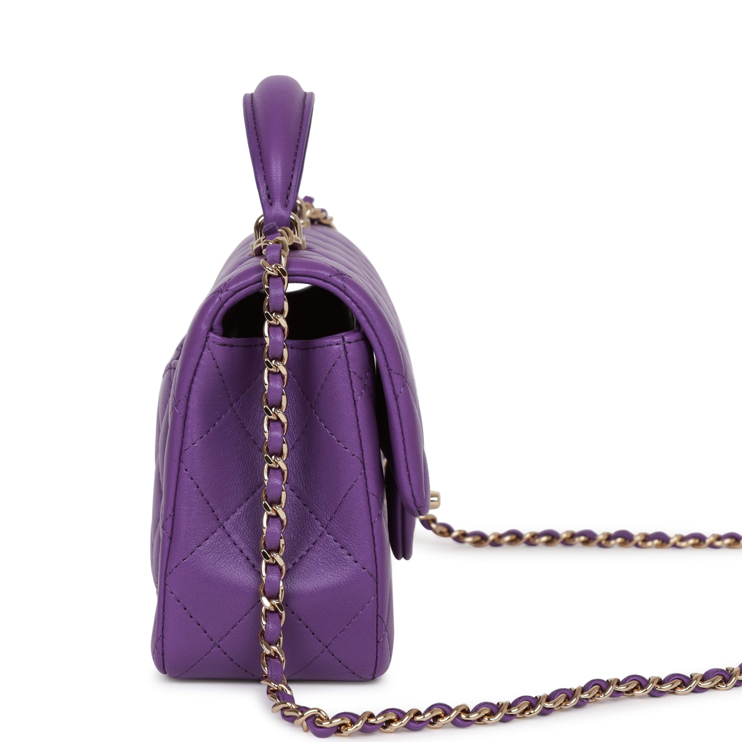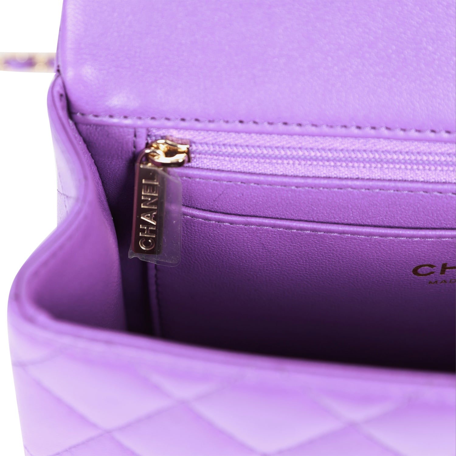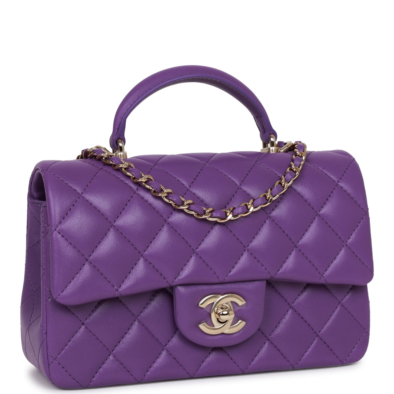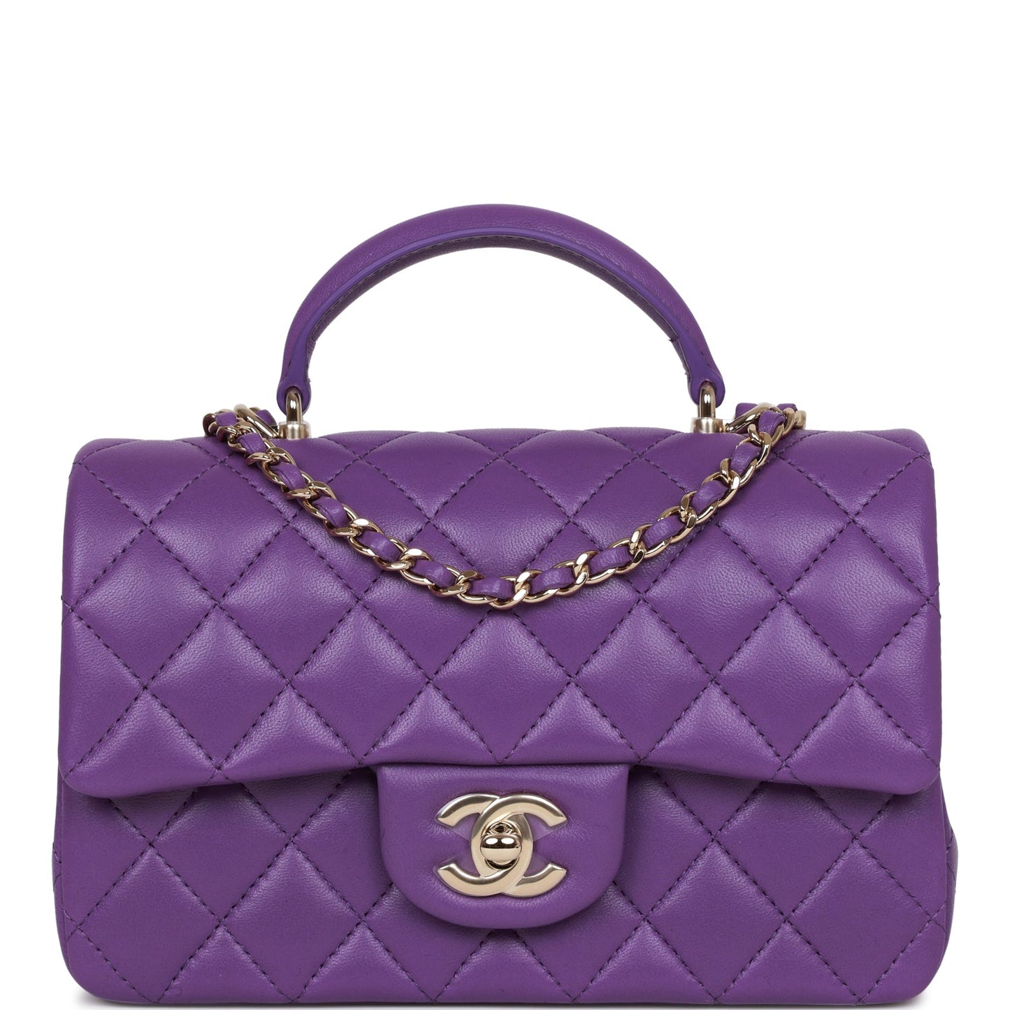 Chanel Mini Rectangular Flap with Top Handle Purple Lambskin Light Gold Hardware