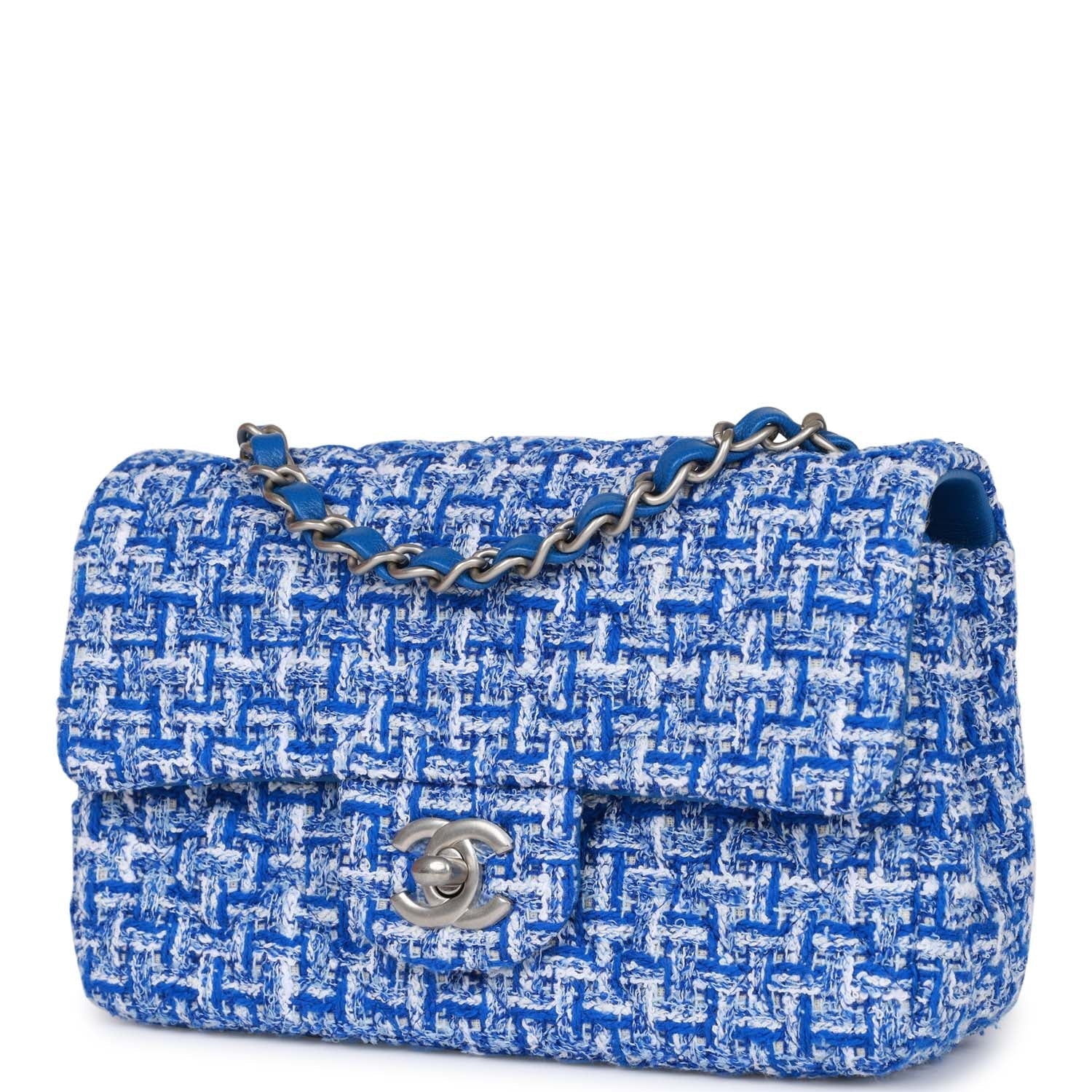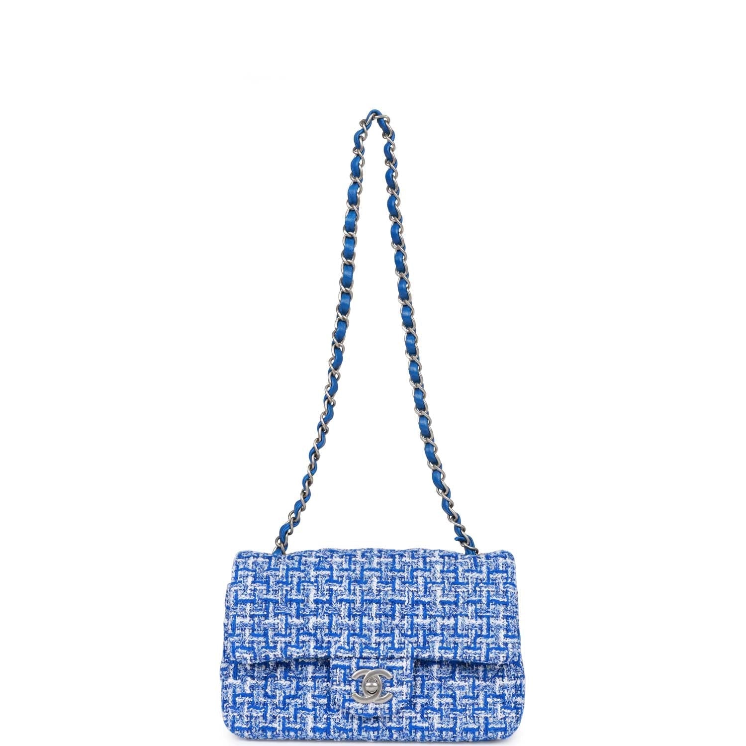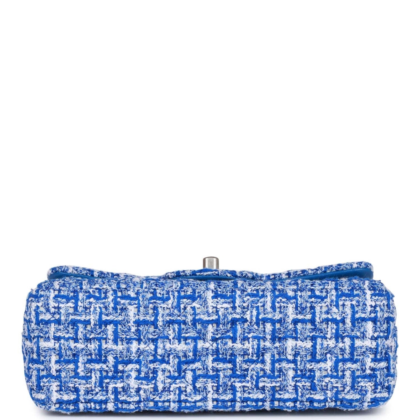 Chanel Mini Rectangular Flap Bag Blue Tweed Aged Silver Hardware
