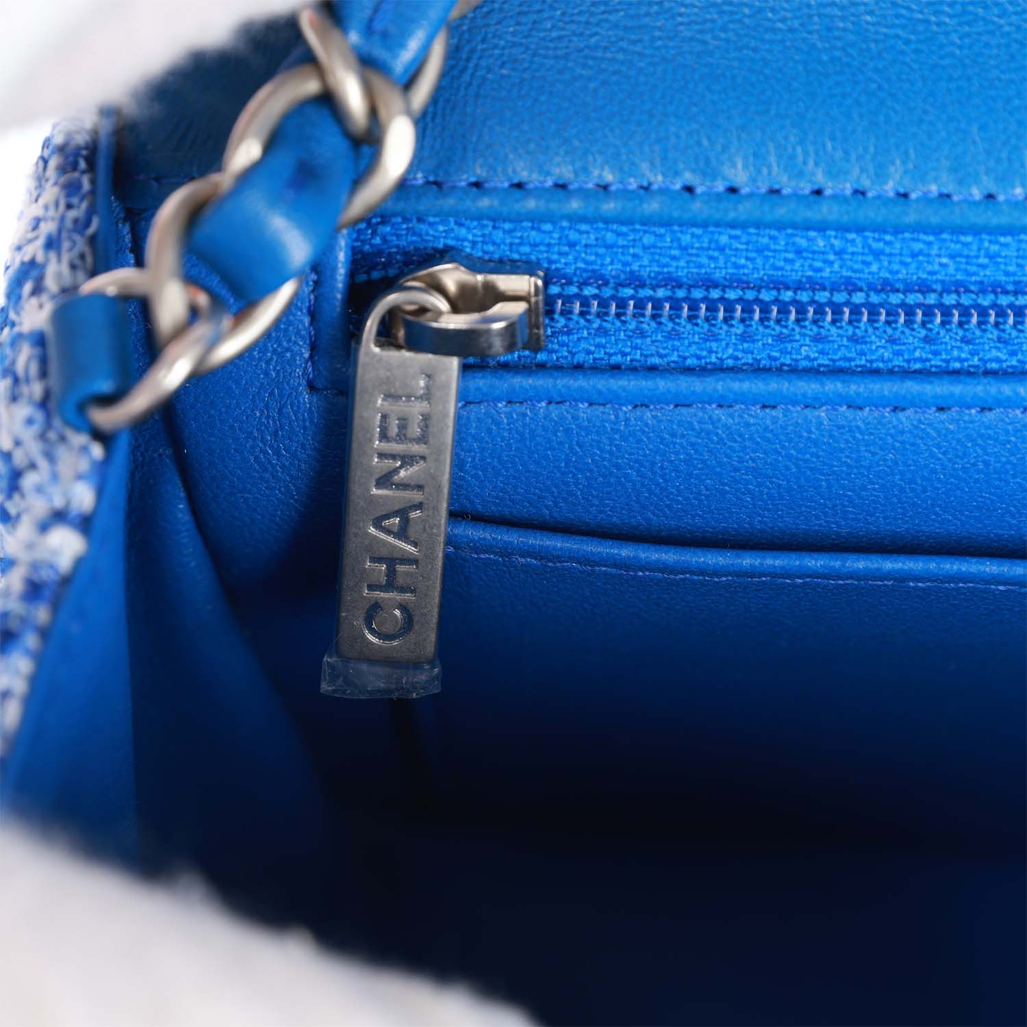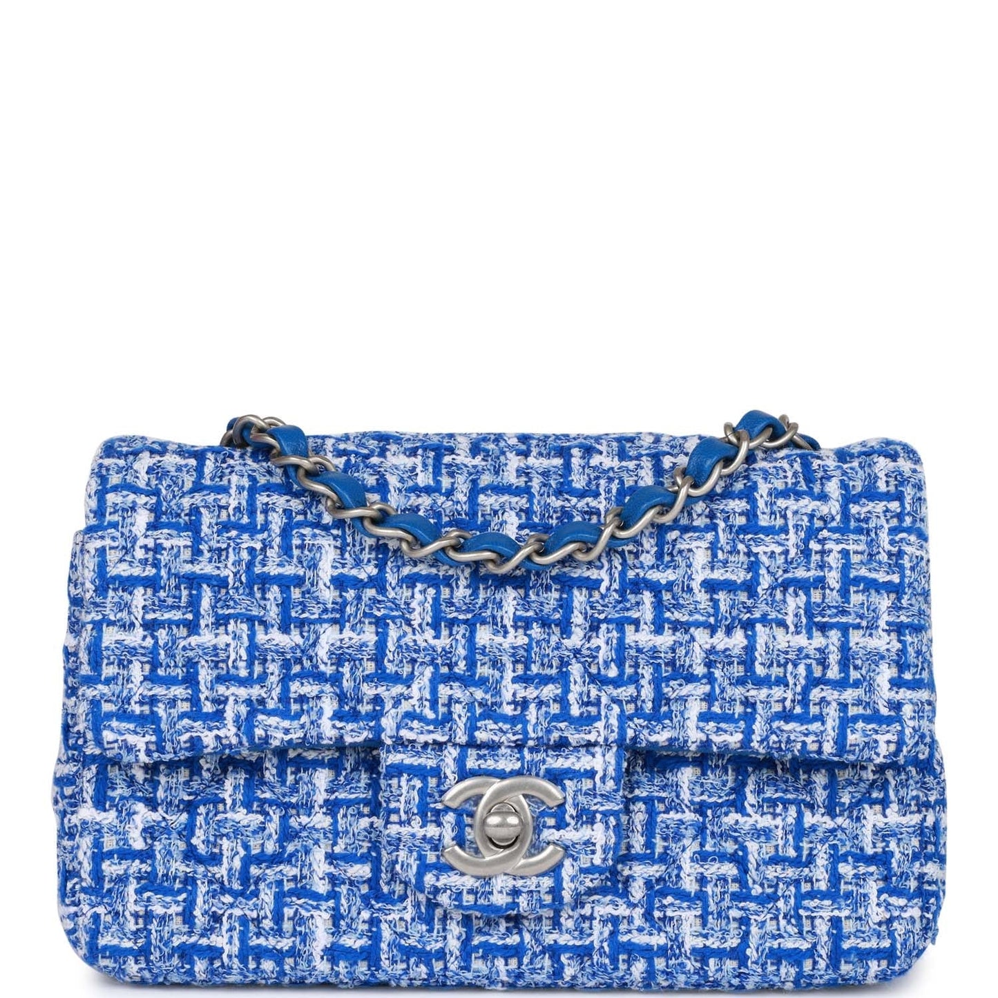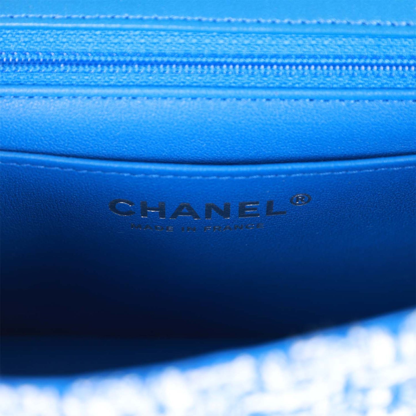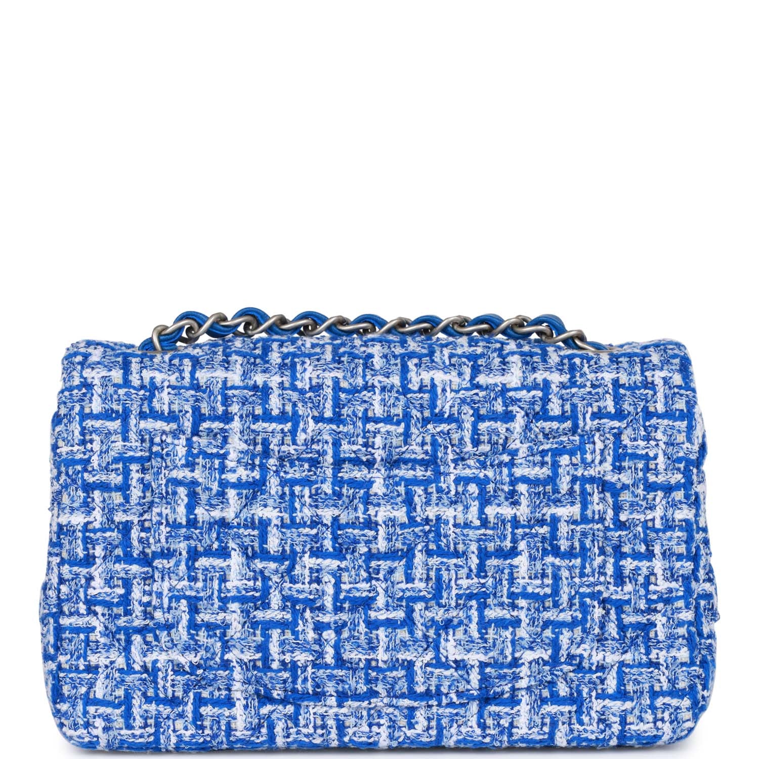 Chanel Mini Rectangular Flap Bag Blue Tweed Aged Silver Hardware